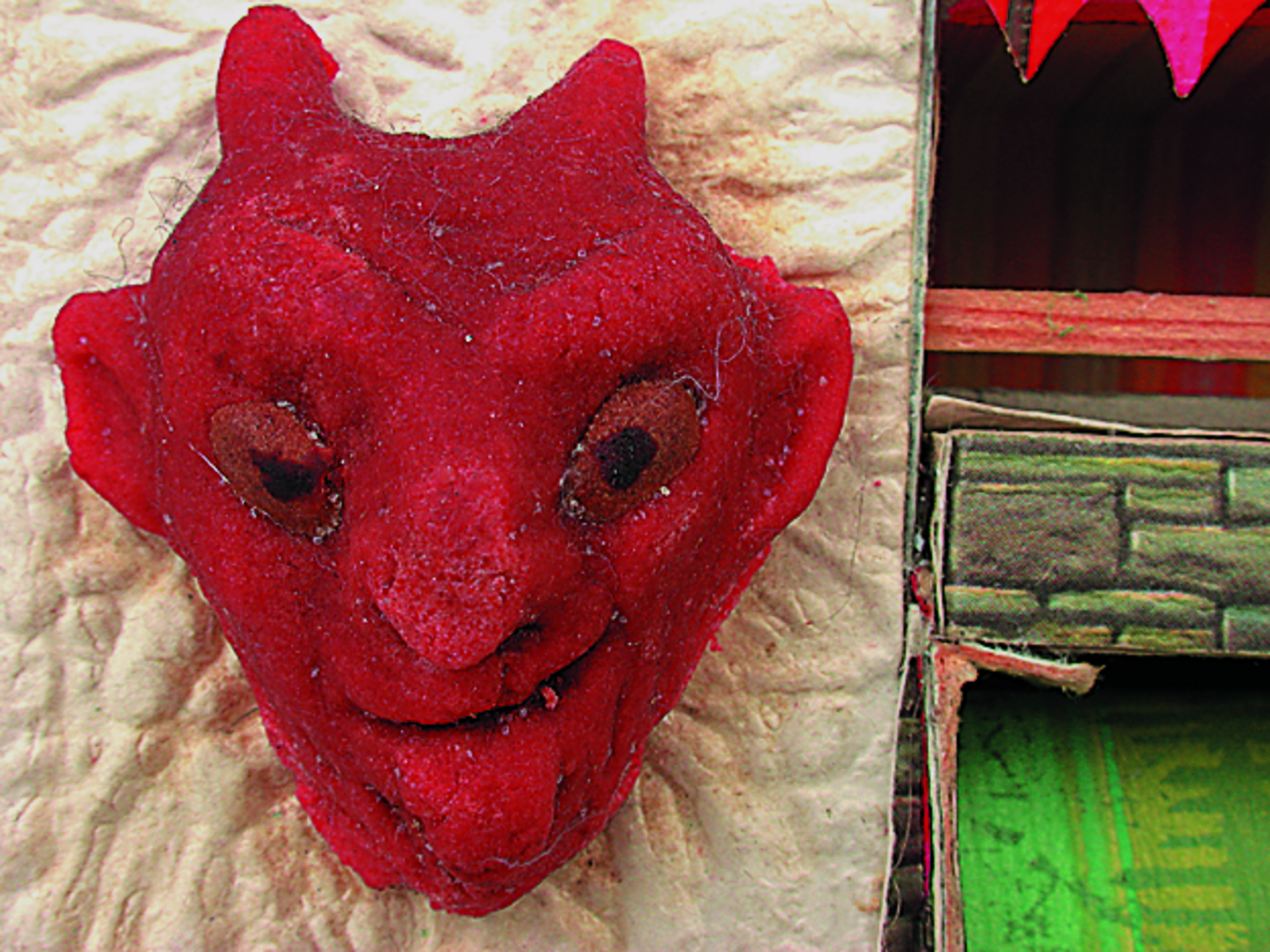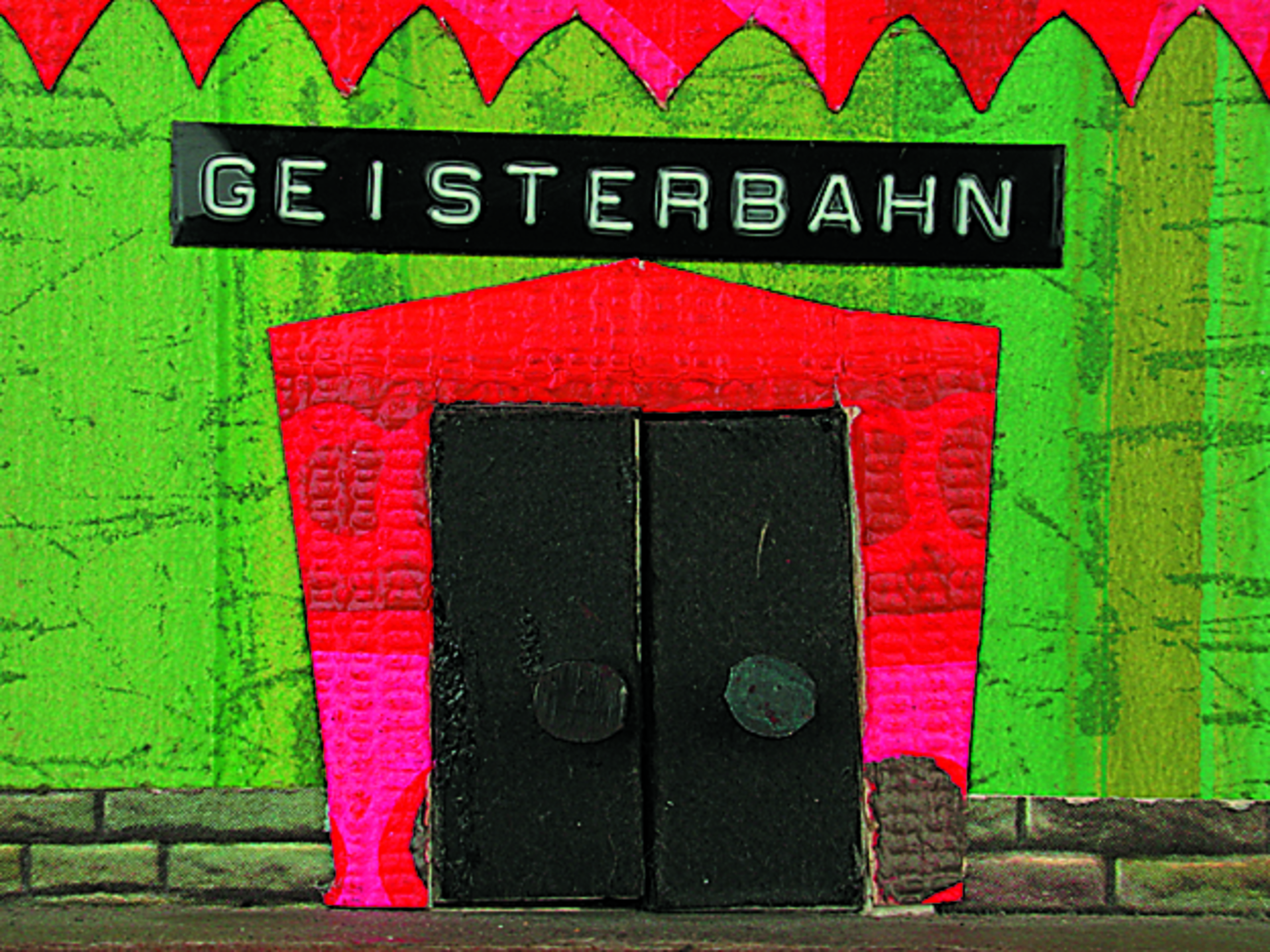 Anmerkung der Redaktion: Nicht von jedem Haus sind alle einzelnen verwendeten Materialien dokumentiert. Tatsächlich verbaute der Bastler auch Zigarettenschachteln, Spinnenpapier, Pappmaschee, Tapetenreste, Bunt- und Silberpapiere, Stoffe, Synthetikfasern, d-c-fix-Folien, Schriftproben, Zeitungsschnipsel und ausgewertete Illustrierte, Kartonagen, Holzabfälle aller Art, Uhu, Holzleim und Tapetenkleister.