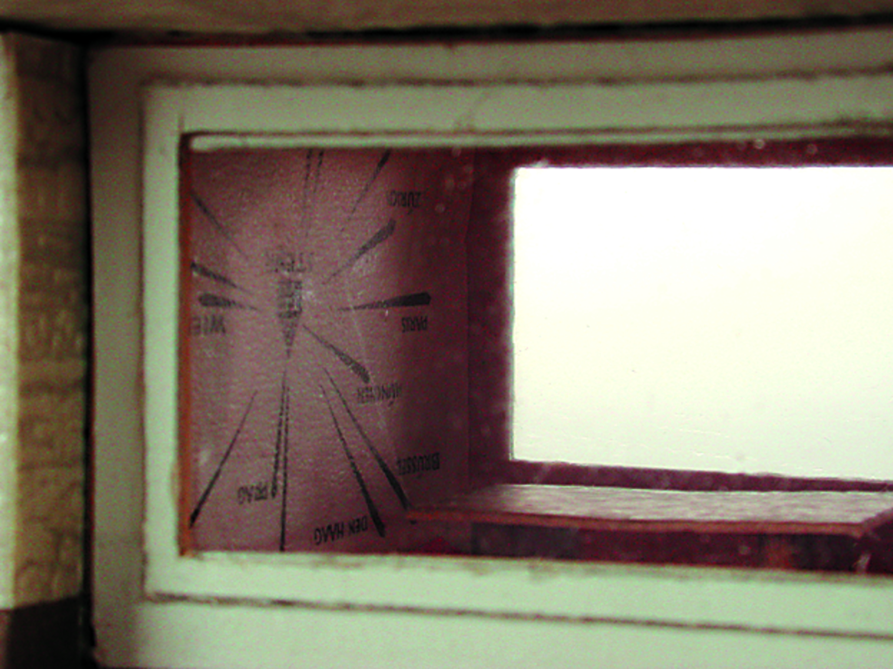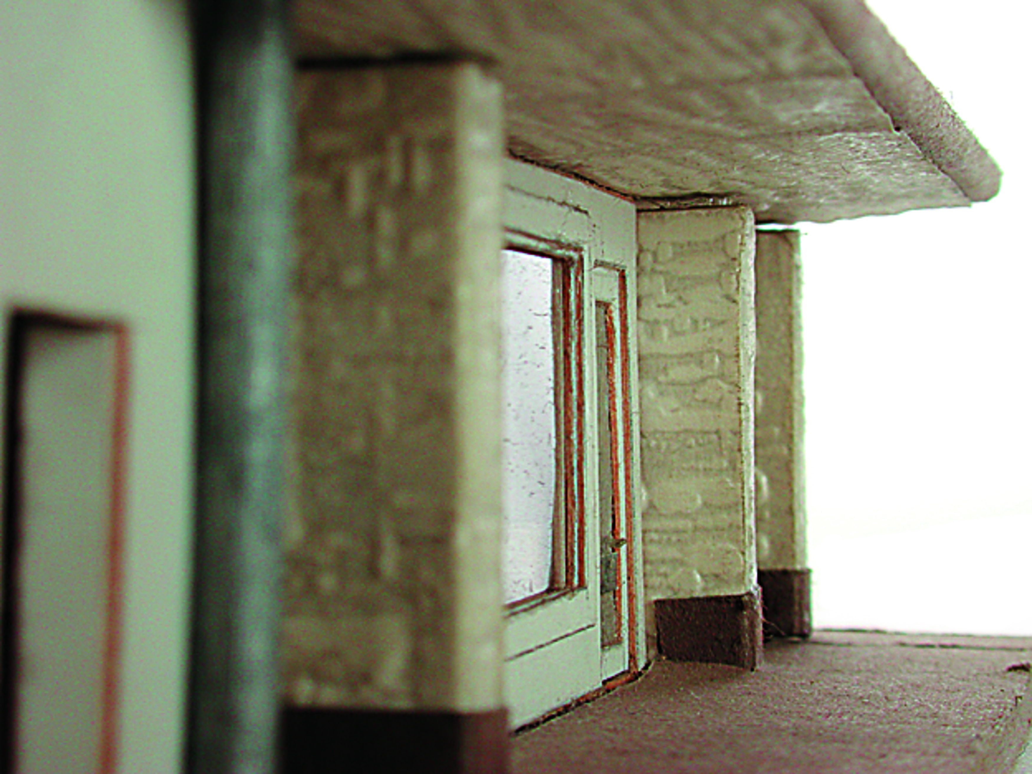 Anmerkung der Redaktion: Nicht von jedem Haus sind alle einzelnen verwendeten Materialien dokumentiert. Tatsächlich verbaute der Bastler auch Zigarettenschachteln, Spinnenpapier, Pappmaschee, Tapetenreste, Bunt- und Silberpapiere, Stoffe, Synthetikfasern, d-c-fix-Folien, Schriftproben, Zeitungsschnipsel und ausgewertete Illustrierte, Kartonagen, Holzabfälle aller Art, Uhu, Holzleim und Tapetenkleister.