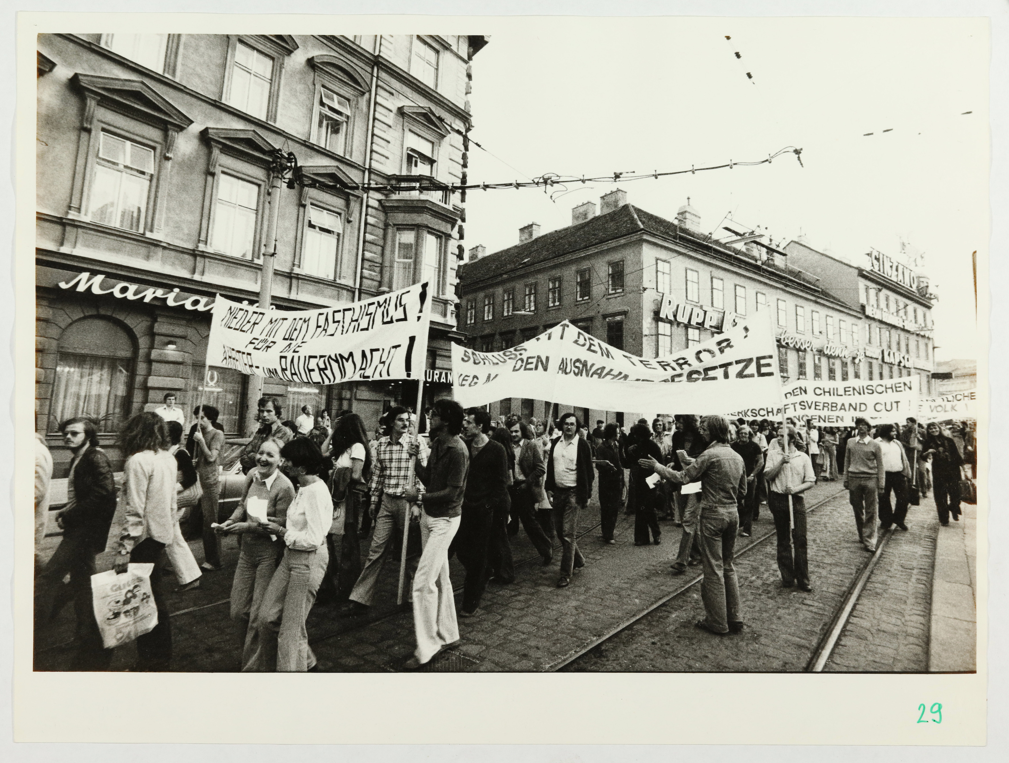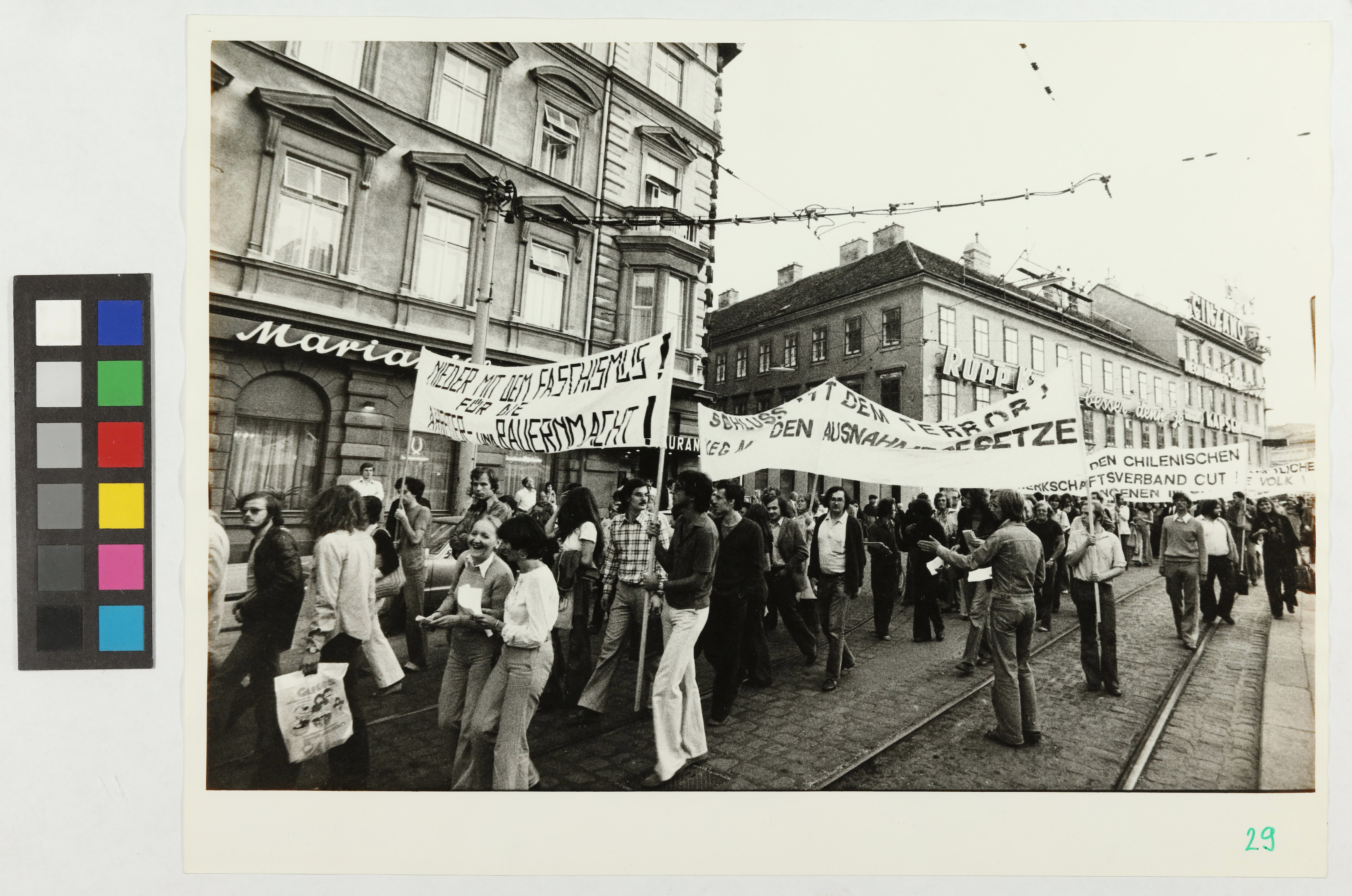 Demonstration gegen das chilenische Regime. Demonstrationszug in der Mariahilfer Straße (Ecke MIllergasse)