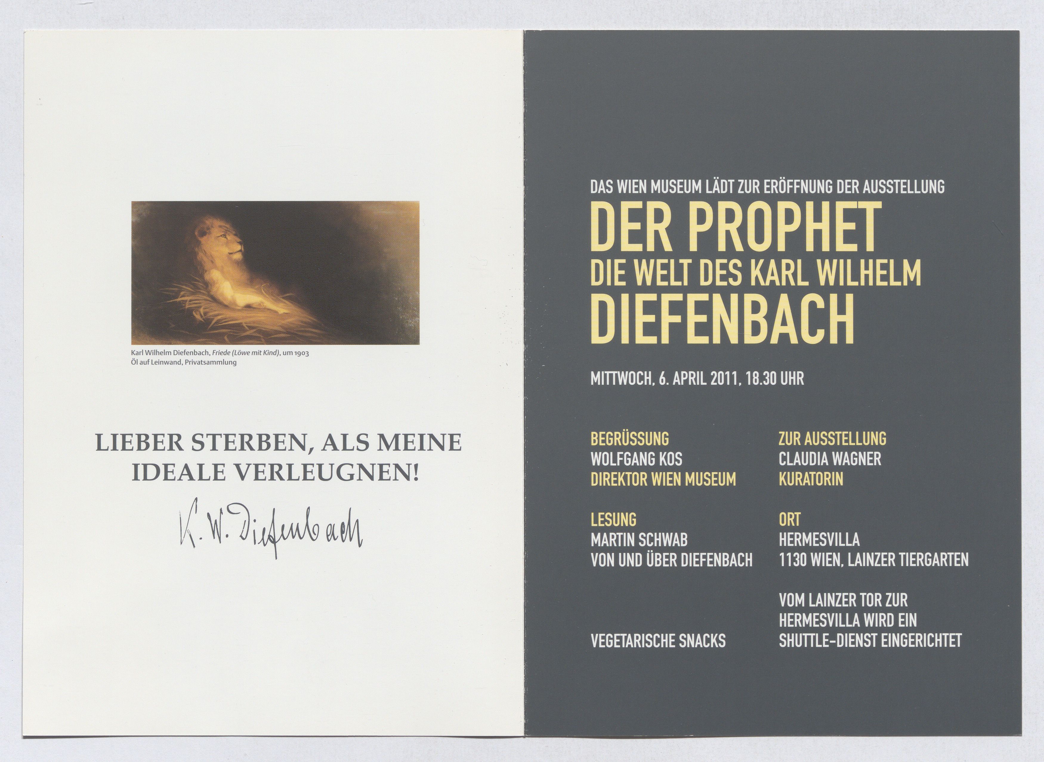 371. Sonderausstellung des Wien Museums: "Der Prophet. Die Welt des Karl Wilhelm Diefenbach", Einladung zur Eröffnung