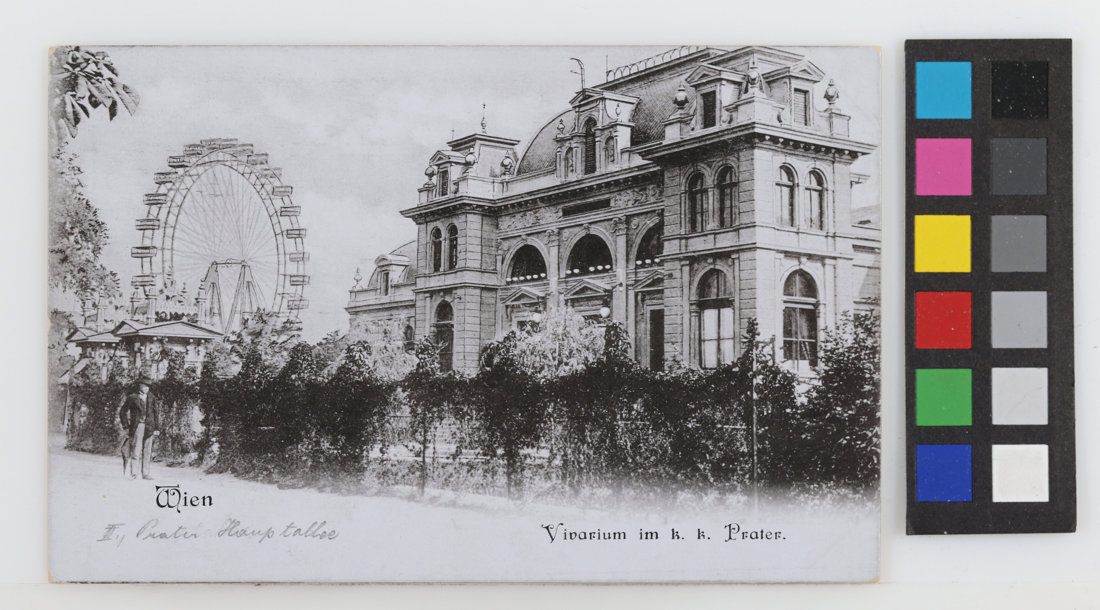 2., Prater - Hauptallee - Vivarium, im Hintergrund Riesenrad, Ansichtskarte
