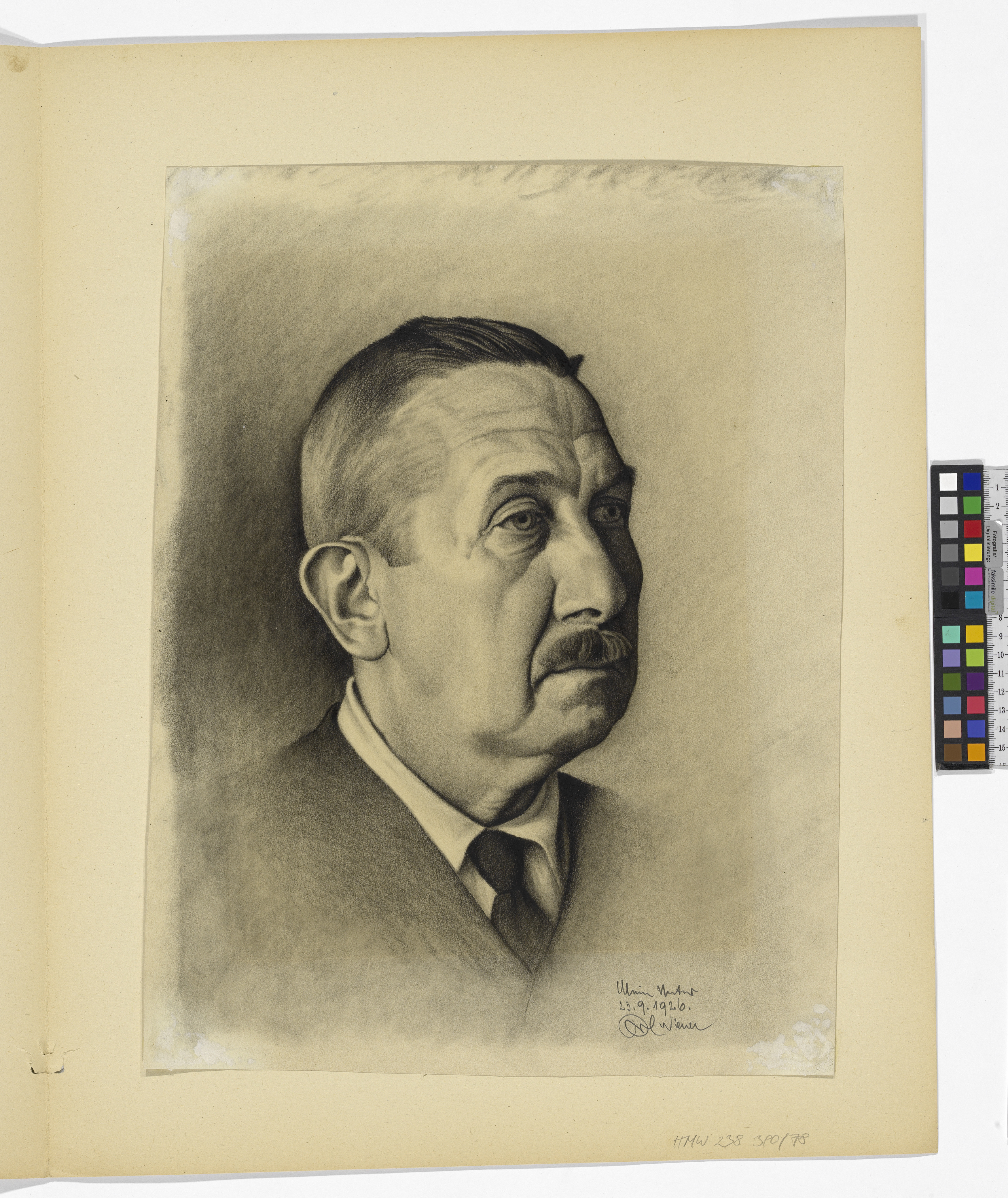 - re. unten: “Mein Vater /23.9.1926/ Karl Wiener” (Bleistift); am Passepartout rechts: Karl Wiener (Bleistift)