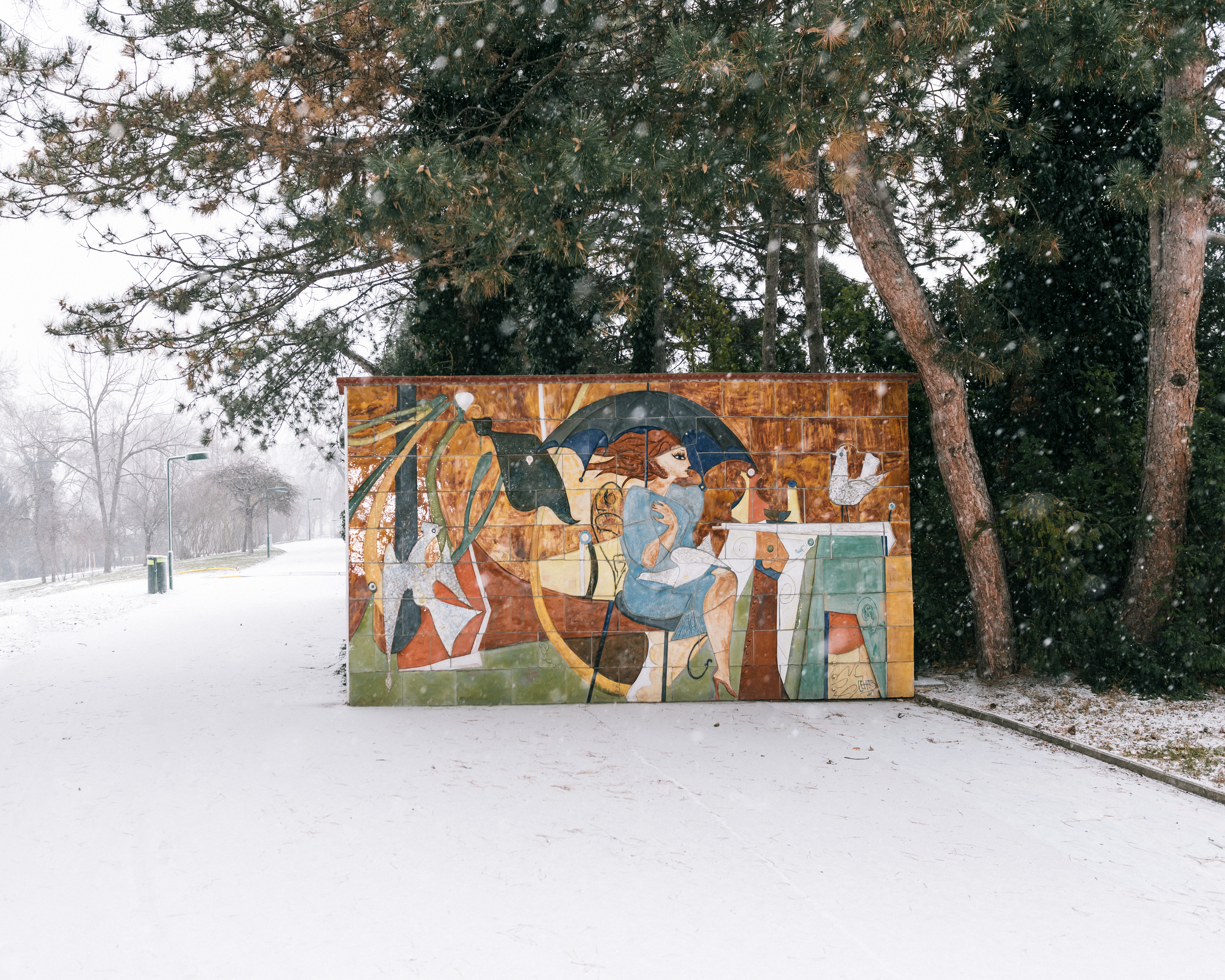 Die Serie “Donaupark 2013/14” entstand zwischen August 2013 und Februar 2014 als Auftragsarbeit für die Ausstellung “WIG 64. Die grüne Nachkriegsmoderne” (Wien Museum Karlsplatz, 2. Stock, 9. April bis 31. August 2014). Ziel der Arbeit war ein umfassendes künstlerisches Porträt des Donauparks, das sowohl die landschaftsarchitektonischen und gestalterischen Eigenheiten dieses auf die WIG 64 (Wiener Internationale Gartenschau 1964) zurückgehenden Areals herausarbeitet als auch die Vielfalt der Nutzer*innengruppen, die sich den Park für ihre Zwecke aneignen, dokumentiert.