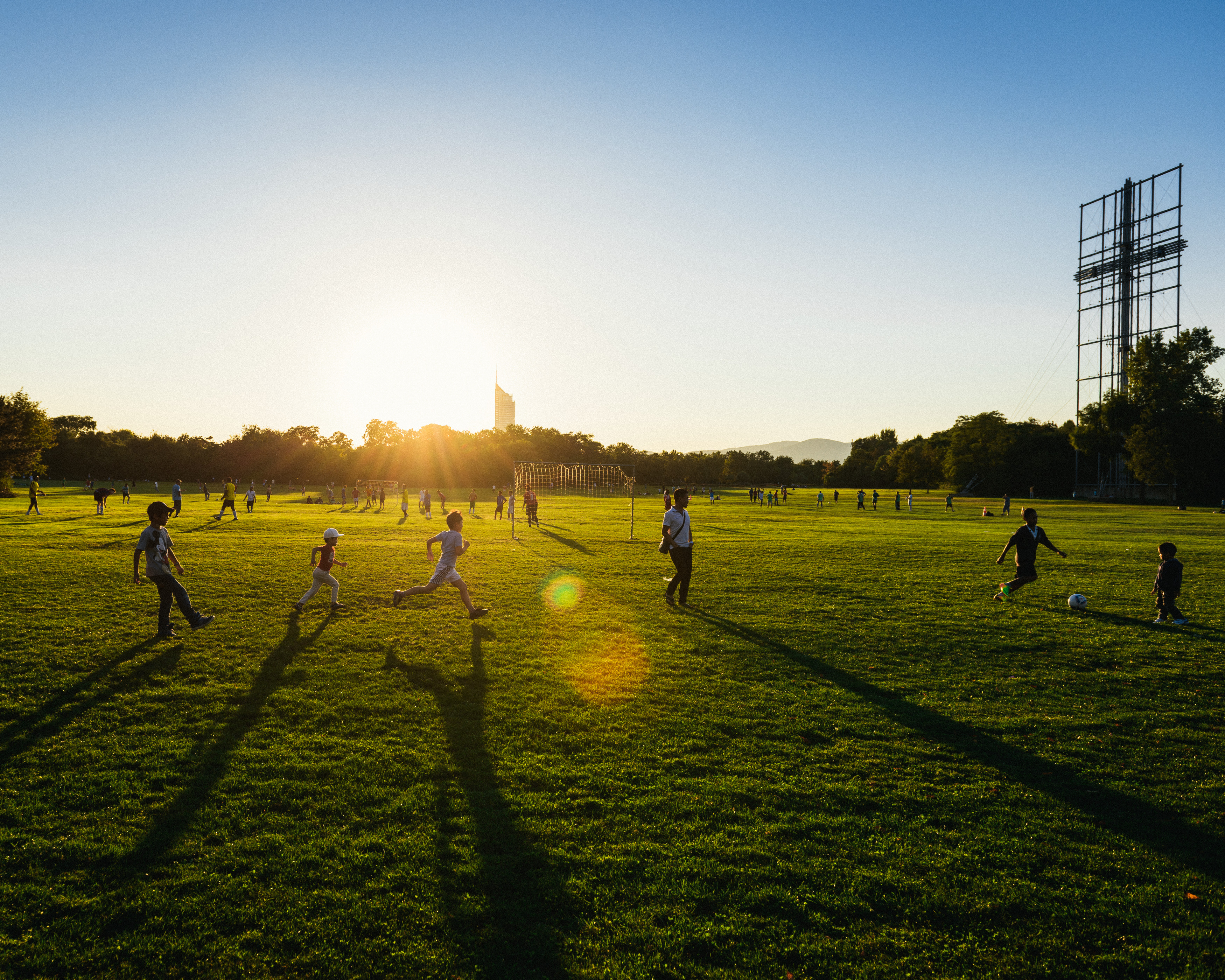 „Donaupark 2013/14“: Fußballspieler auf der großen Wiese/„Papstwiese“