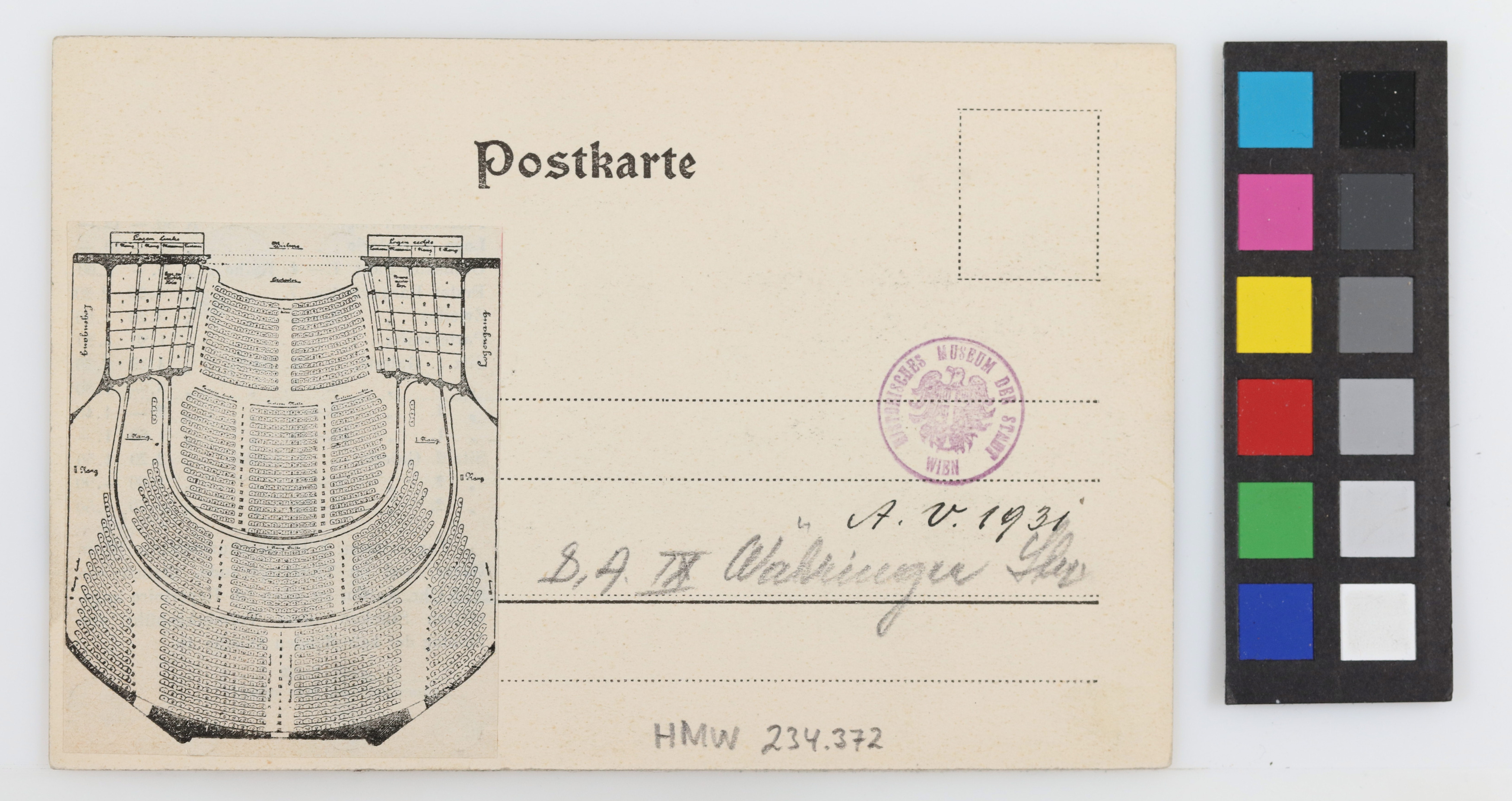 9., Währinger Straße 78 - Volksoper, mit Plan des Innenraums auf der Rückseite, Ansichtskarte