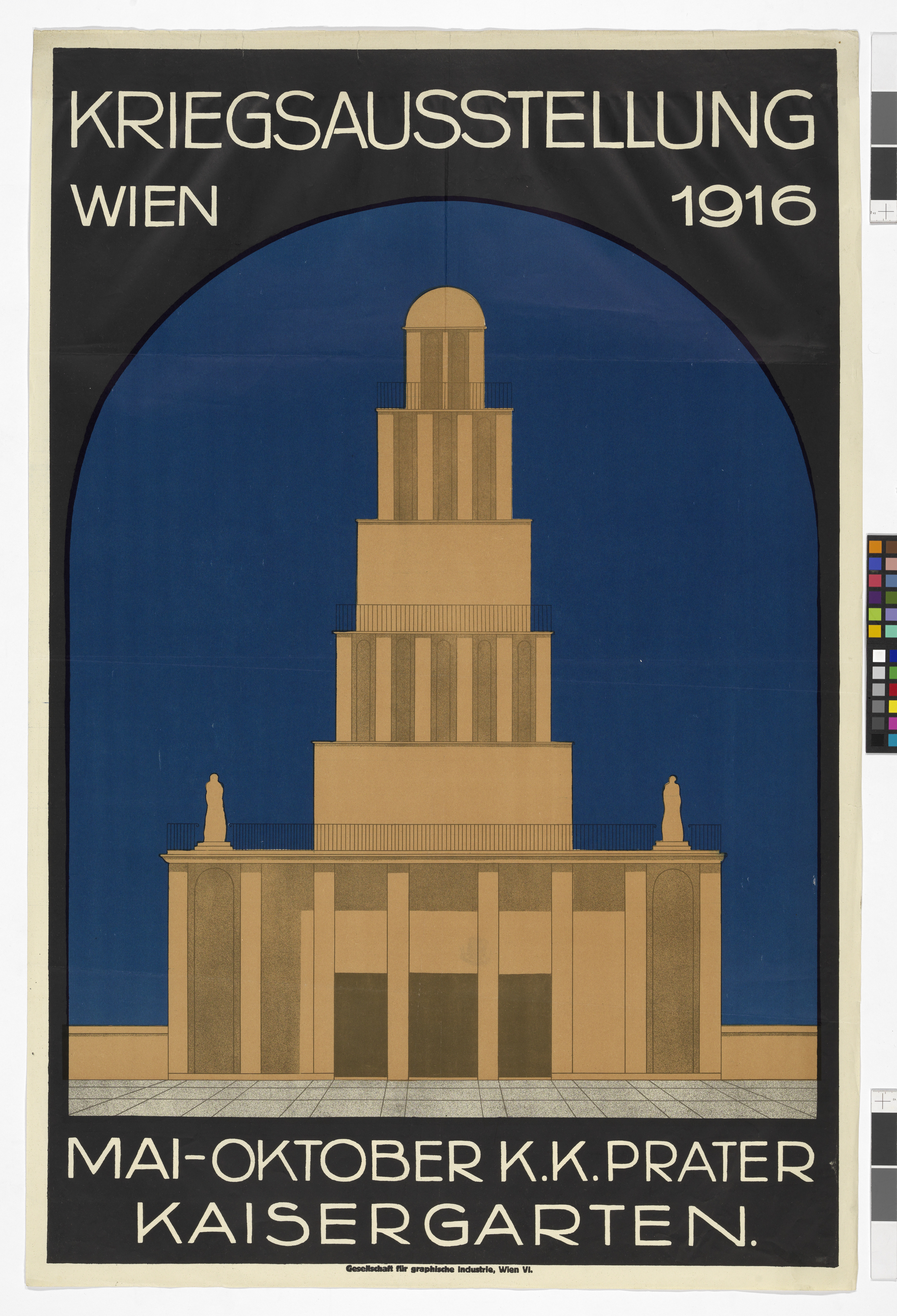 Plakat der "Kriegsausstellung Wien 1916 Mai-Oktober K.K. Prater Kaisergarten"