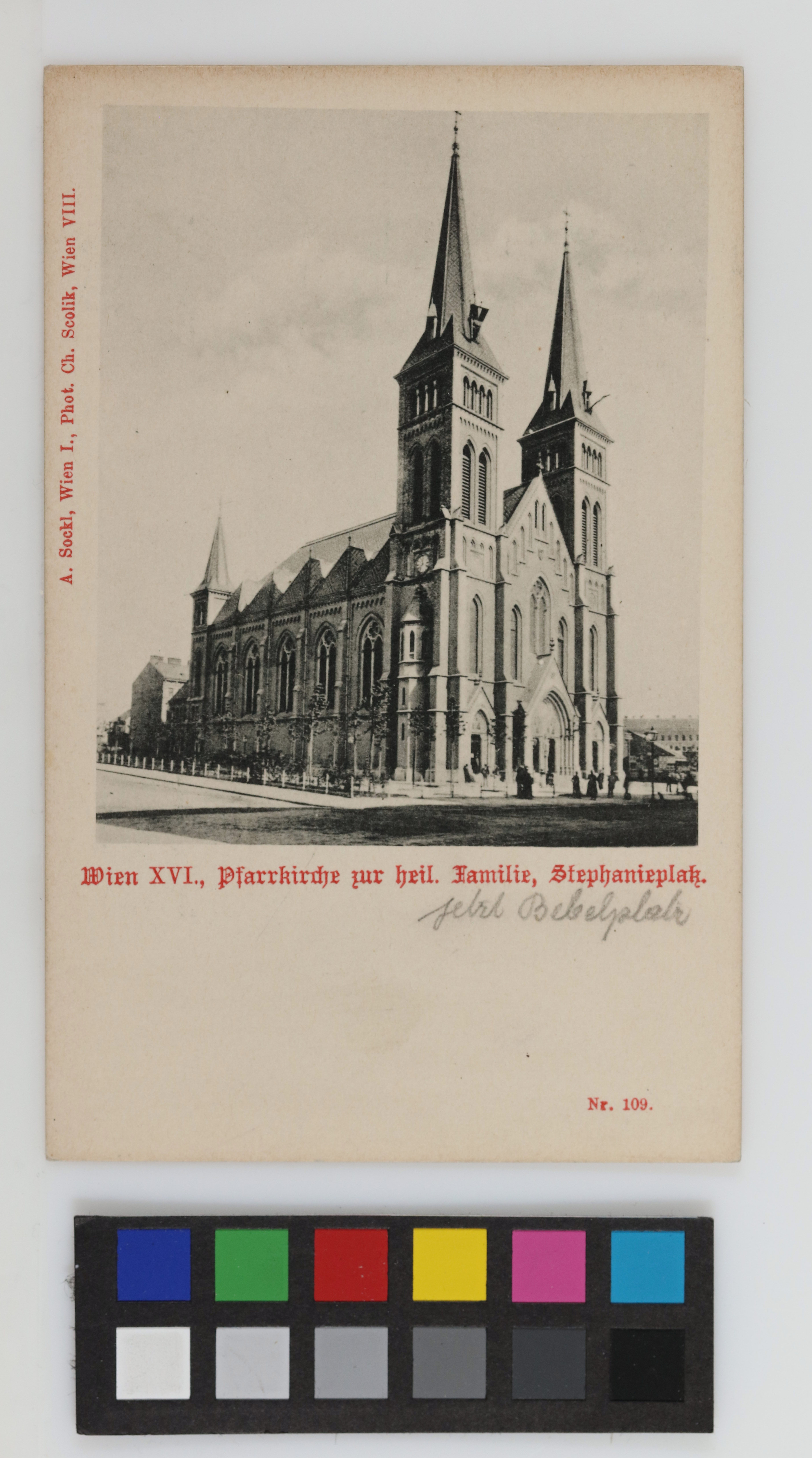 16., Kernstockplatz (heut. Familienplatz, vormals Stephanieplatz) - Pfarrkirche "Zur heiligen Familie", Ansichtskarte
