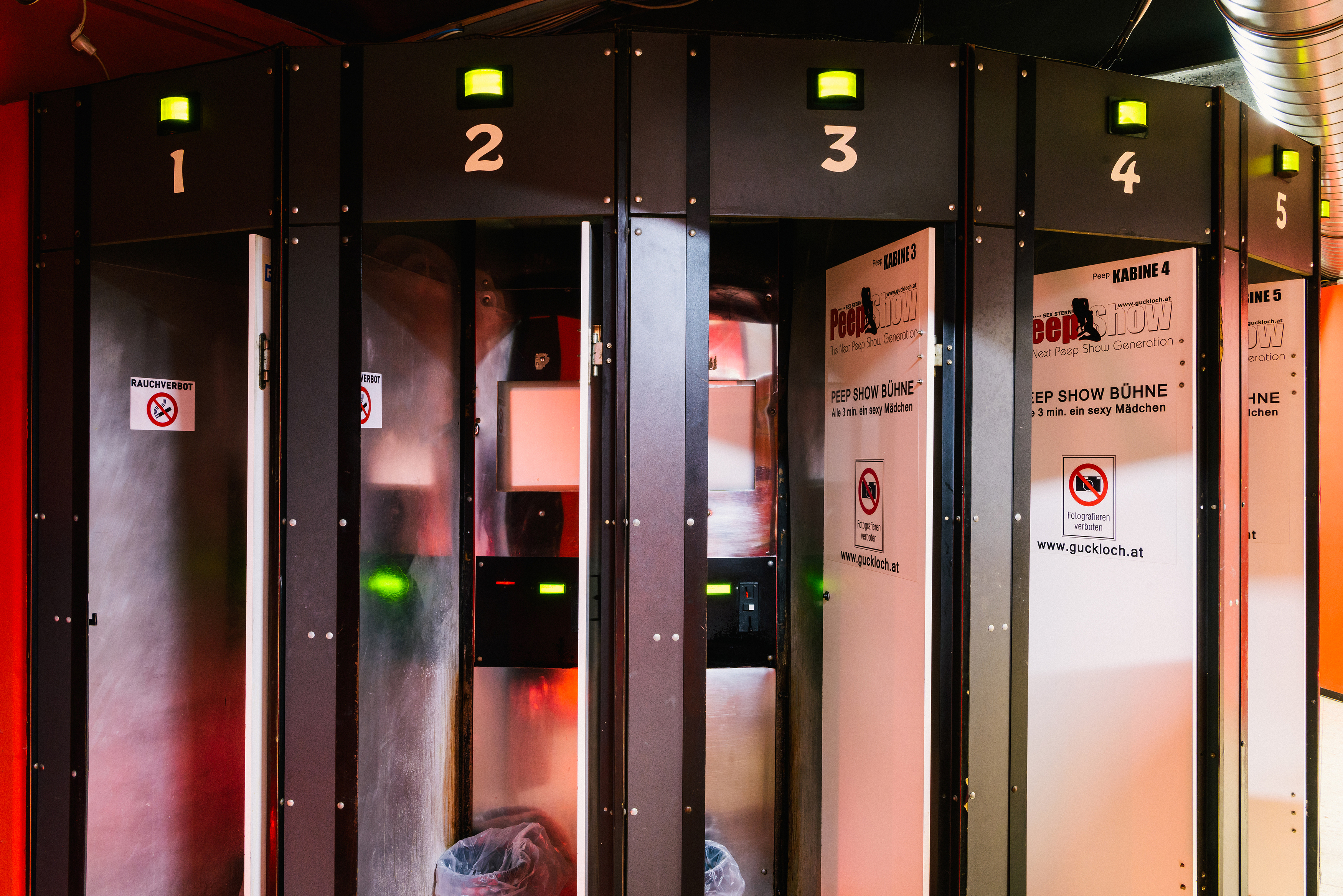 Fotoserie "Sex und Raum" (Wiener Sexorte): Peepshow "Guckloch", 7., Burggasse 112 - Kabinen