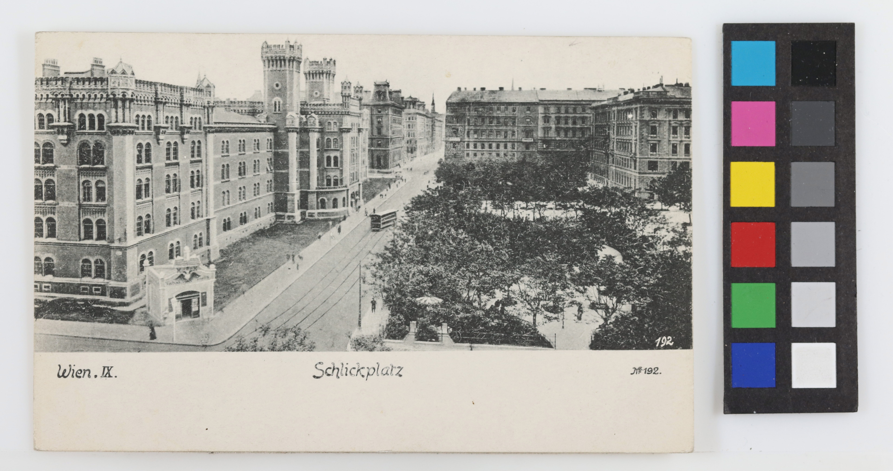 9., Schlickplatz - mit Roßauer Kaserne, Blick gegen Schottenring, Ansichtskarte