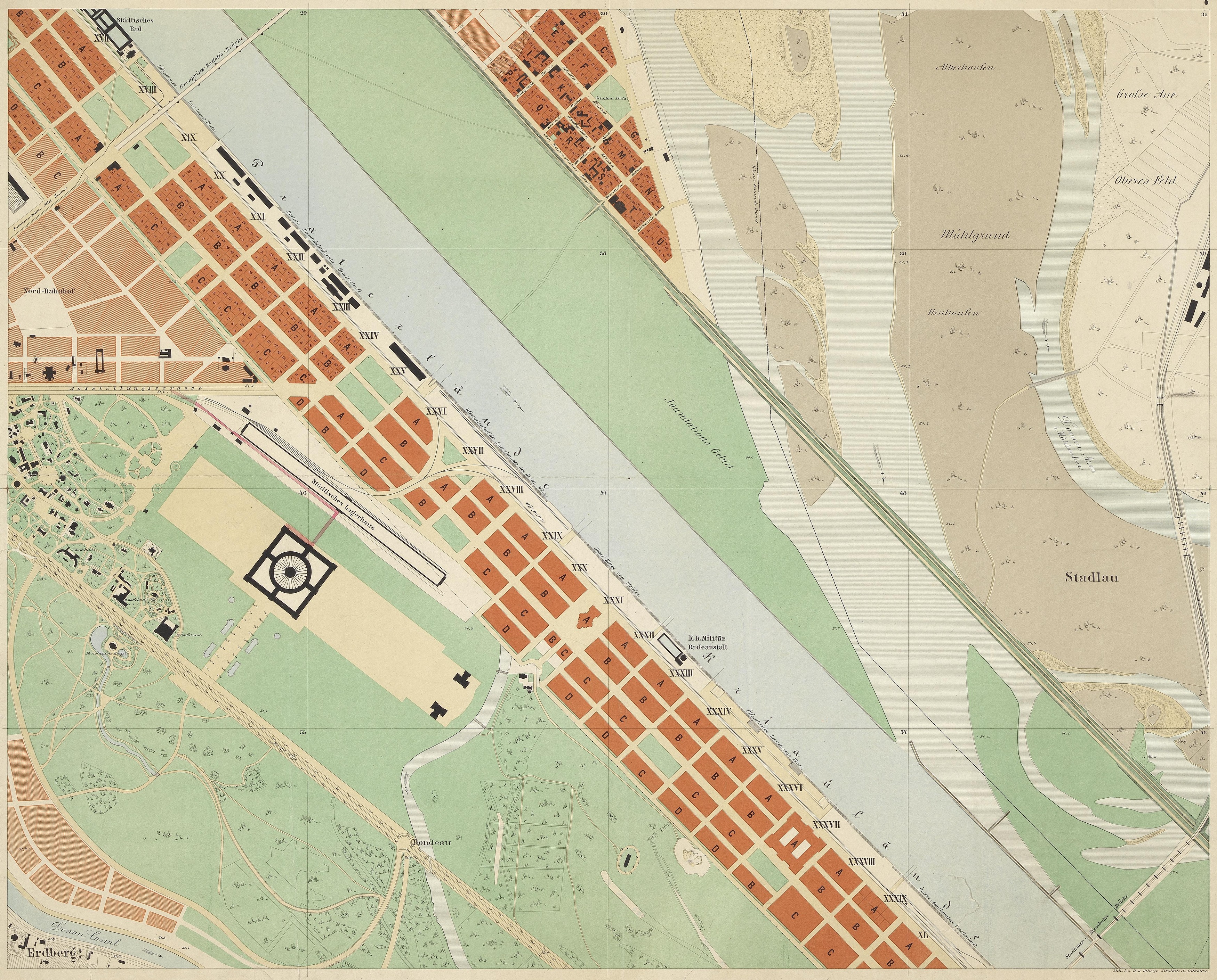 2., Bebauungsplan der Donauregulierungsgründe (Donaustadtgründe) beim Prater zwischen Reichsbrücke und Stadlauerbrücke