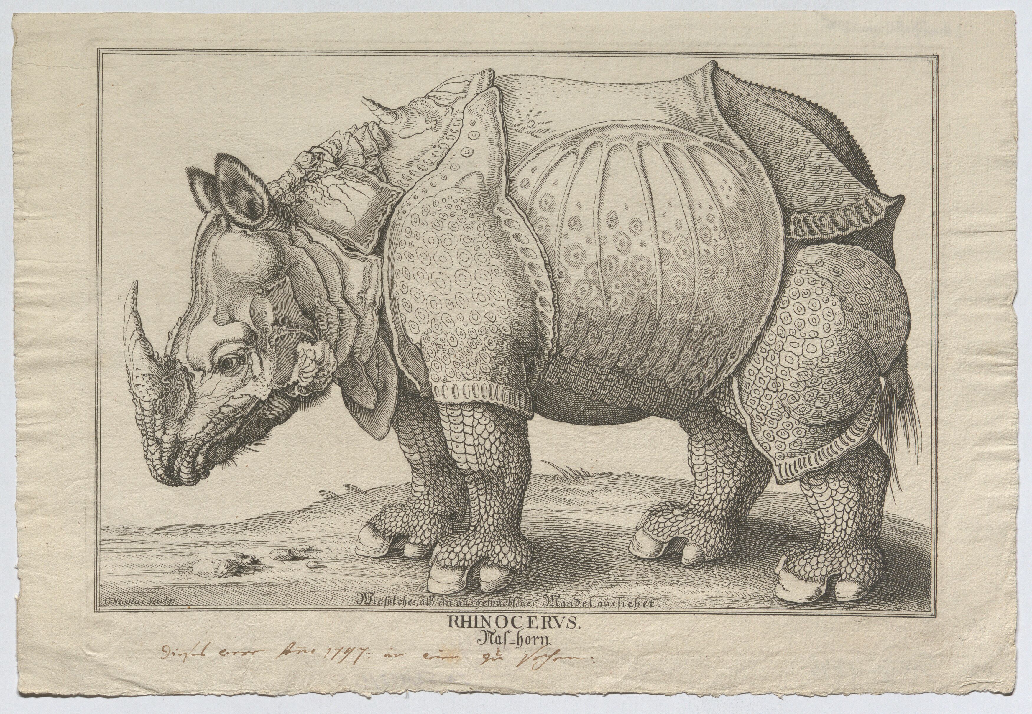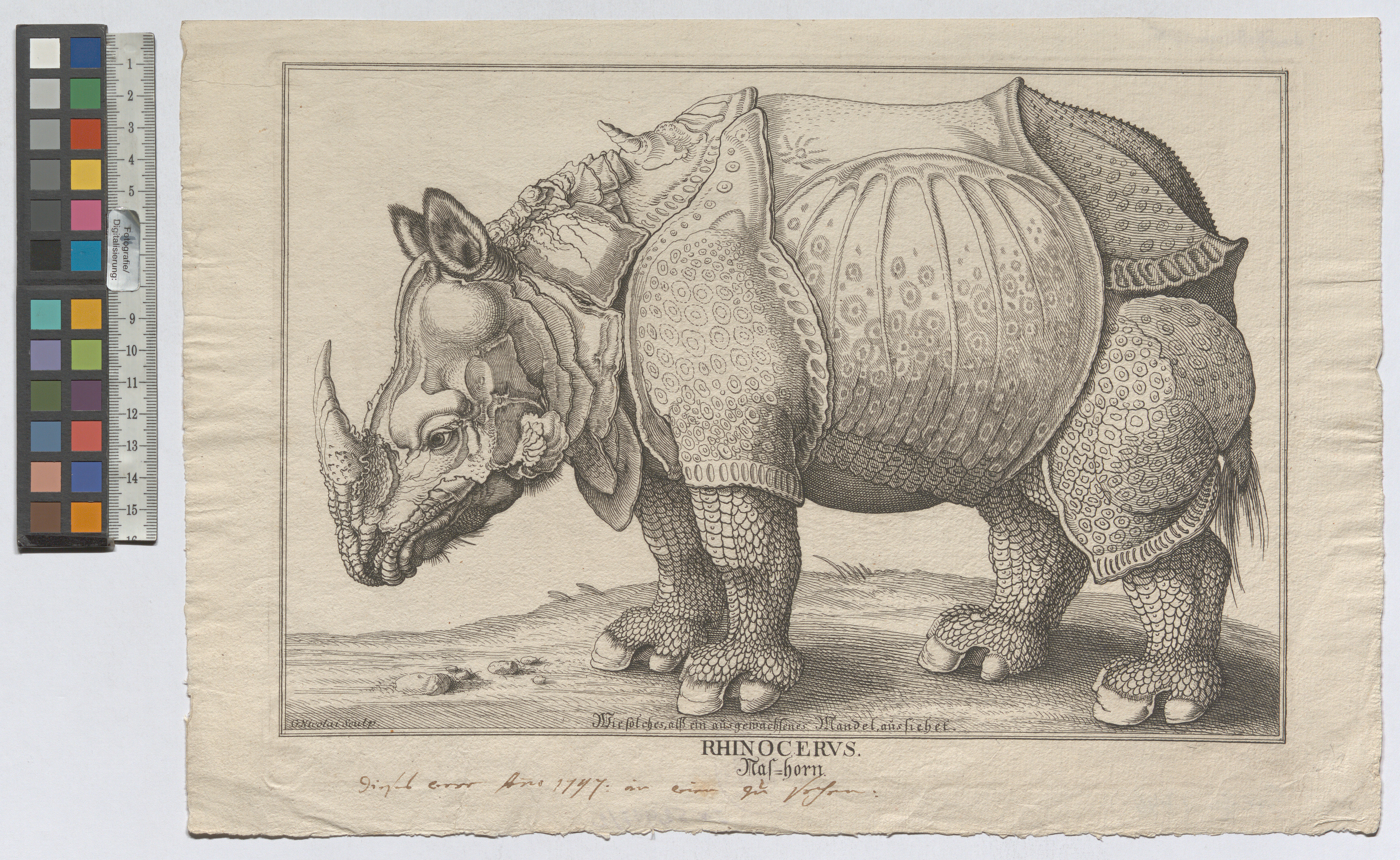 "RHINOCERVS. / Nas=horn" (ausgestellt in Wien 1746)