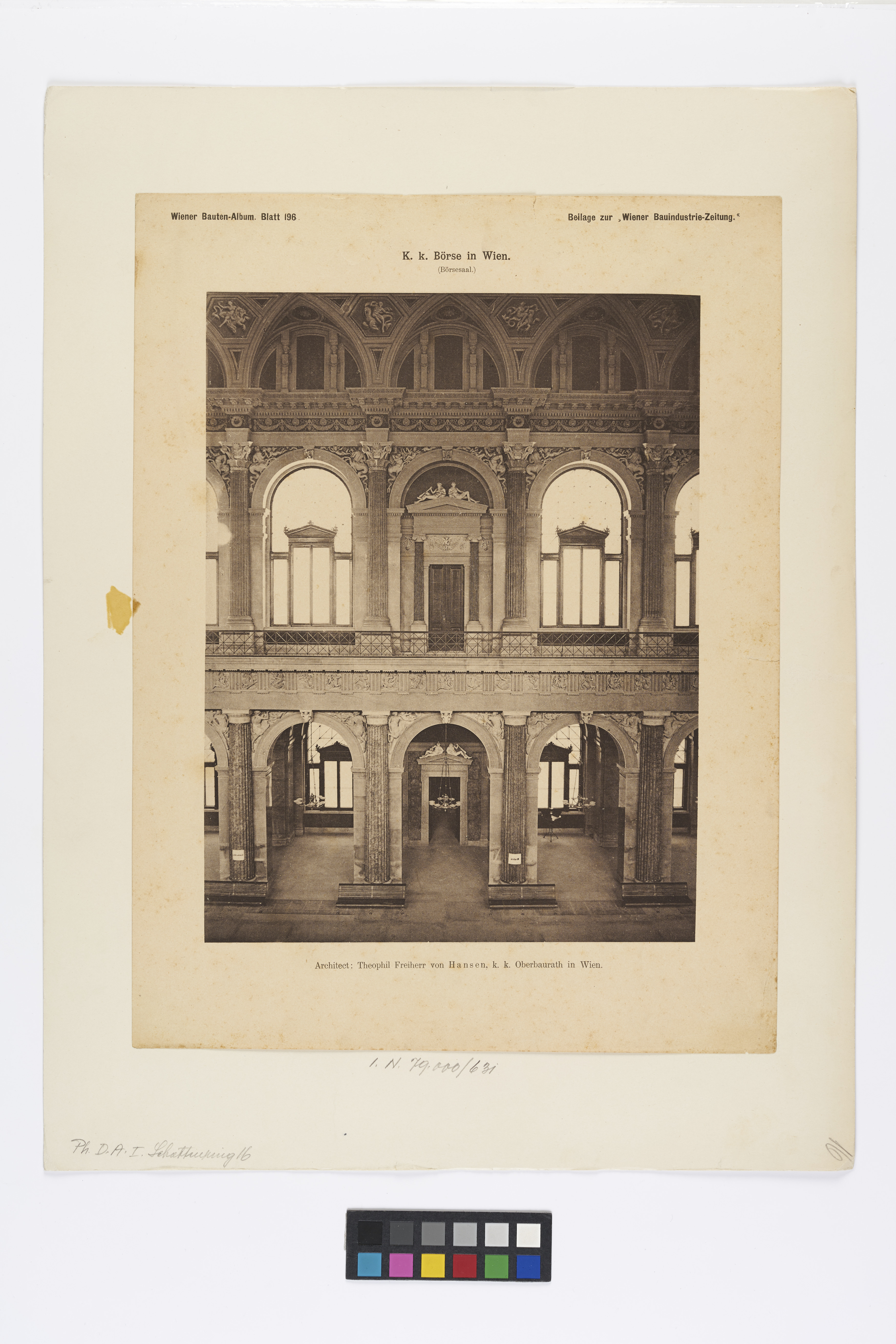 1., Schottenring 16 - Börse - Innenansicht - Börsesaal (Wiener Bauten-Album, Blatt Nr. 196, Beilage zur "Wiener Bauindustrie-Zeitung")