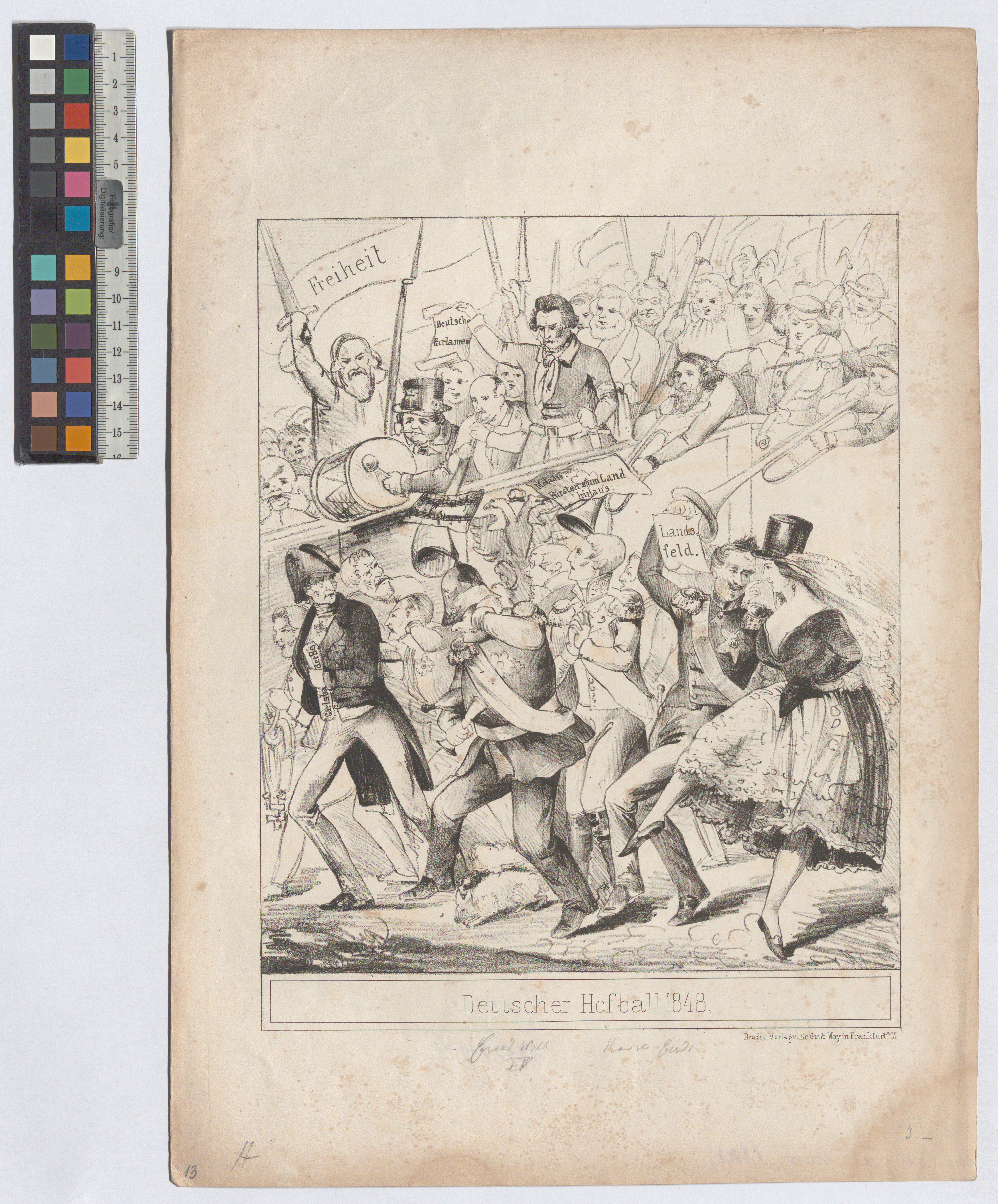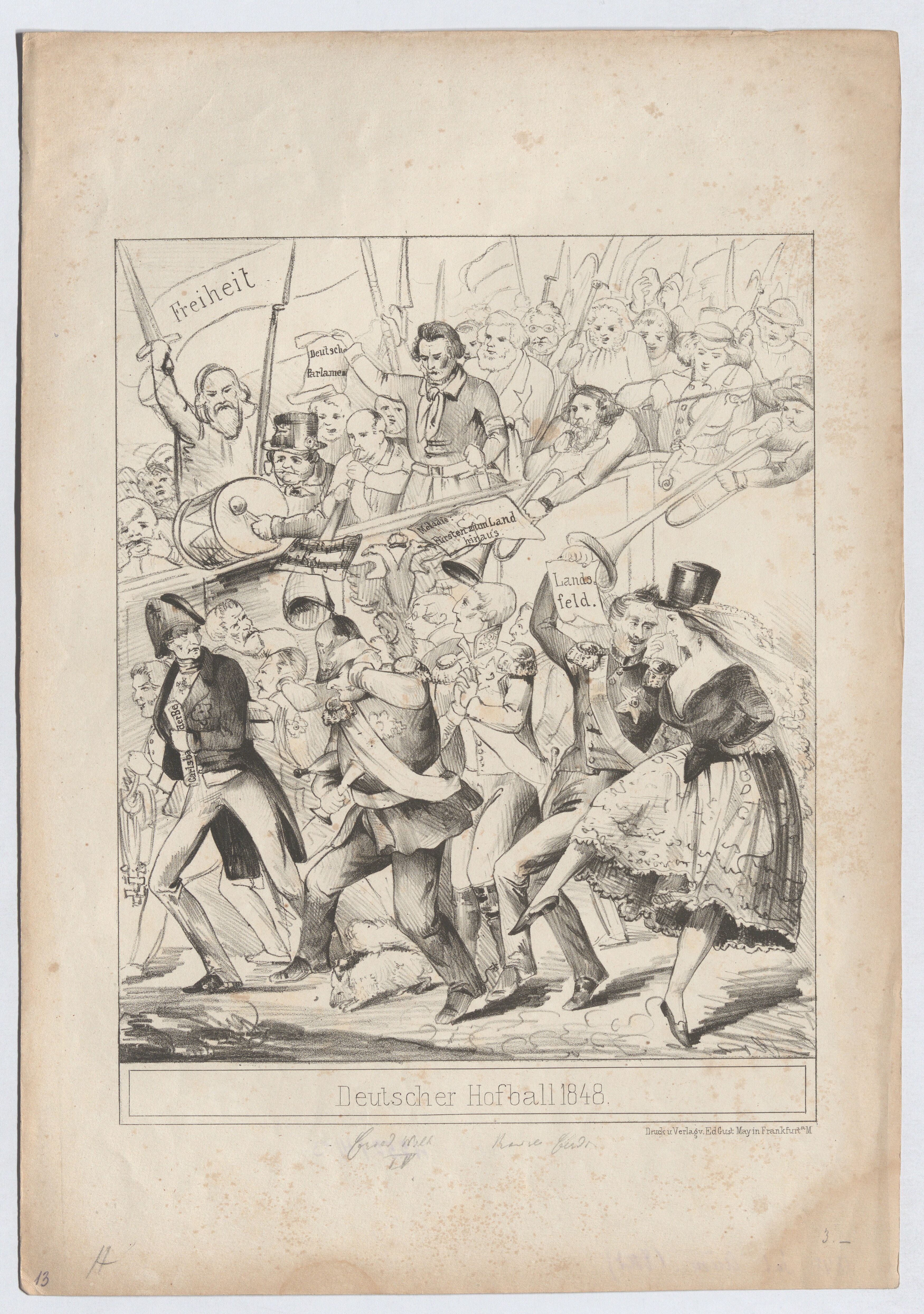 "Deutscher Hofball 1848." (Karikatur zur Revolution 1848: Metternich, König Friedrich Wilhelm IV., Kaiser Ferdinand und König Ludwig I. von Bayern mit Lola Montez)