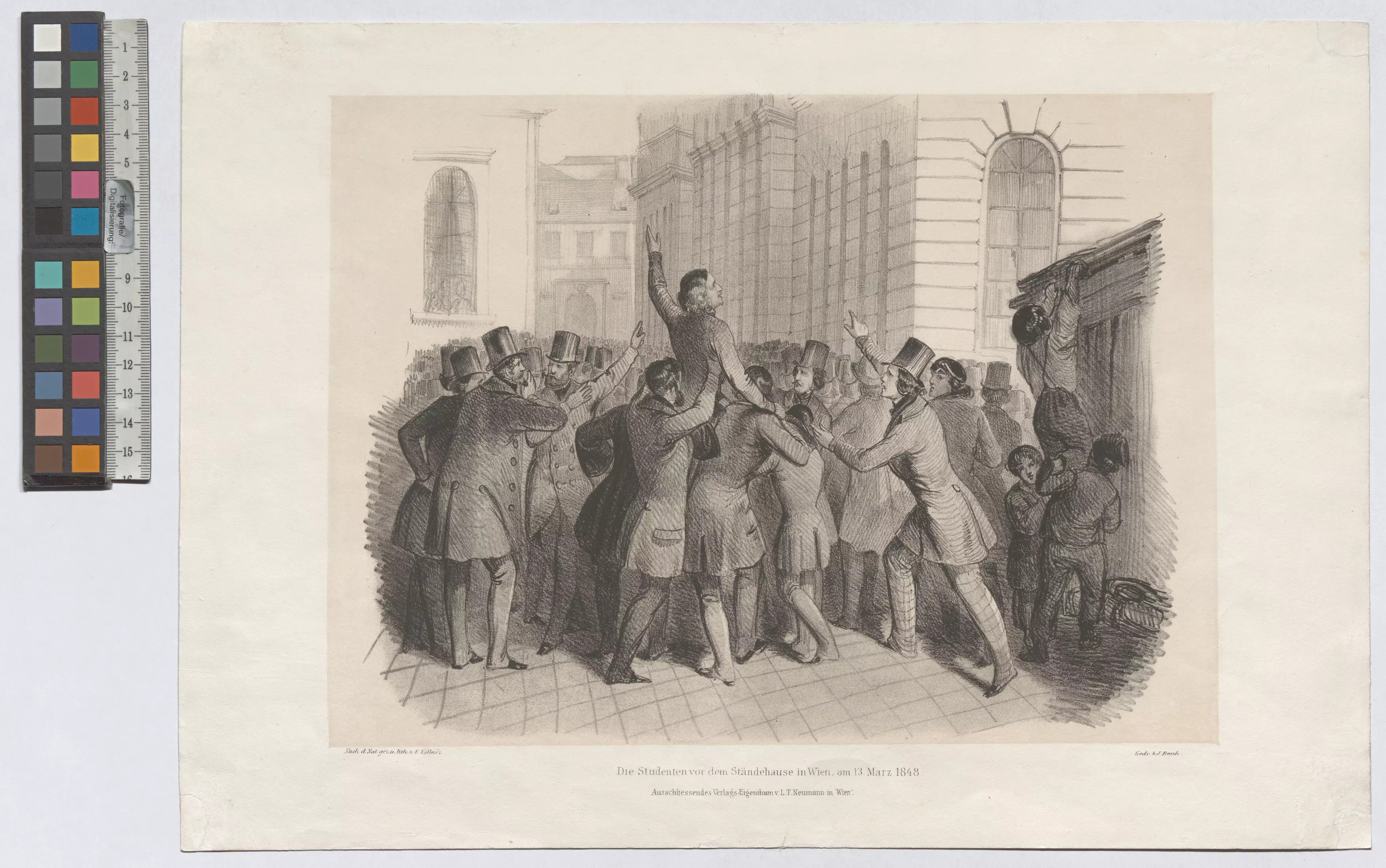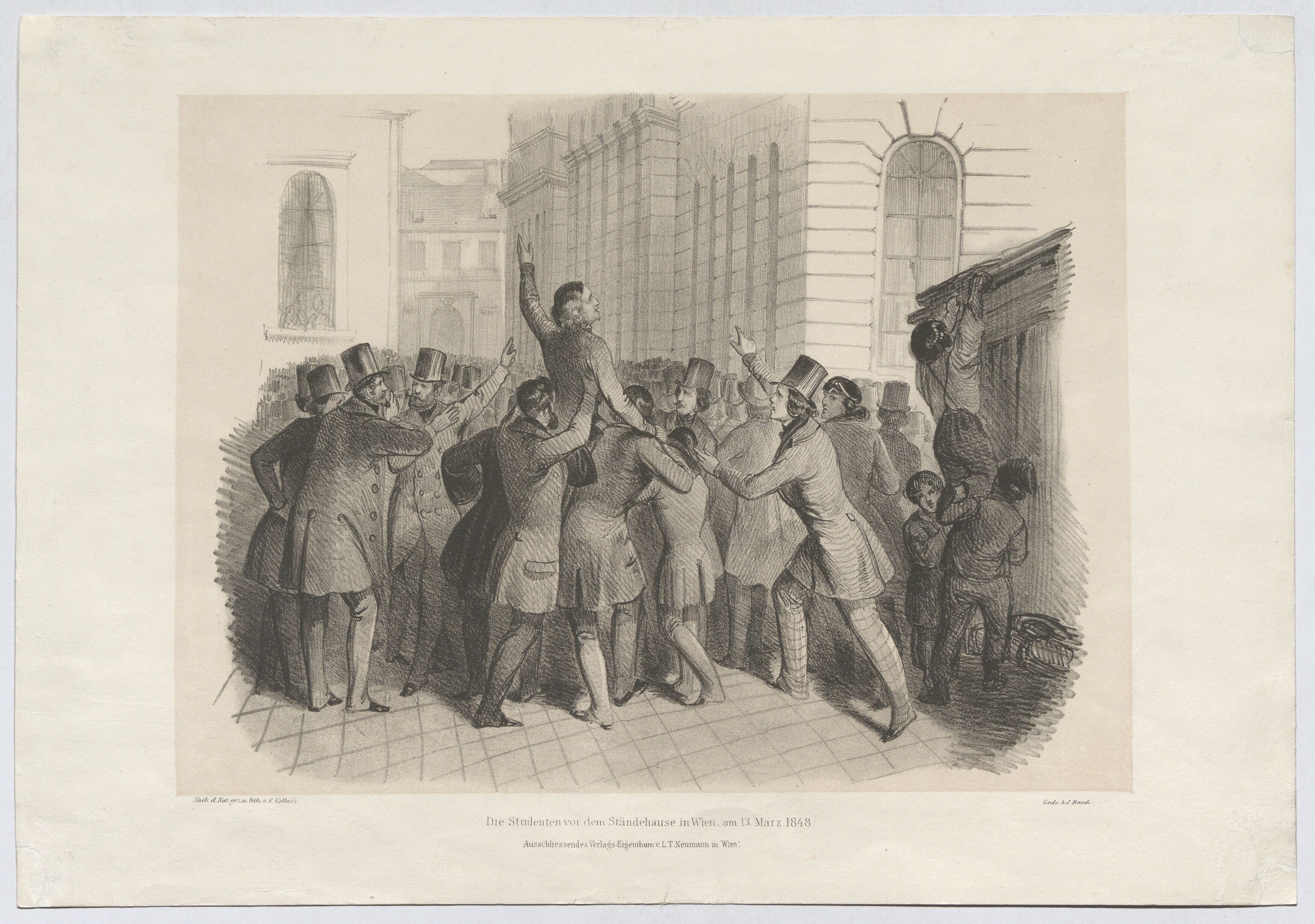 "Die Studenten vor dem Ständehause in Wien, am 13. März 1848."