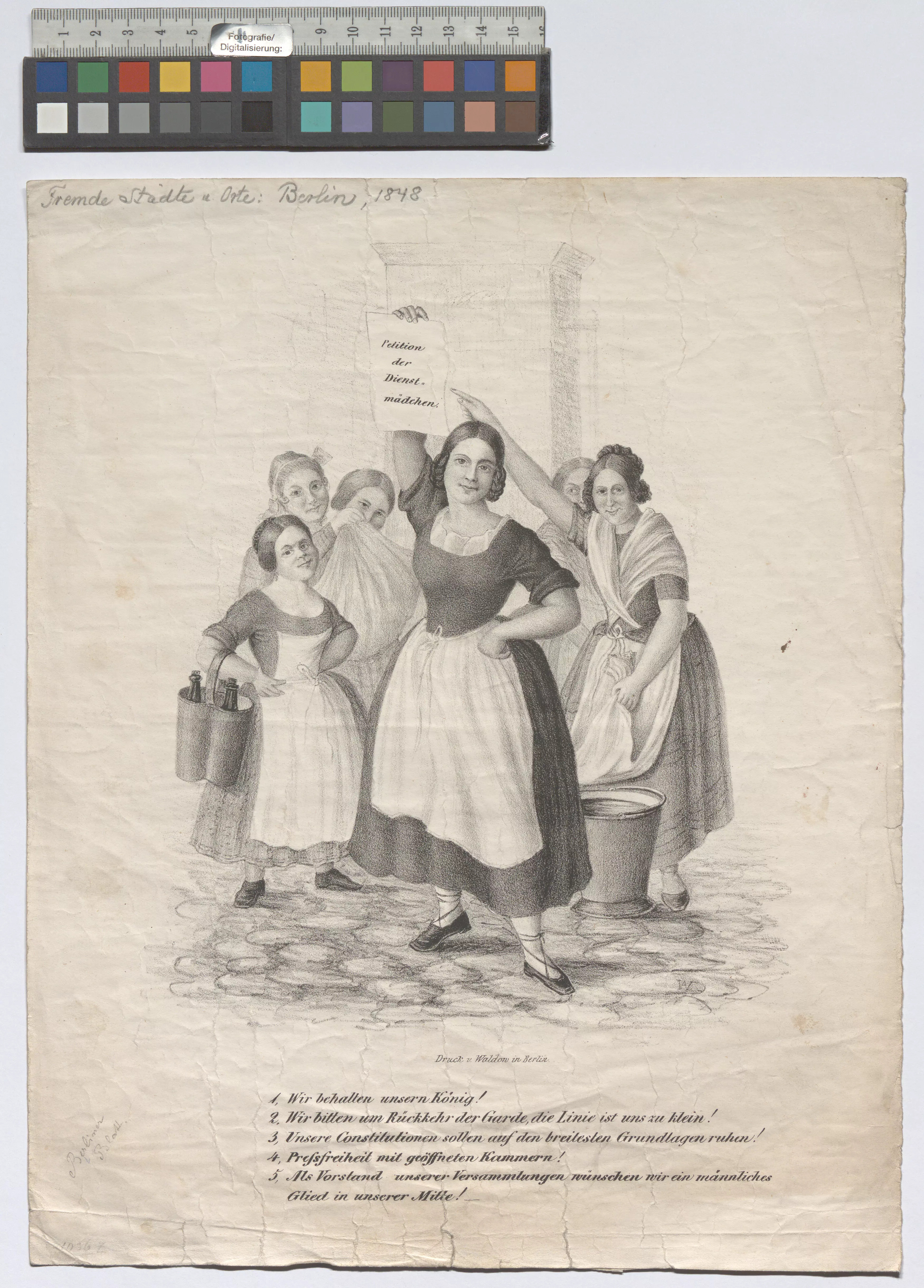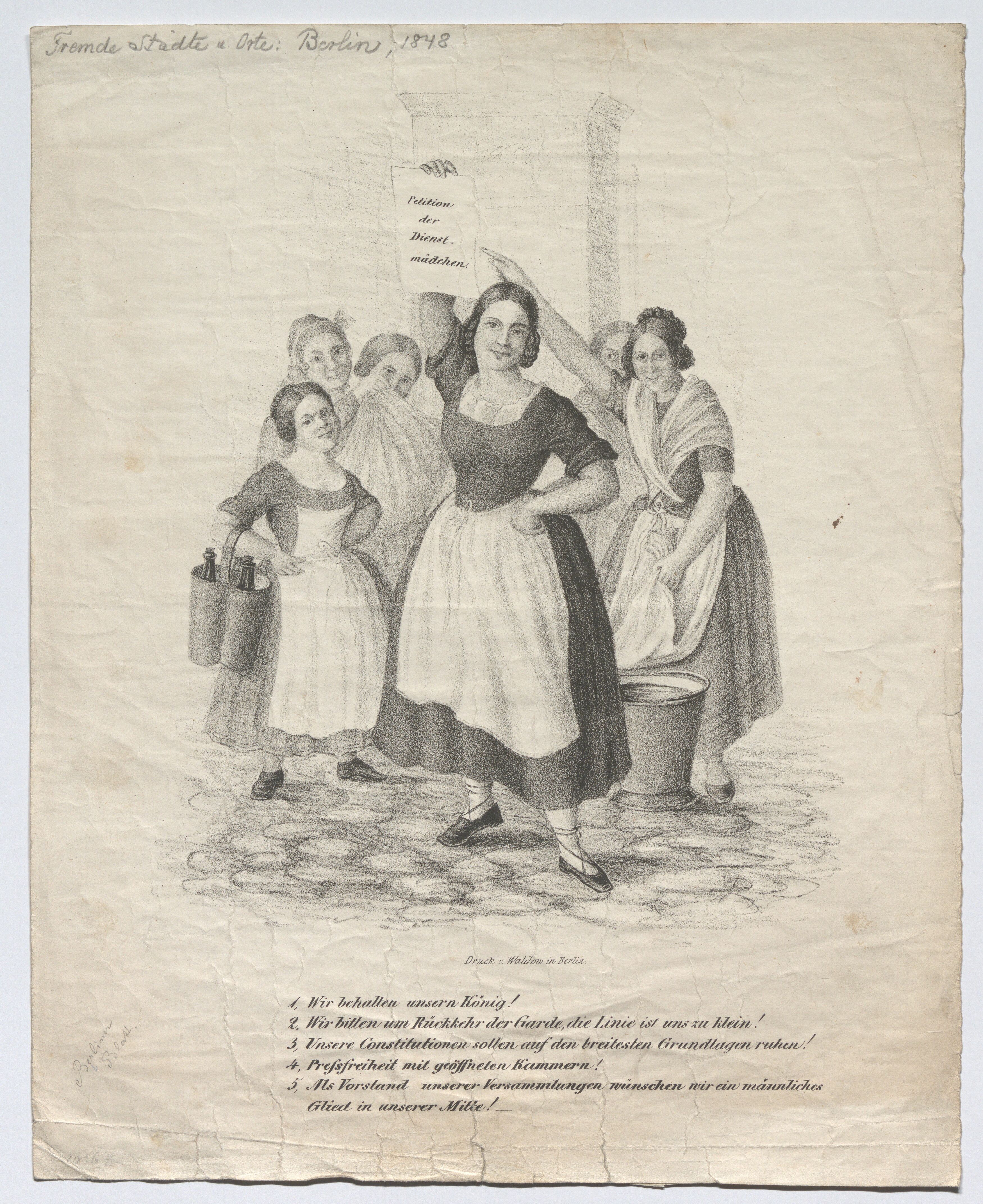 "Petition der Dienstmädchen." (Karikatur mit obszönem Text)