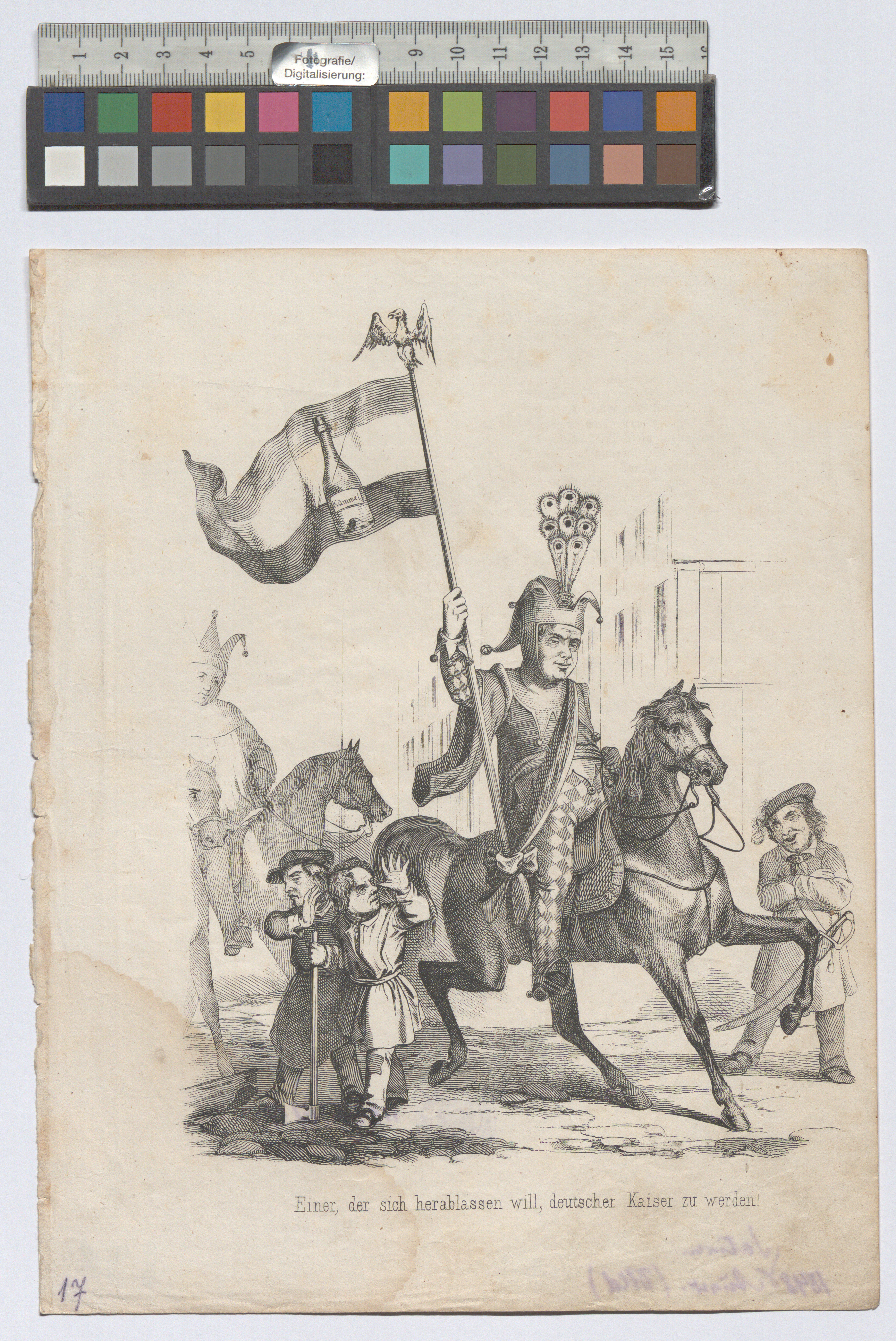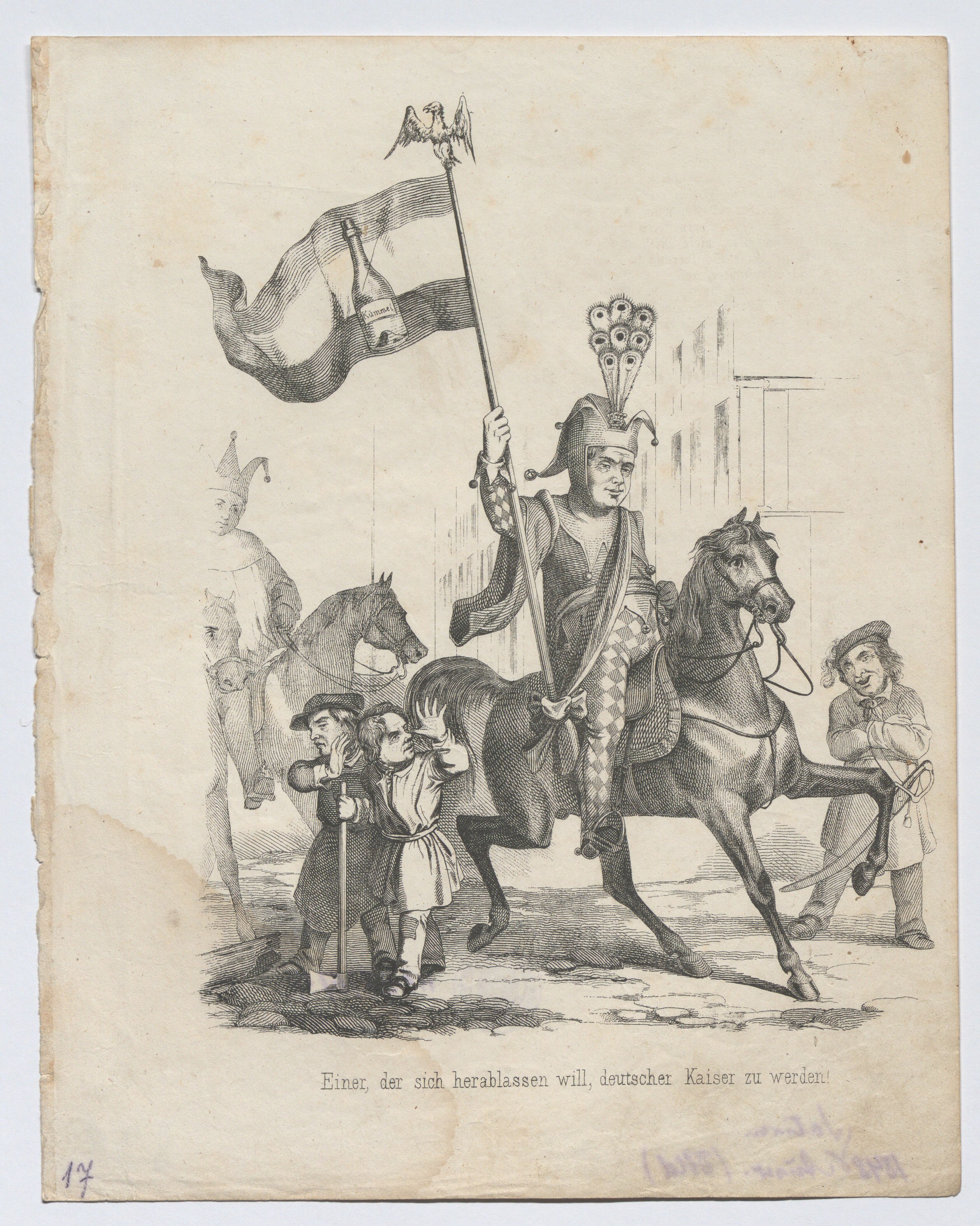 "Einer, der sich herablassen will, deutscher Kaiser zu werden!" (Karikatur auf König Friedrich Wilhelm IV. und die Diskussion um die Person des künftigen deutschen Kaisers)