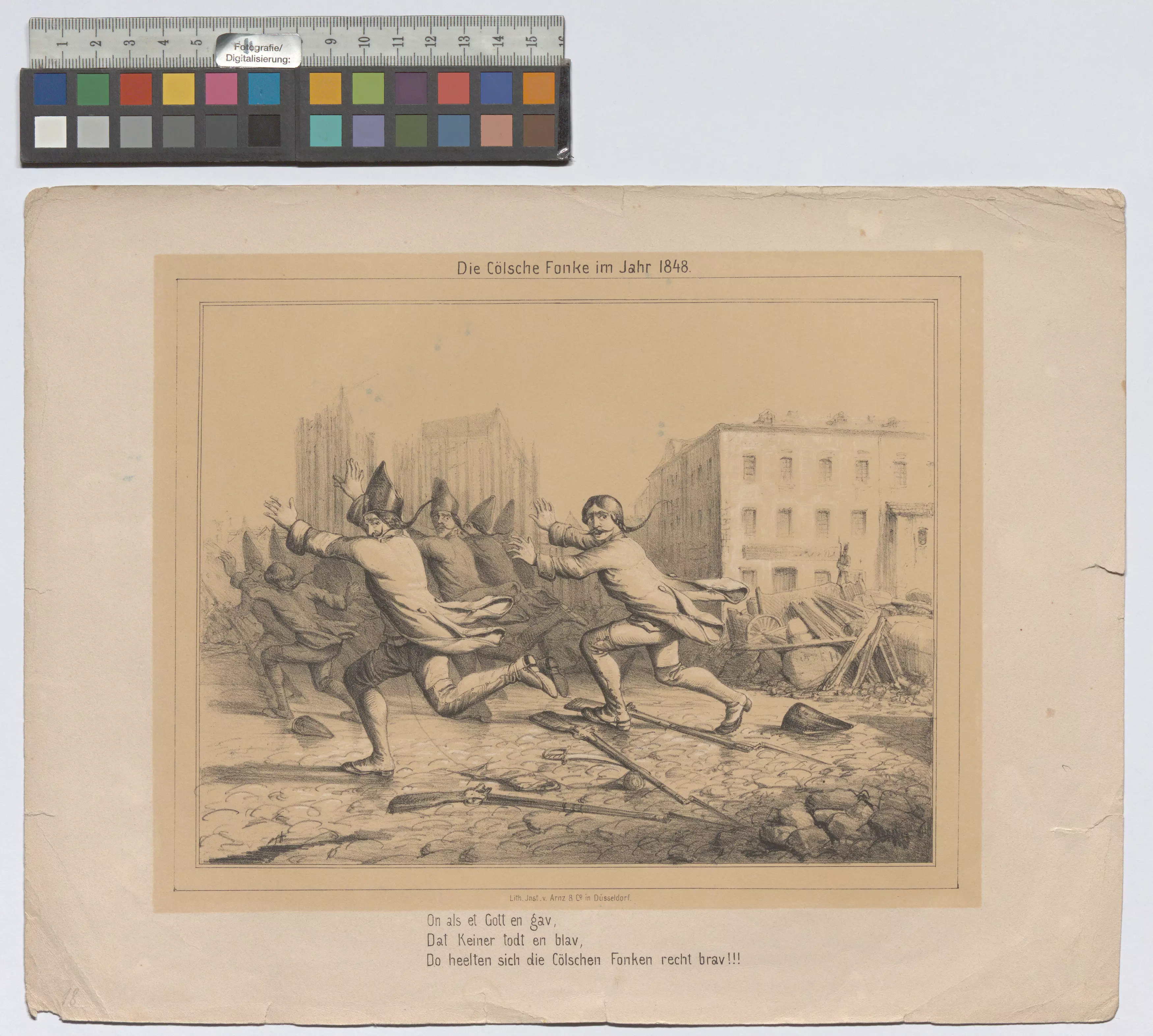 "Die Cölnsche Fonke im Jahr 1848." (Karikatur, aus "Düsseldorfer Monatshefte")