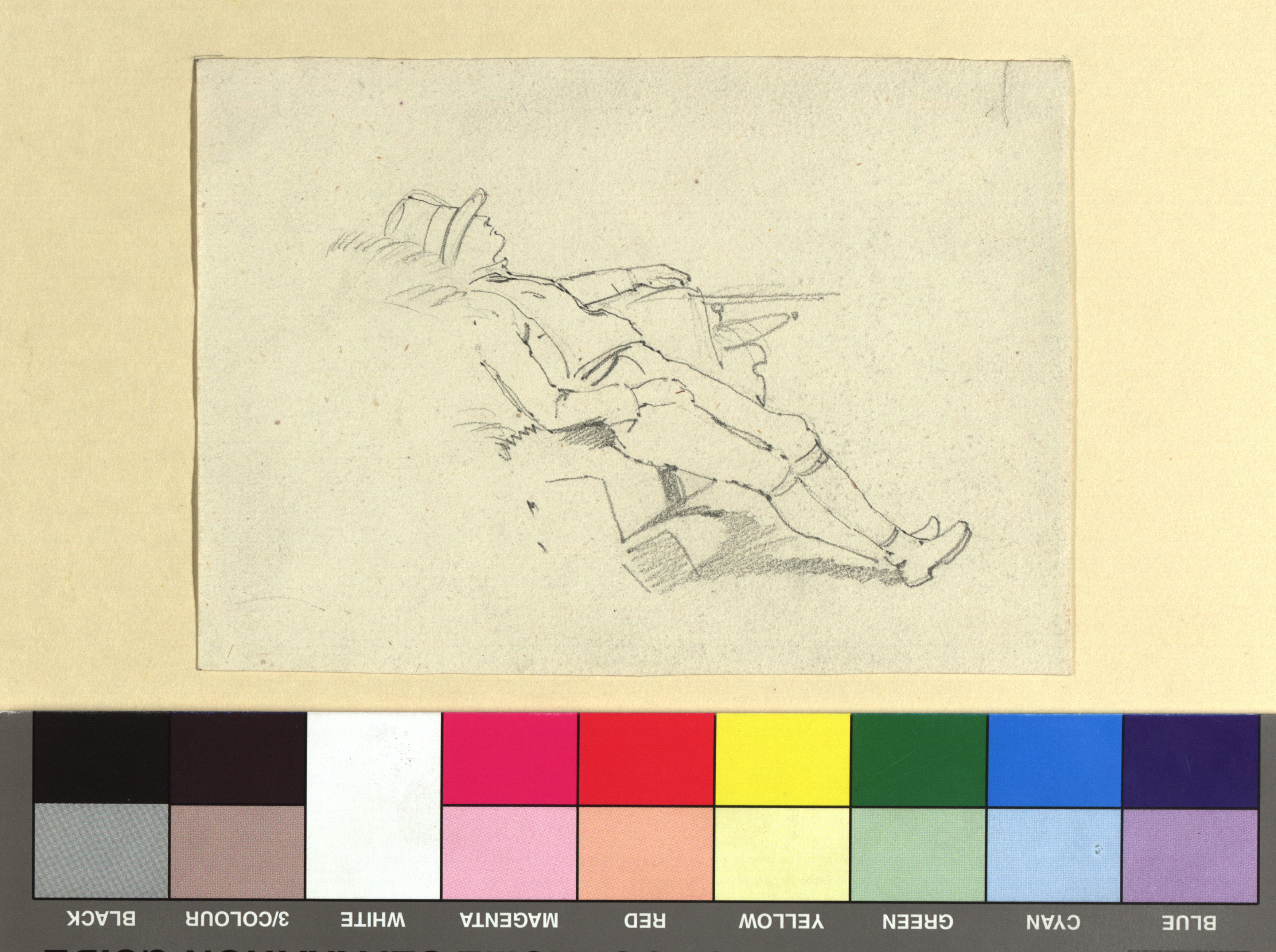 Auf Heuwagen gelehnter schlafender Bauer