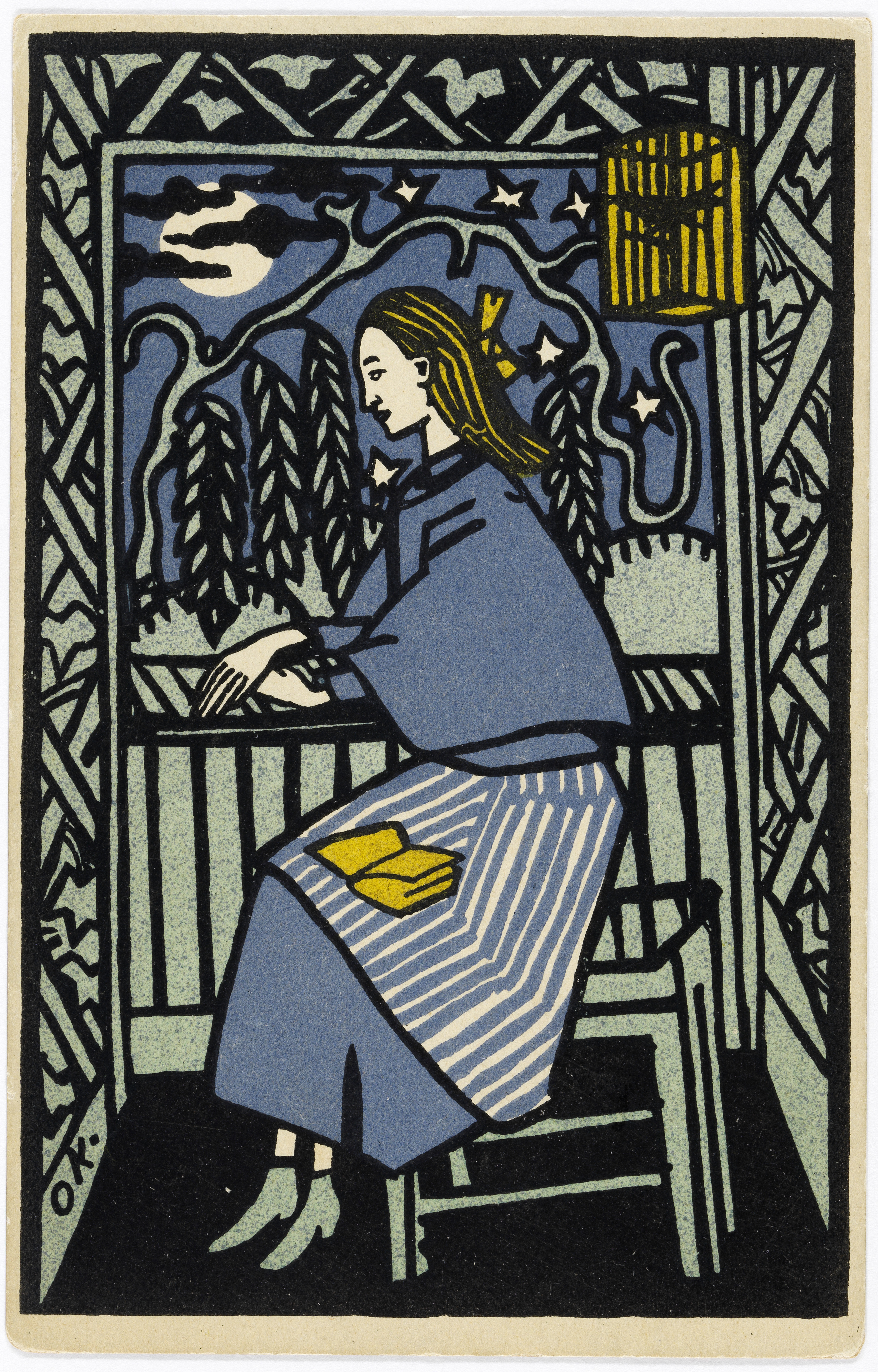 Postkarte der Wiener Werkstätte Nr. 152: Frau am Fenster