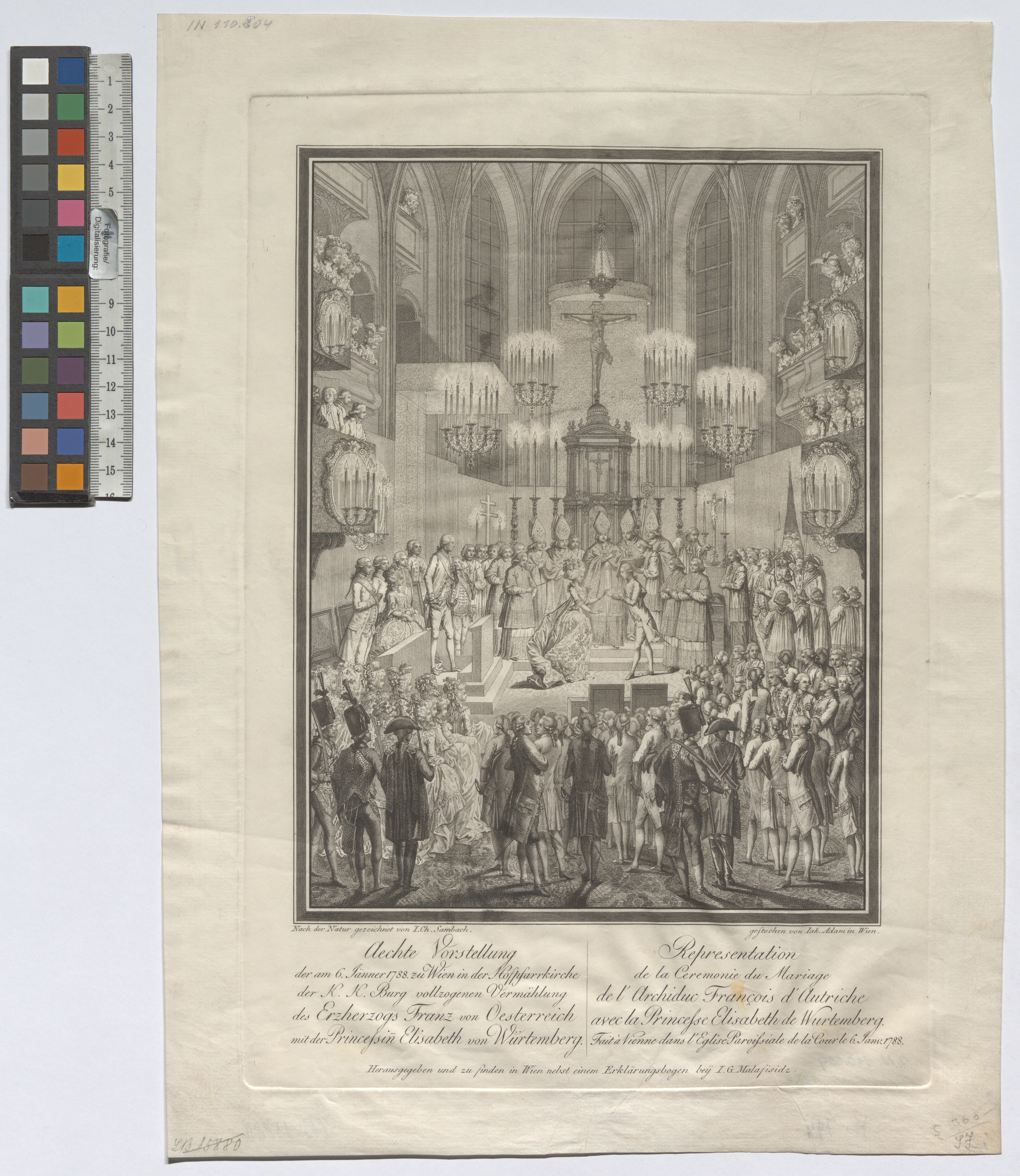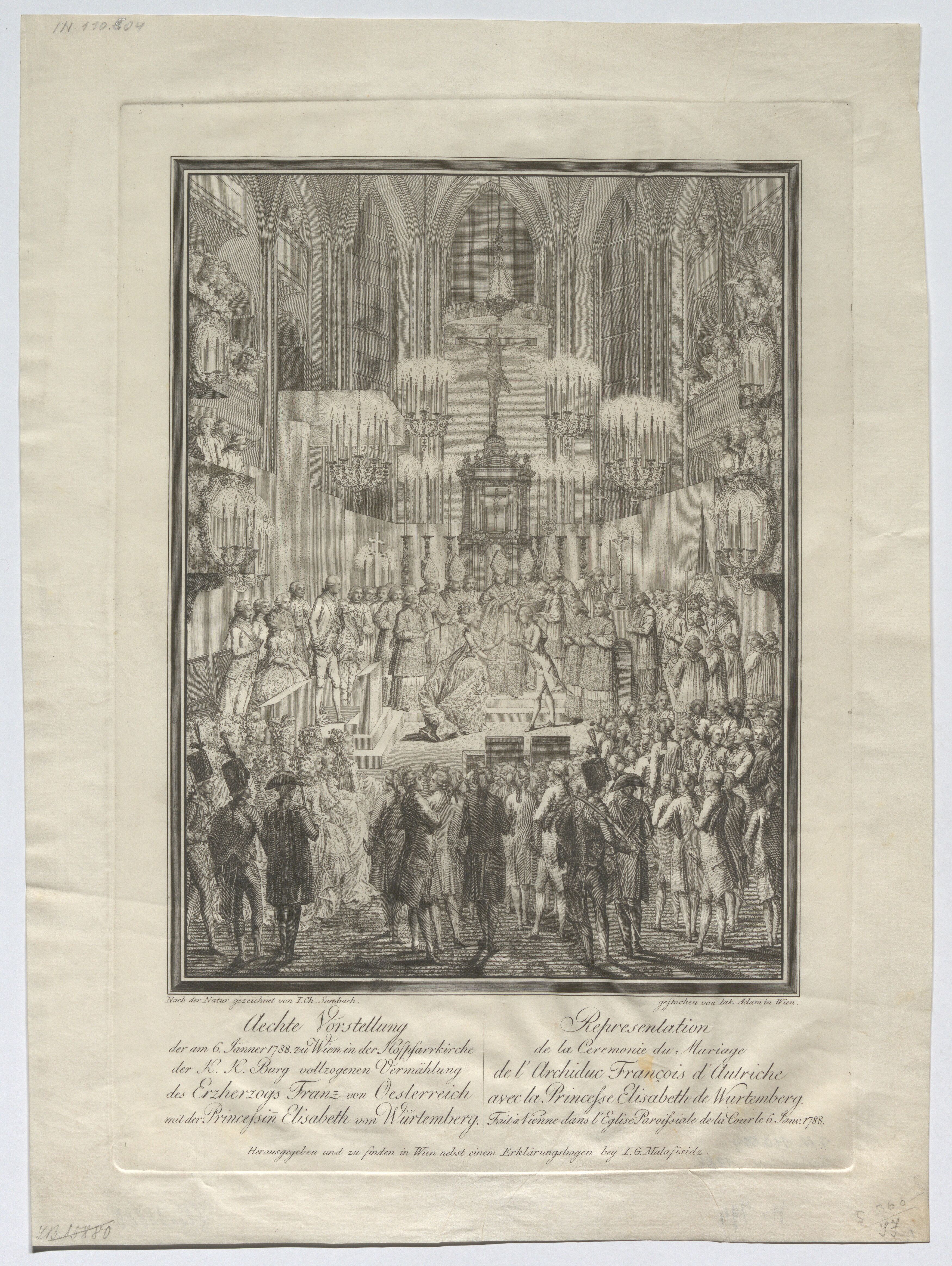 "Aechte Vorstellung der am 6. Jänner 1788 zu Wien in Hofpfarrkirche der k.k. Burg vollzogenen Vermählung des Erzherzogs Franz von Oesterreich mit der Prinzessin Elisabeth von Würtemberg."