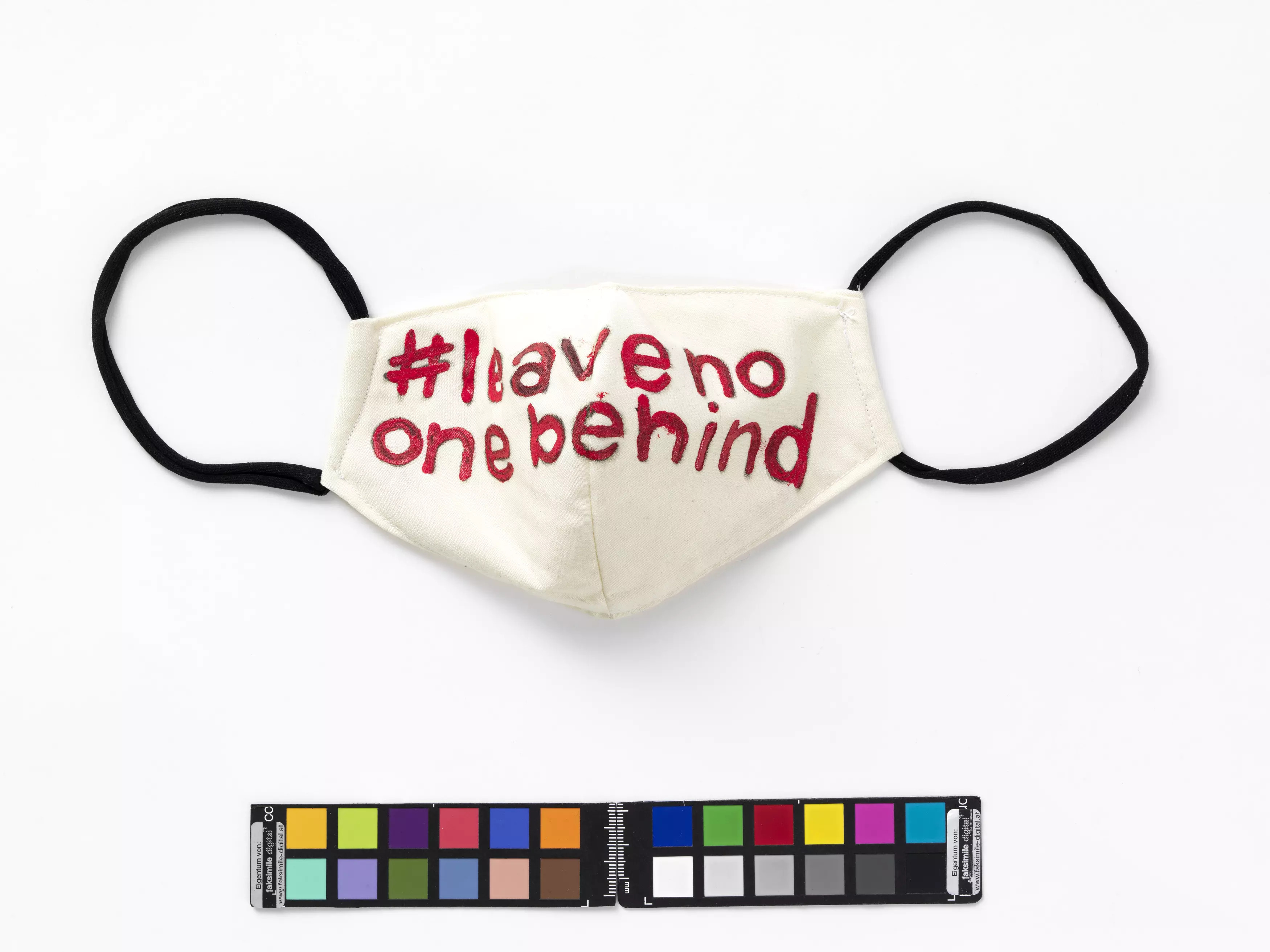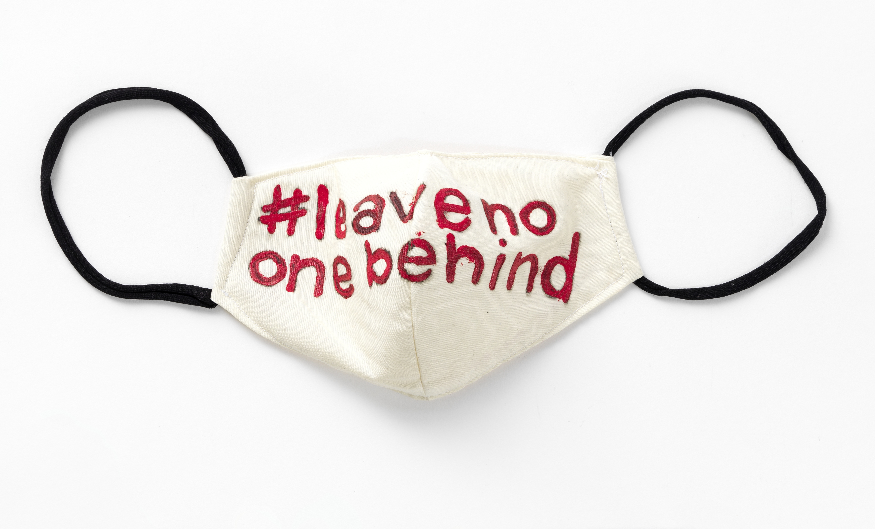 Mund-Nasen-Schutzmaske "#leavenoonbebehind", handgefertigt während des ersten Corona-Lockdowns 2020 (Prototyp)