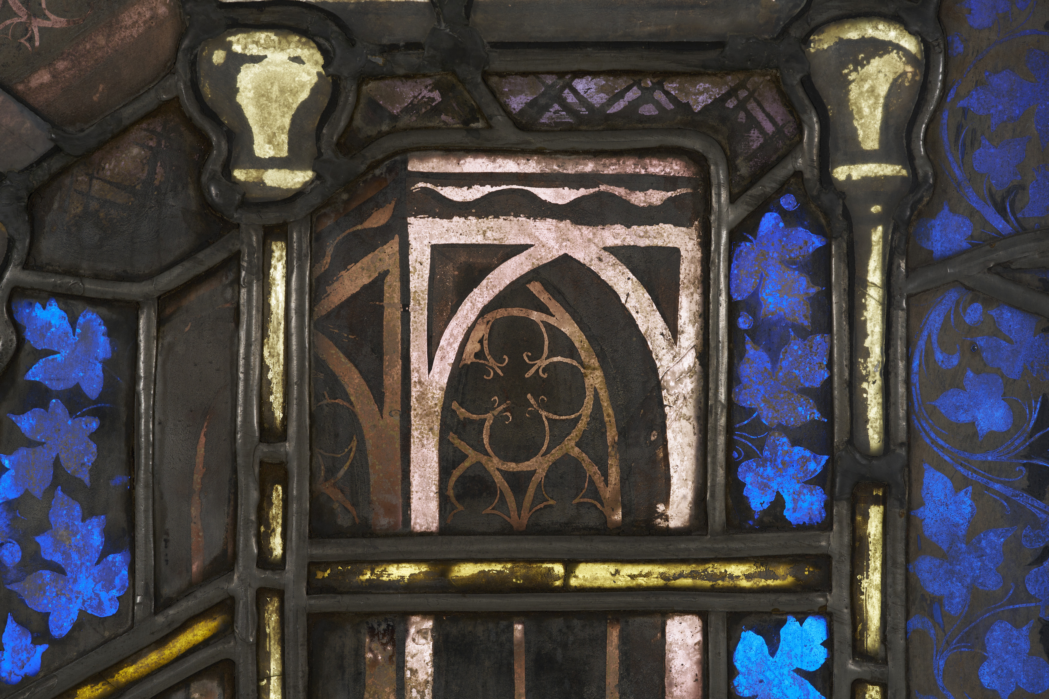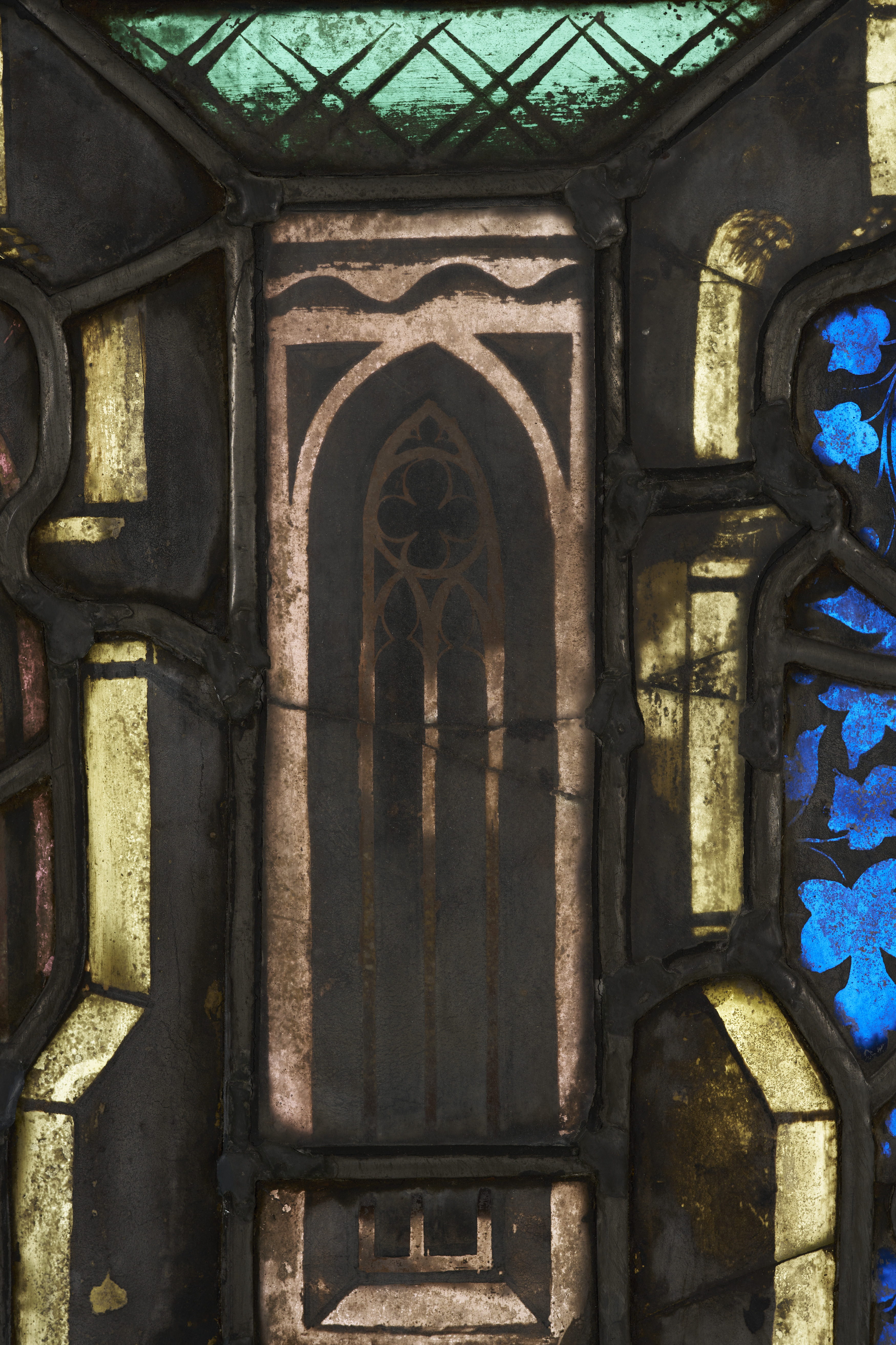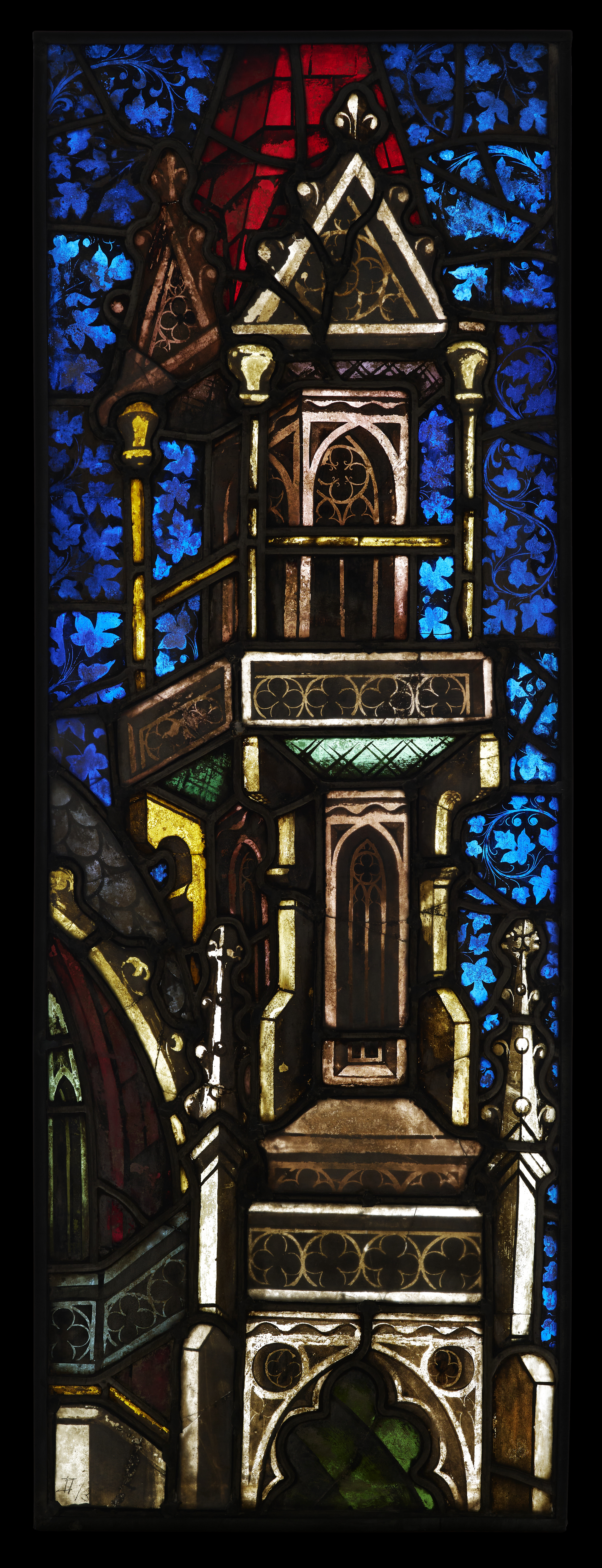 Rechter Turm des Architekturprospektes, Glasgemälde aus der Bartholomäuskapelle von St. Stephan, zweites Habsburgerfenster