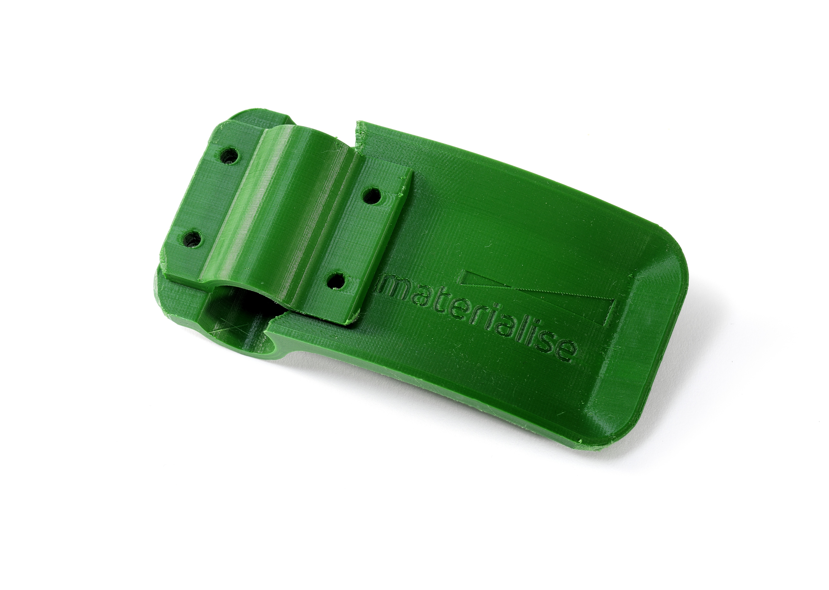 Dieser 3D-gedruckte „Hands-Free“-Behelf zum Öffnen von Türen mit runden Türschnallen mit dem Unterarm wurde von der Österreichischen Gesellschaft für 3D-Druck (OeG3D) nach einem Open-Source Modell der Firma „materialise“ gedruckt. Der zweiteilige Türöffnungsbehelf kann einfach mit einem Fahrradschlauch und zwei Schrauben an der Türschnalle befestigt werden. Abnehmer*innen dieses von verschiedenen 3D-Drucker*innen in hoher Stückzahl gedruckten Behelfs waren u.a. das Rote Kreuz und der Arbeiter-Samariter-Bund.