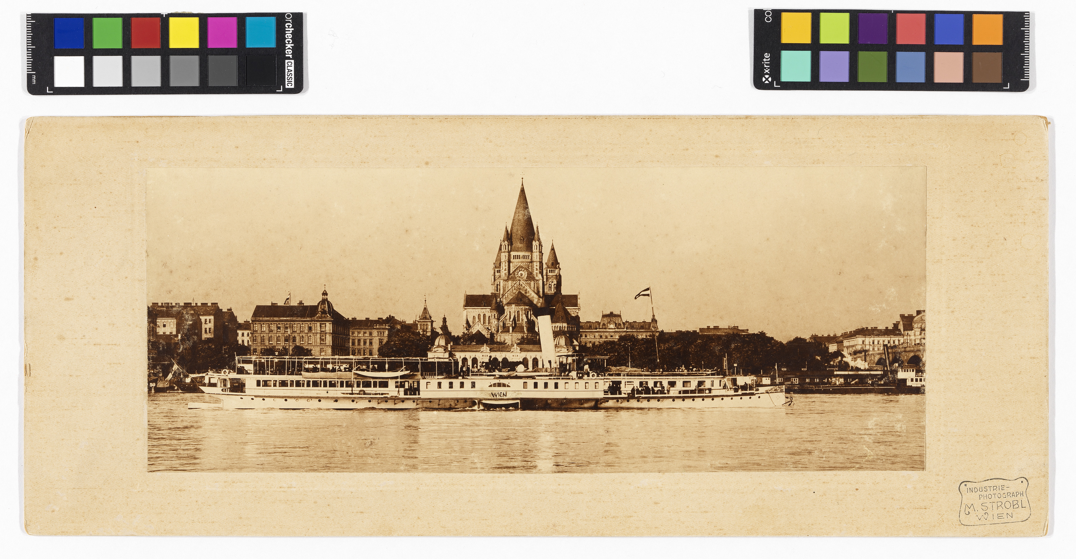 2., Donaudampfer "Wien", Höhe Reichsbrücke und Kaiser Franz Josef Jubiläumskirche (heute: Mexikoplatz)