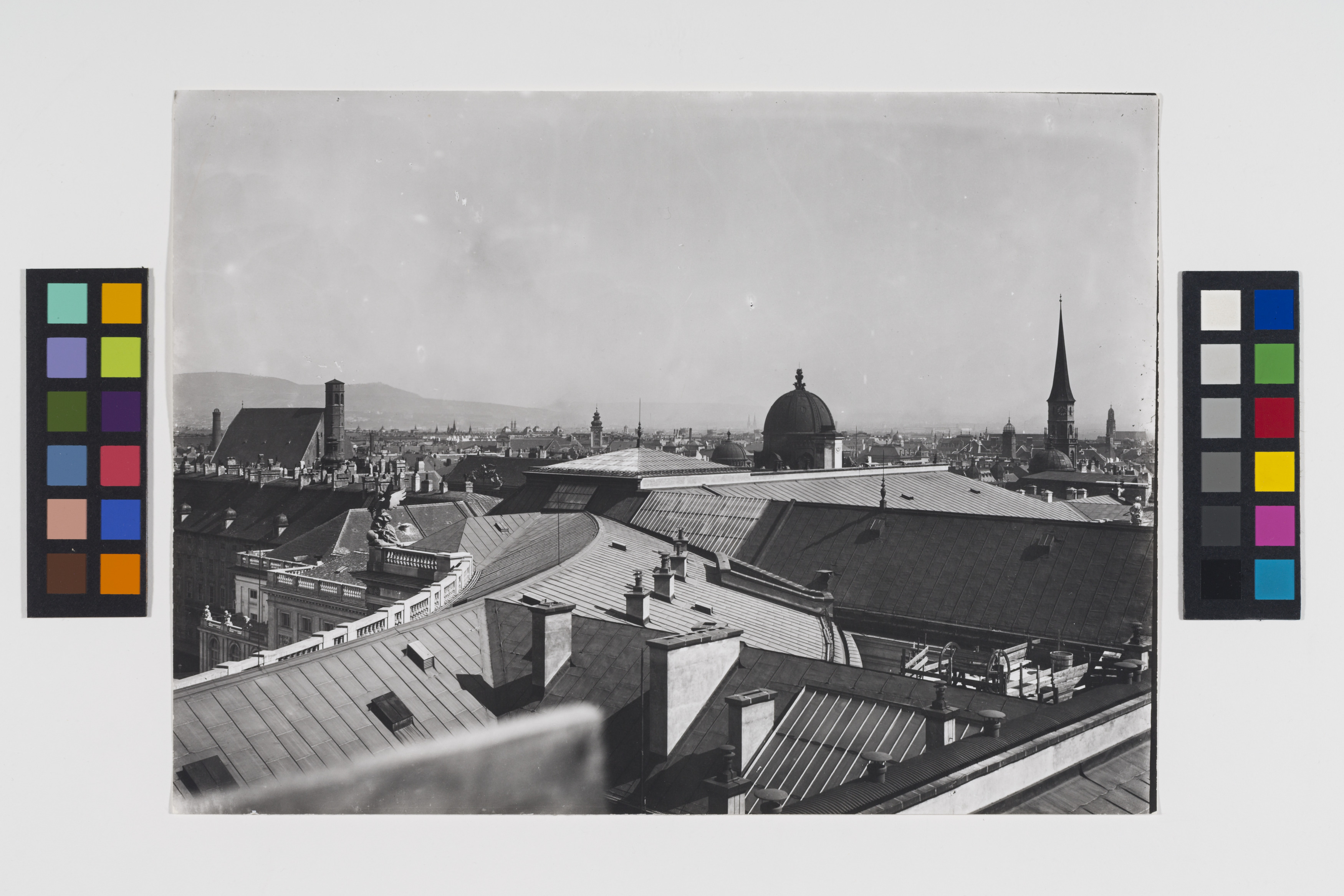 1., Burg - Heldenplatz, allg. - Neue Burg - Panoramablick vom Dach der Neuen Burg gegen die Innenstadt - Minoritenkirche -Michaelerkirche (Reproduktion)