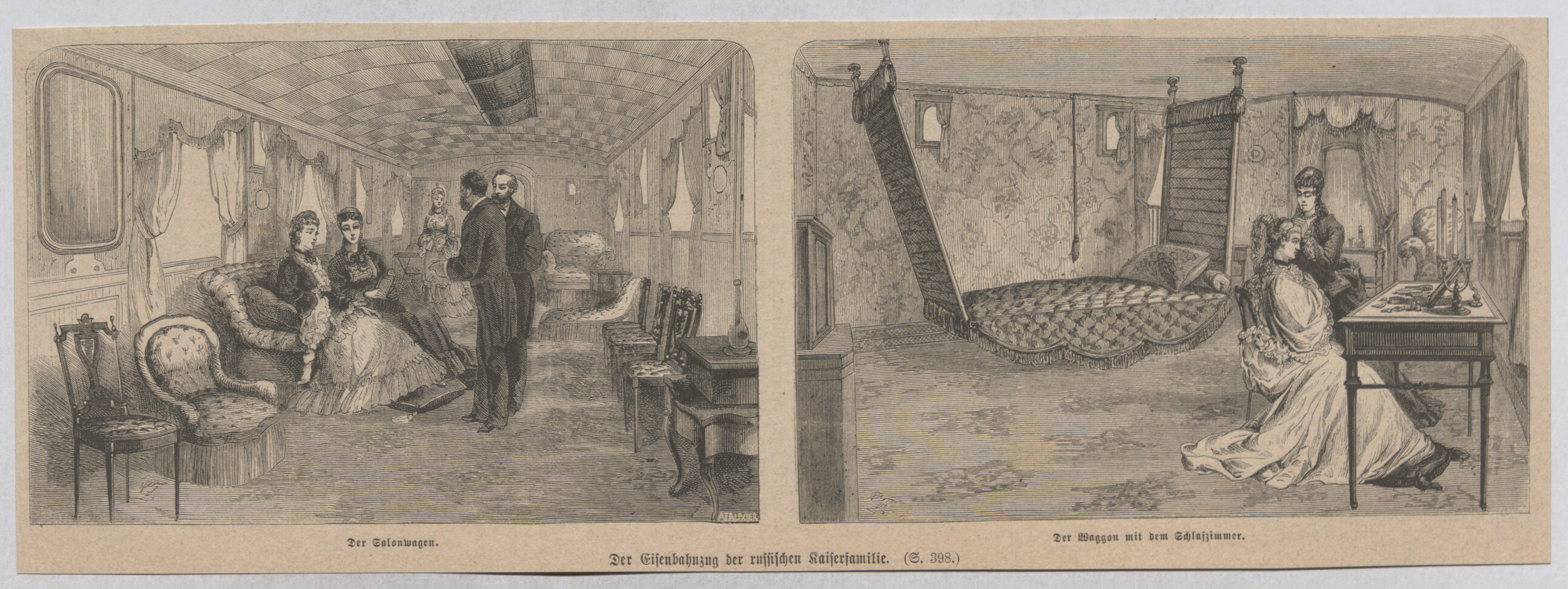 "Der Eisenbahnzug der russischen Kaiserfamilie; Der Salonwagen; Der Waggon mit dem Schlafzimmer"