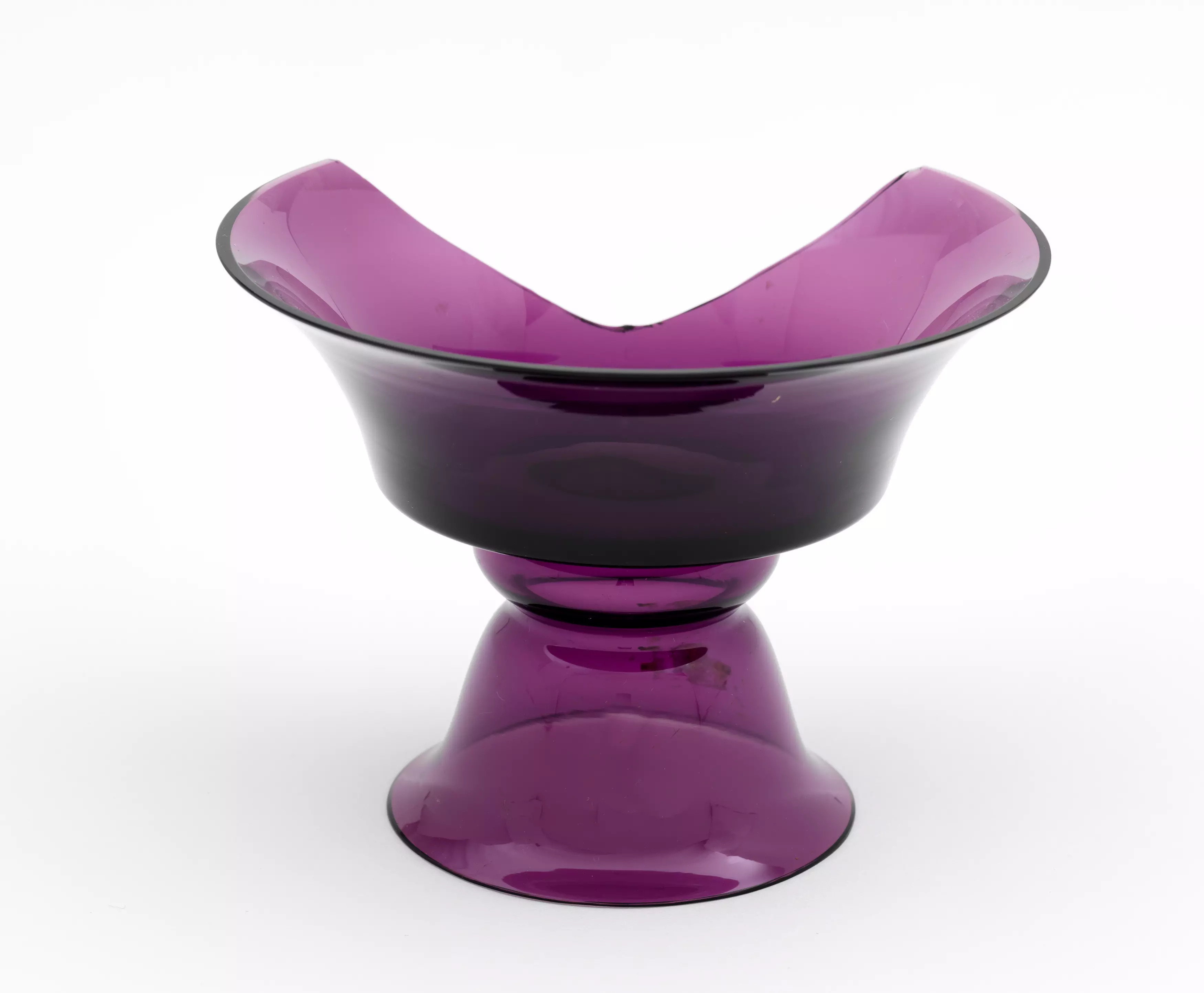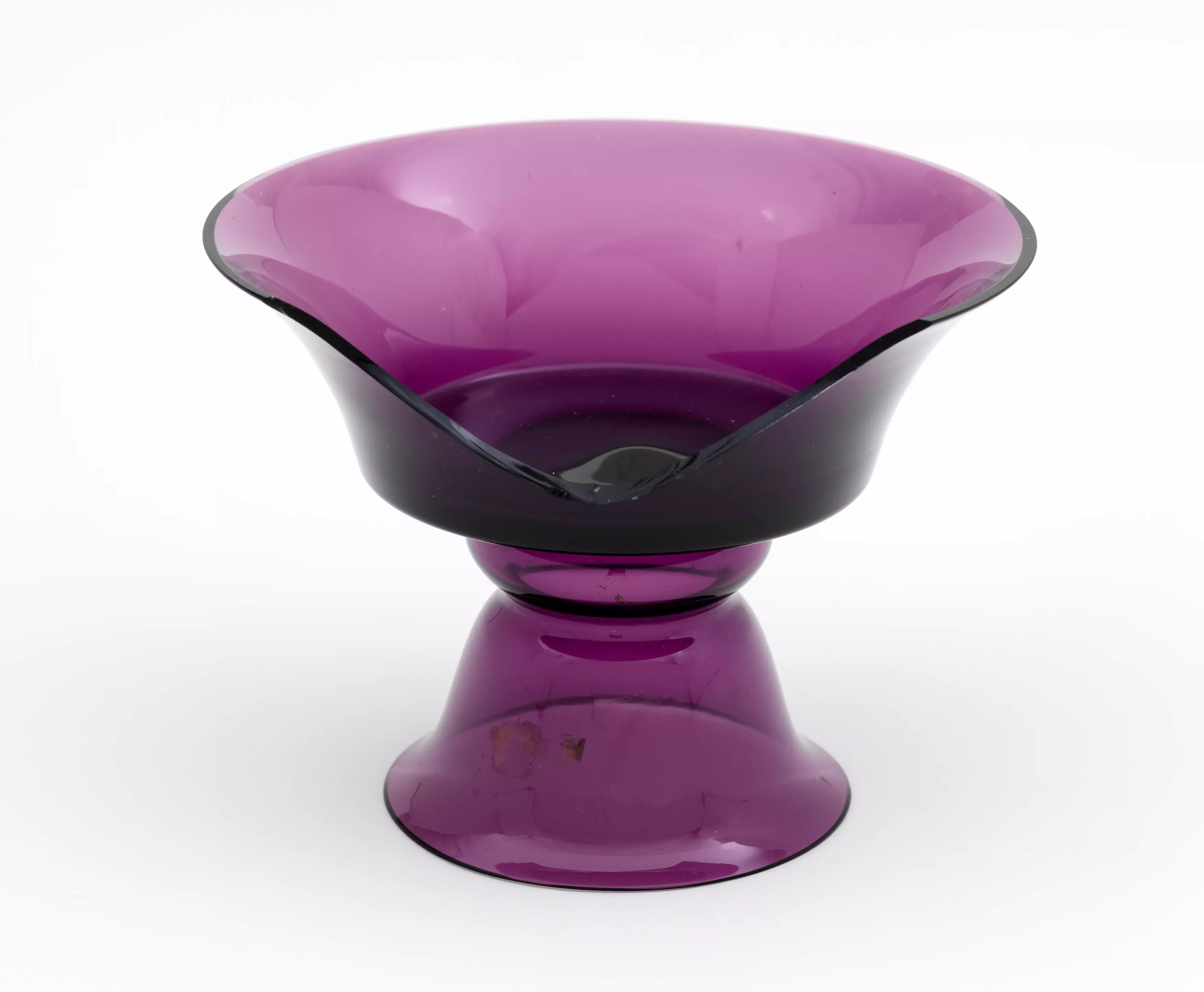 Garnitur aus lila Glas - Schale in gedrungener Kelchform