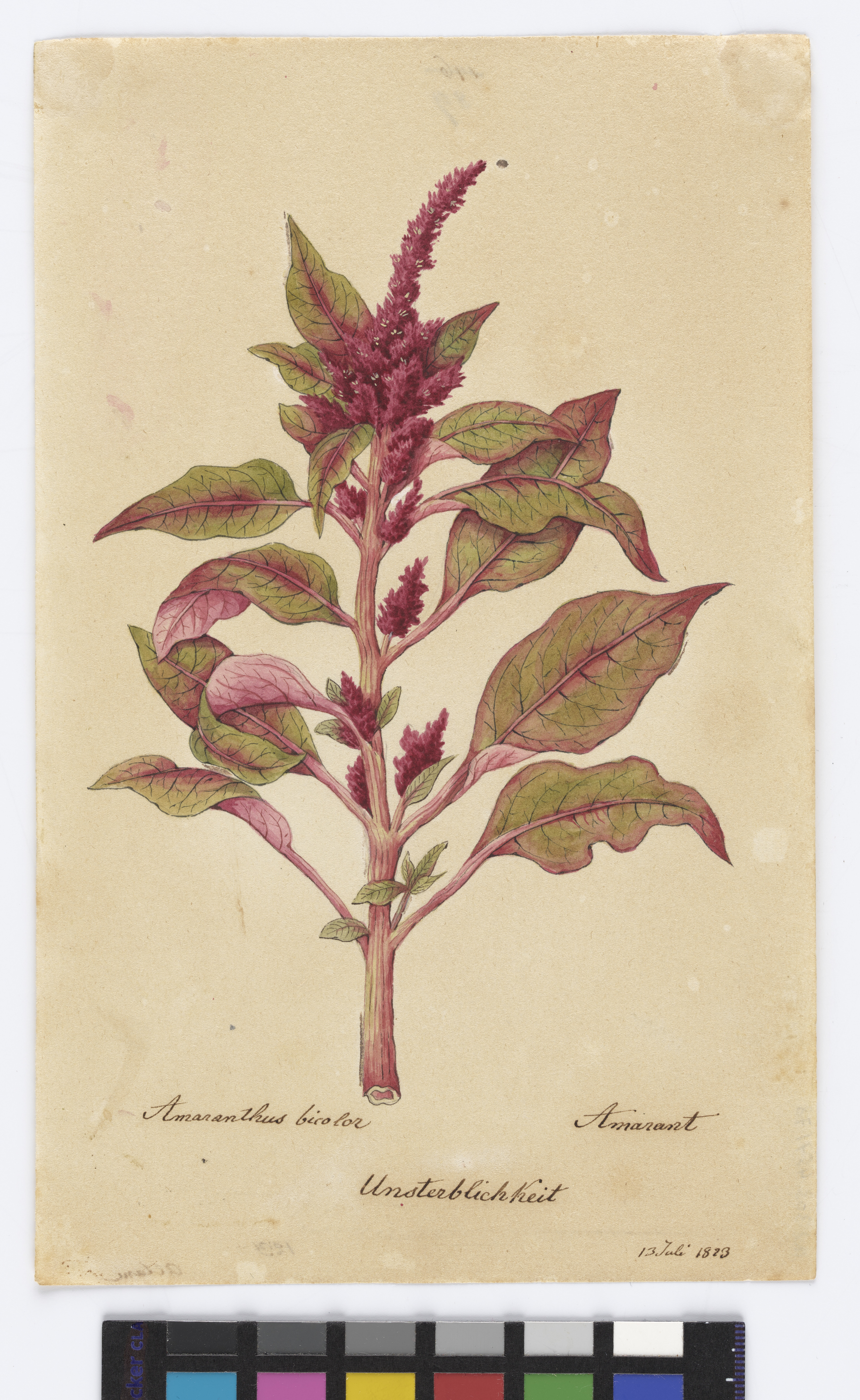 - Symbolik der Blumen: Amarant (Amaranthus bicolor), "Unsterblichkeit"