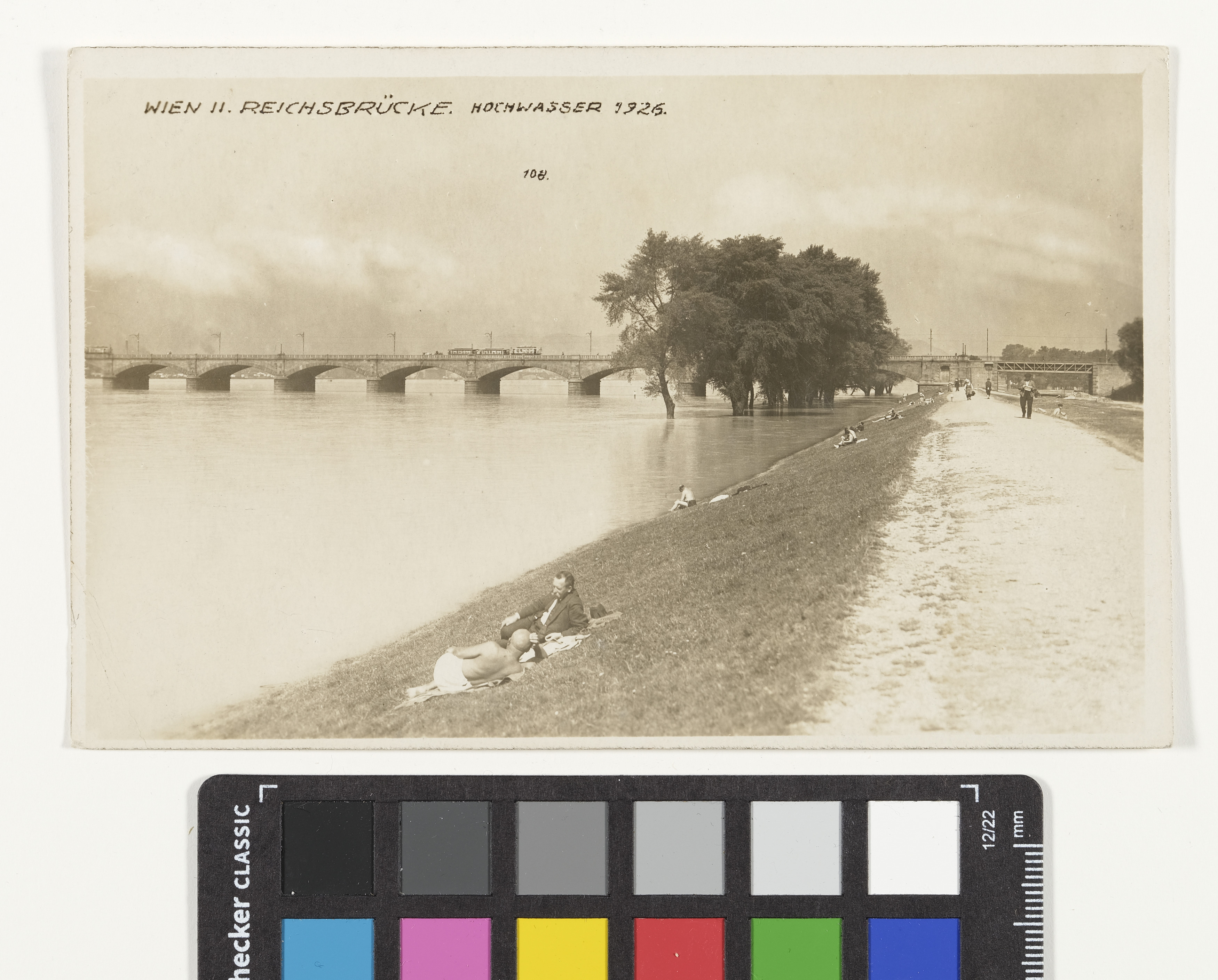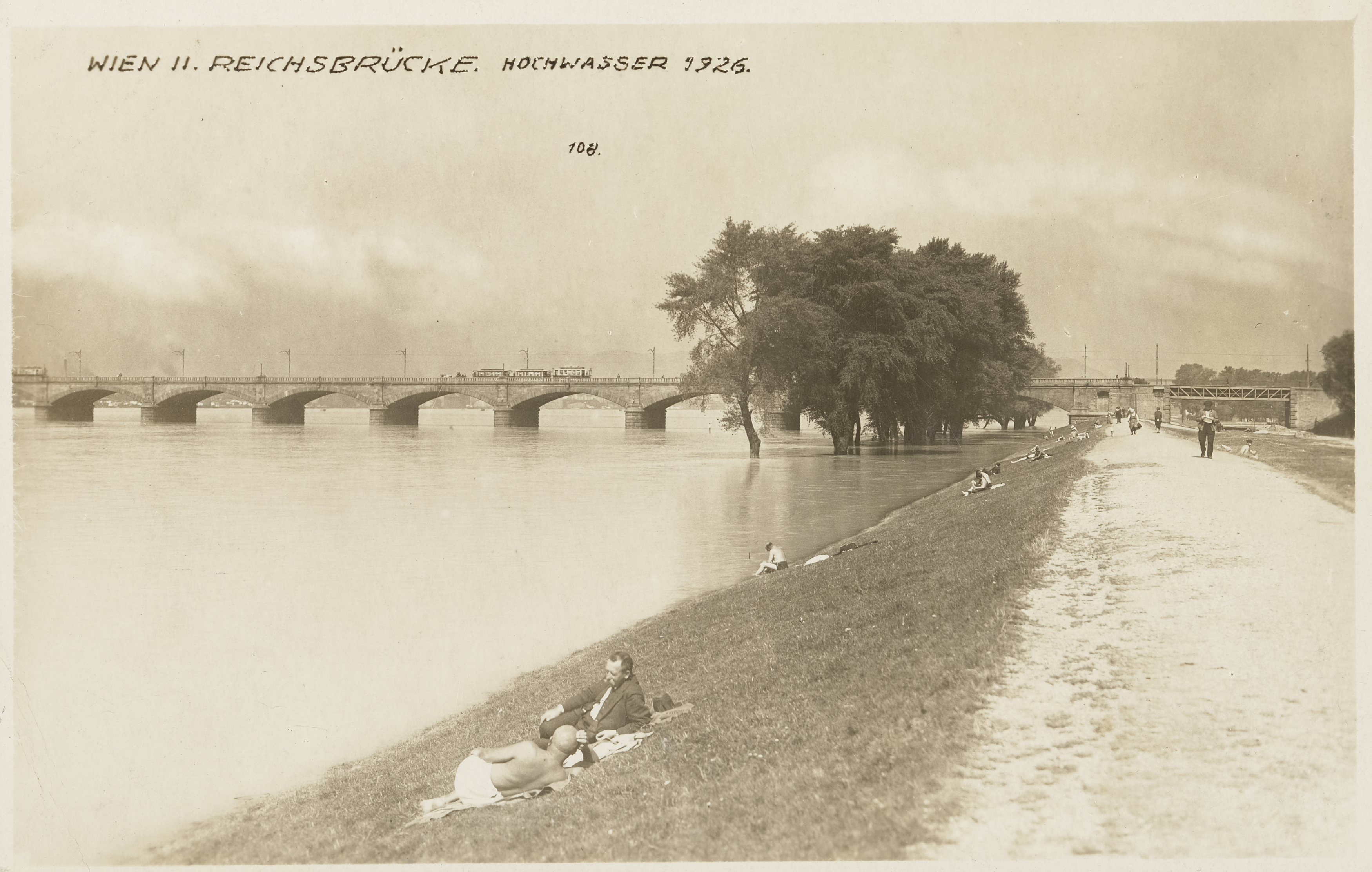- Donaustrom - Überschwemmungsgebiet und Hubertusdamm bei der Reichsbrücke, Hochwasser 1926, Ansichtskarte
