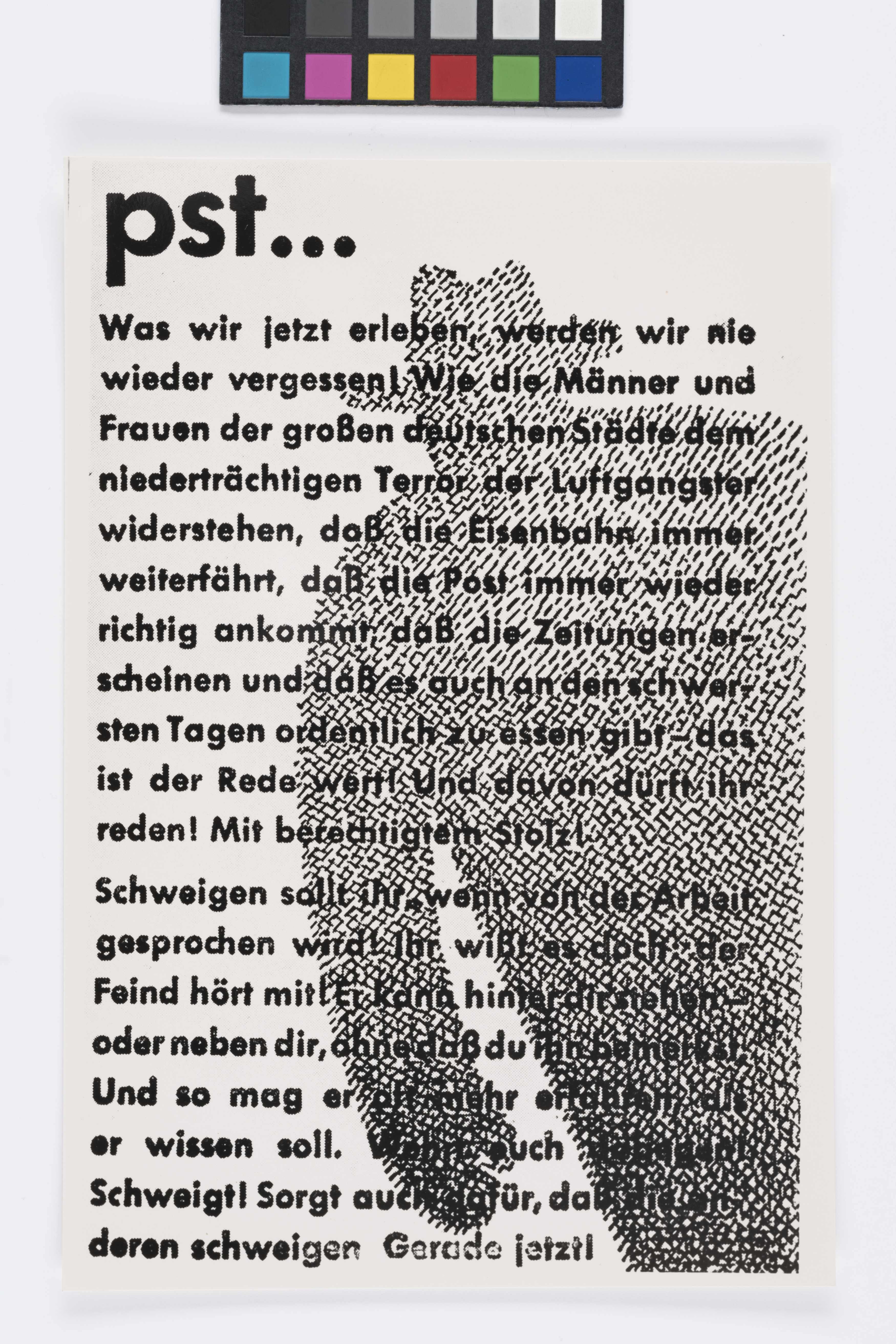 "pst". Plakat mit nationalsozialistischer "Der Feind hört mit"-Propaganda