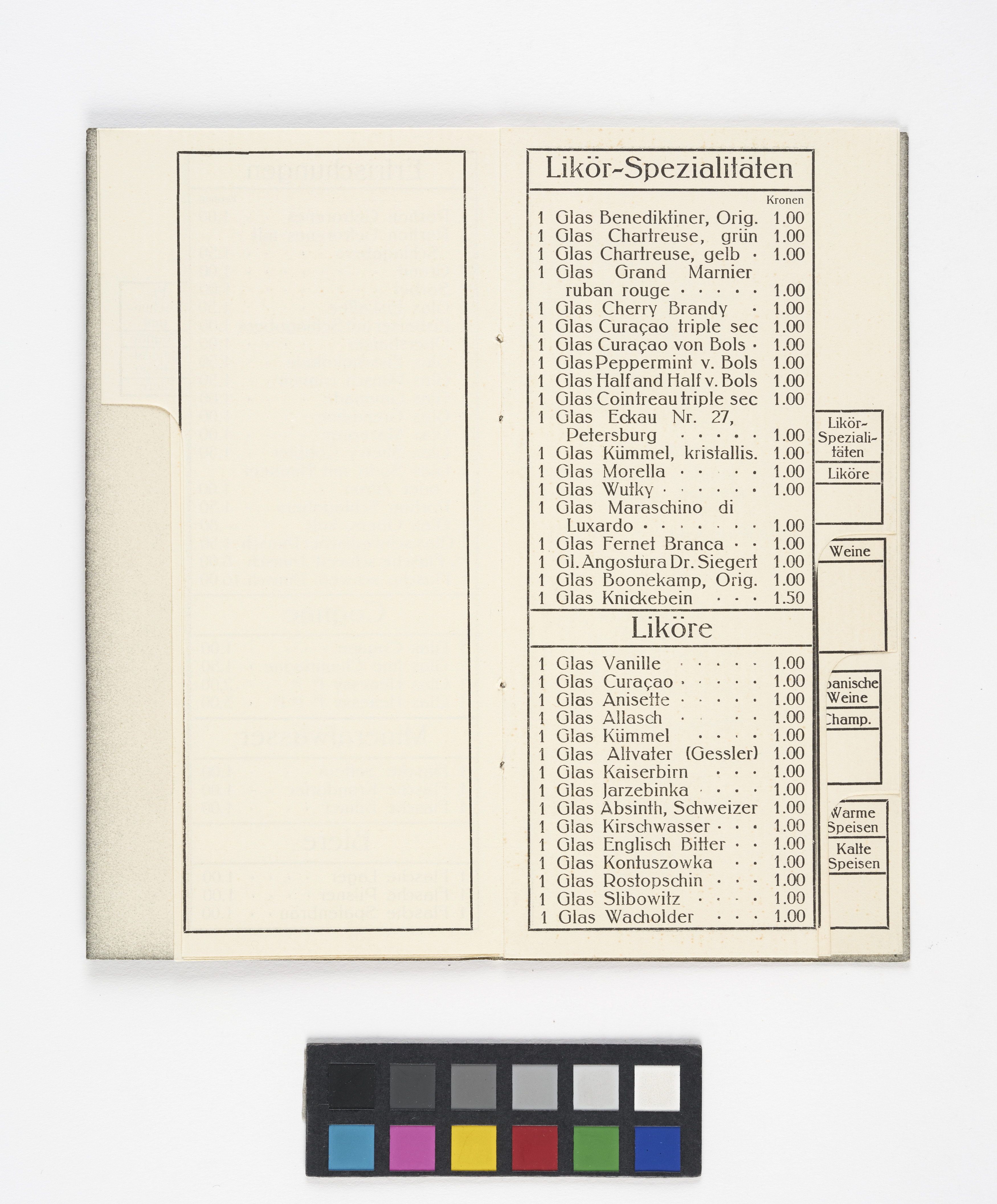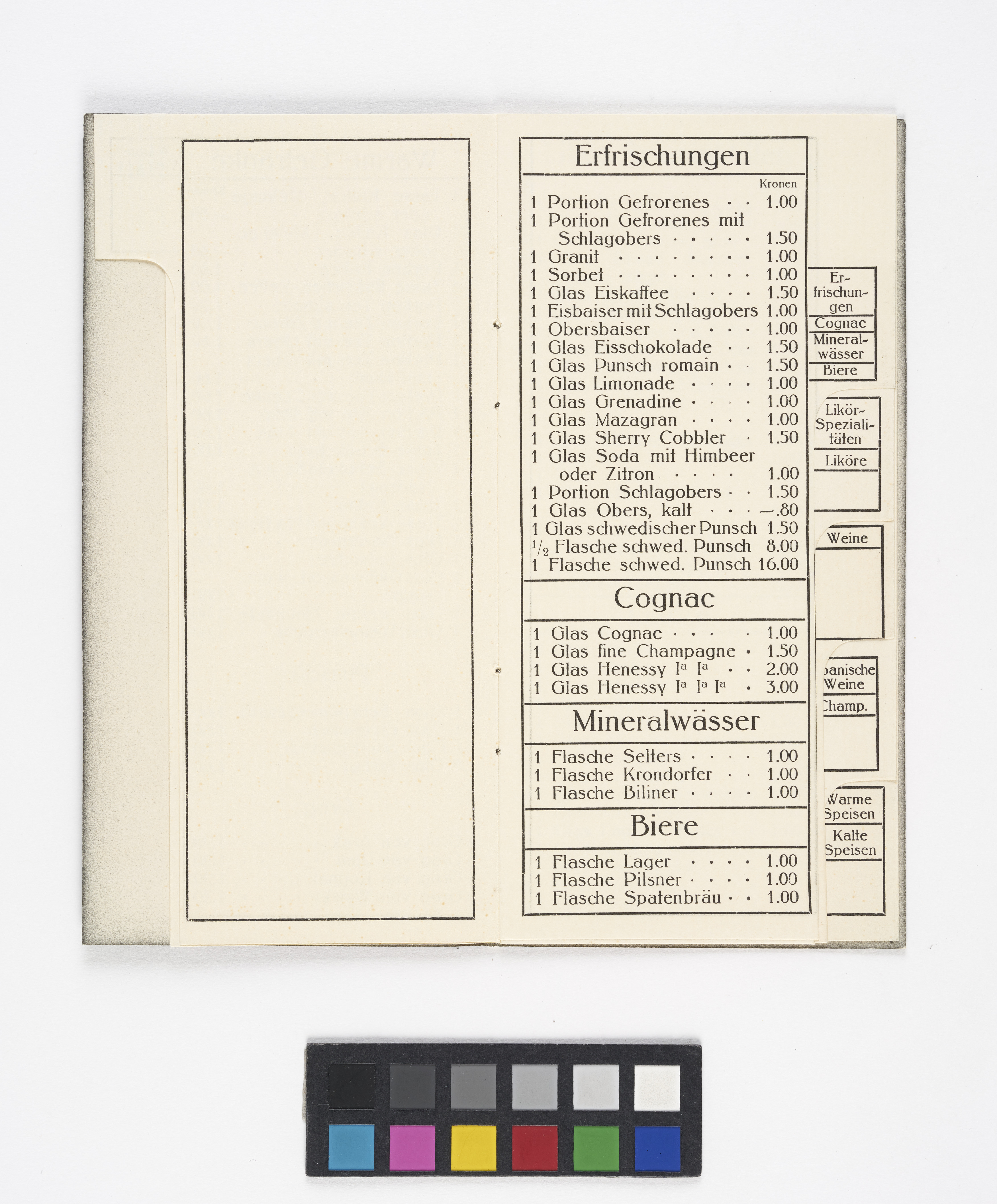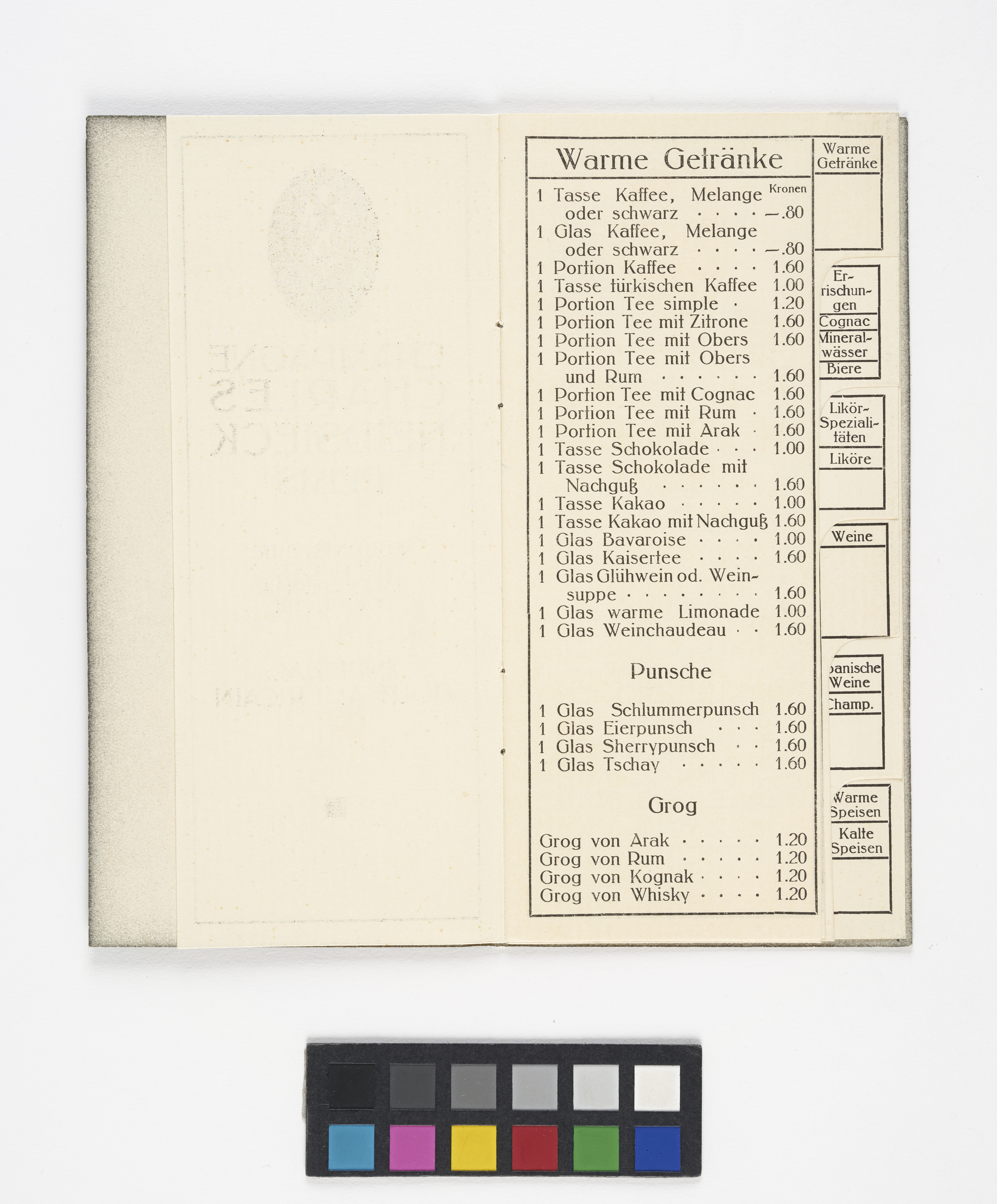 Getränkekarte aus dem "Graben-Kaffee" [Graben-Café]