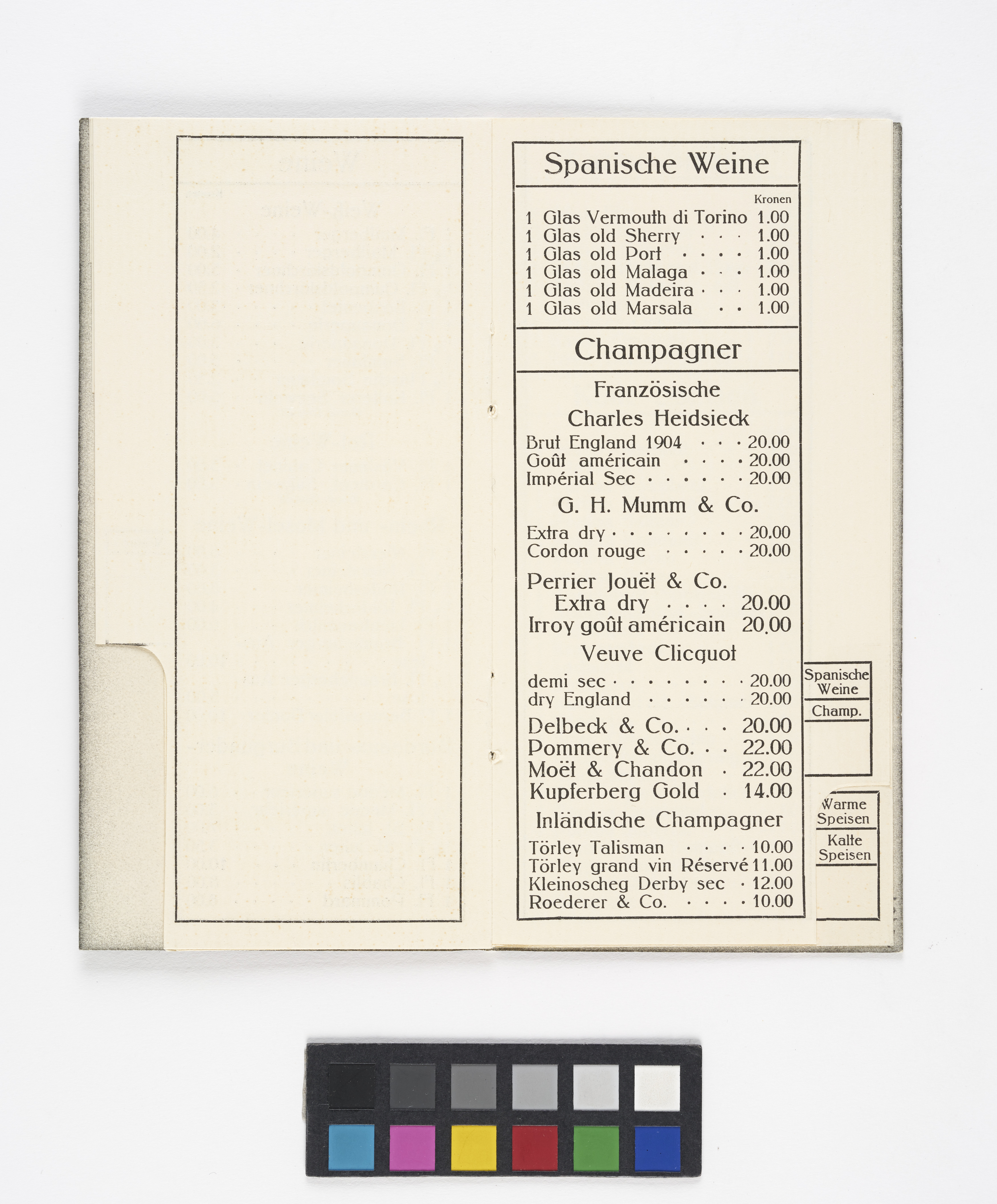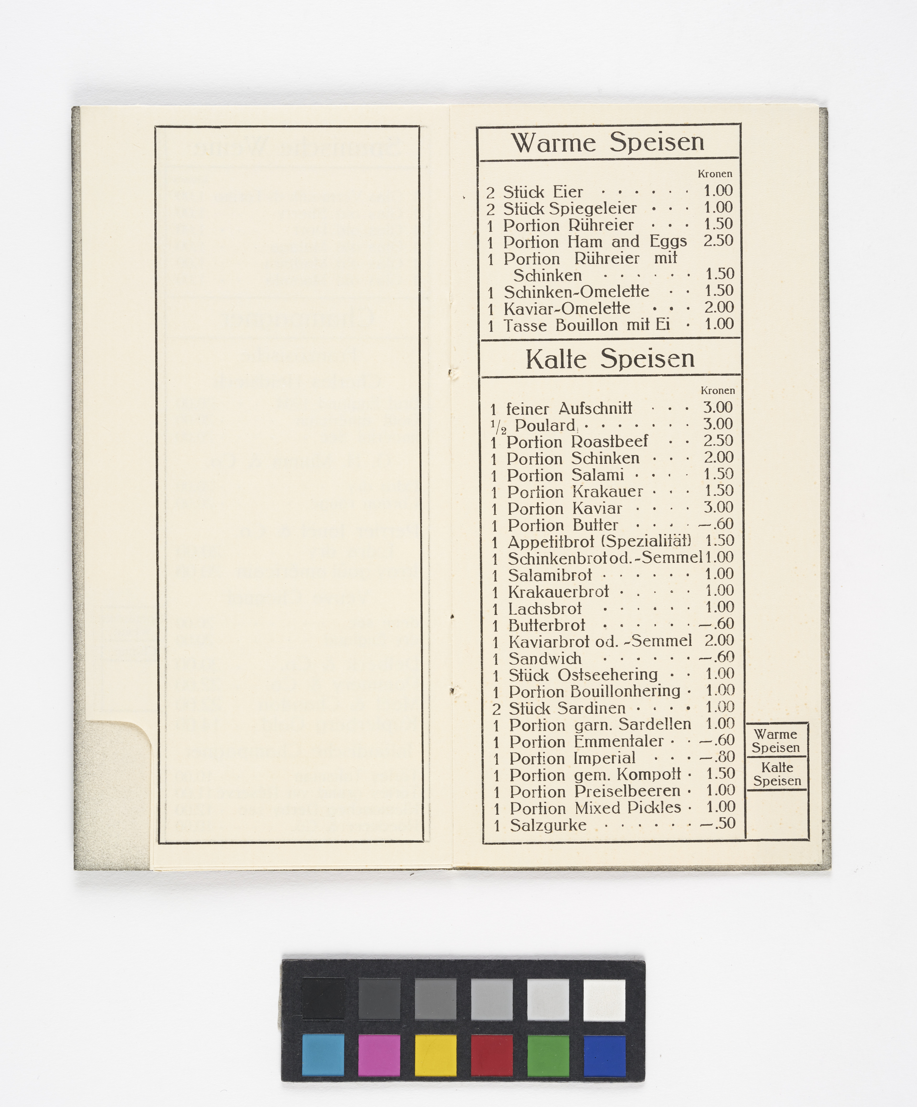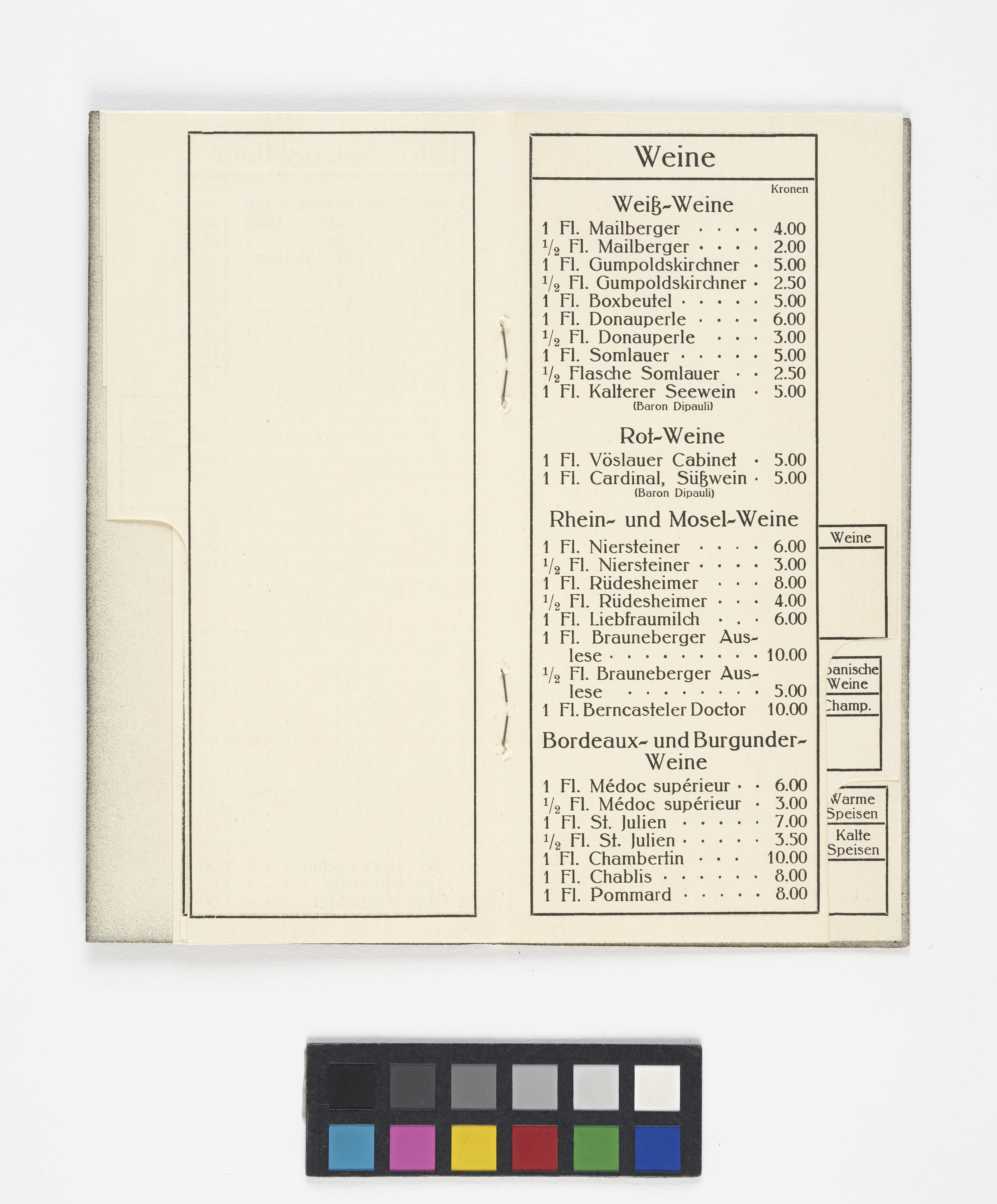 Getränkekarte aus dem "Graben-Kaffee" [Graben-Café]