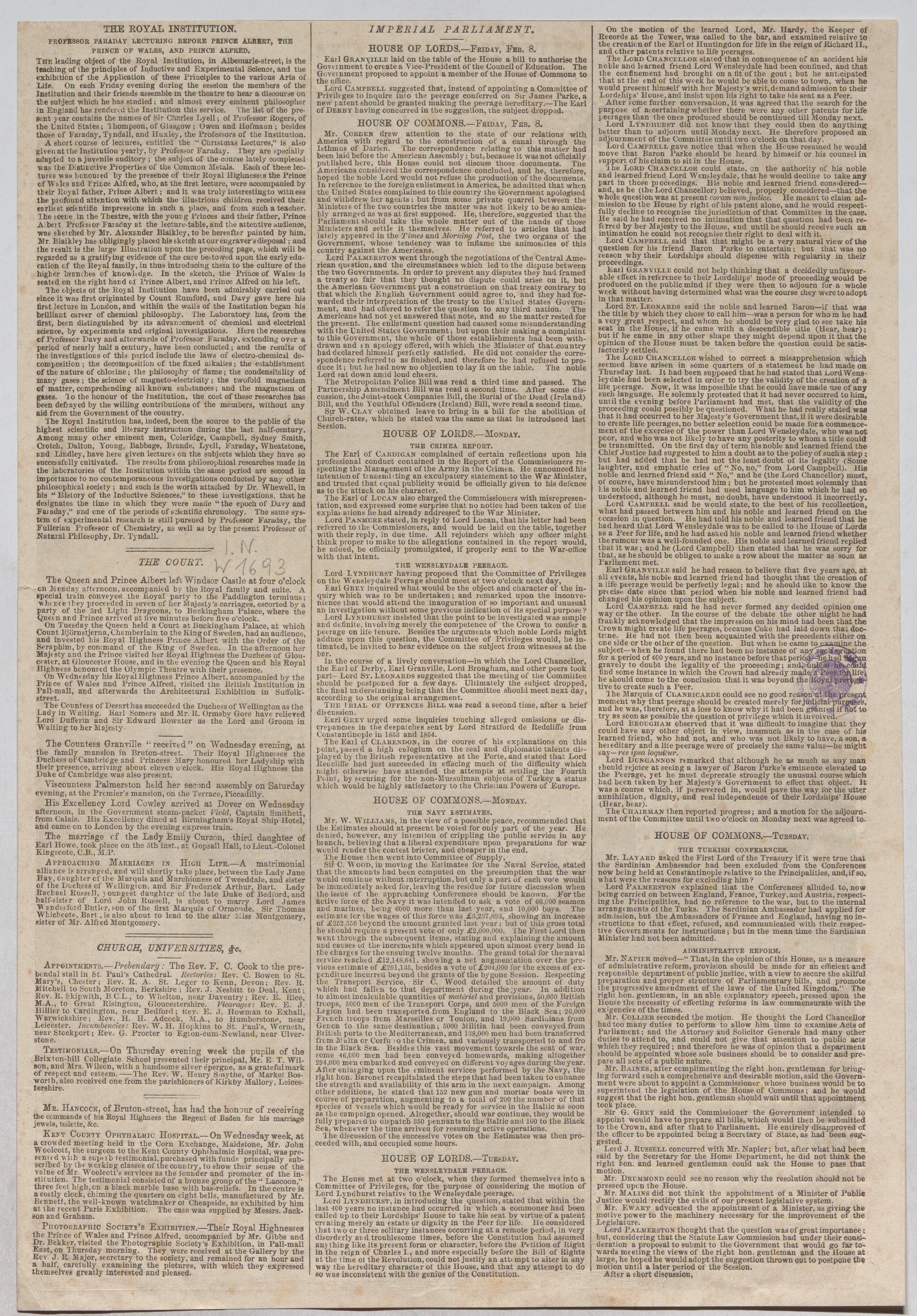 "PROFESSOR FARADAY LECTURING AT THE ROYAL INSTITUTION, BEFORE H.R.H. PRINCE ALBERT THE PRINCE OF WALES AND PRINCE ALFRED"
