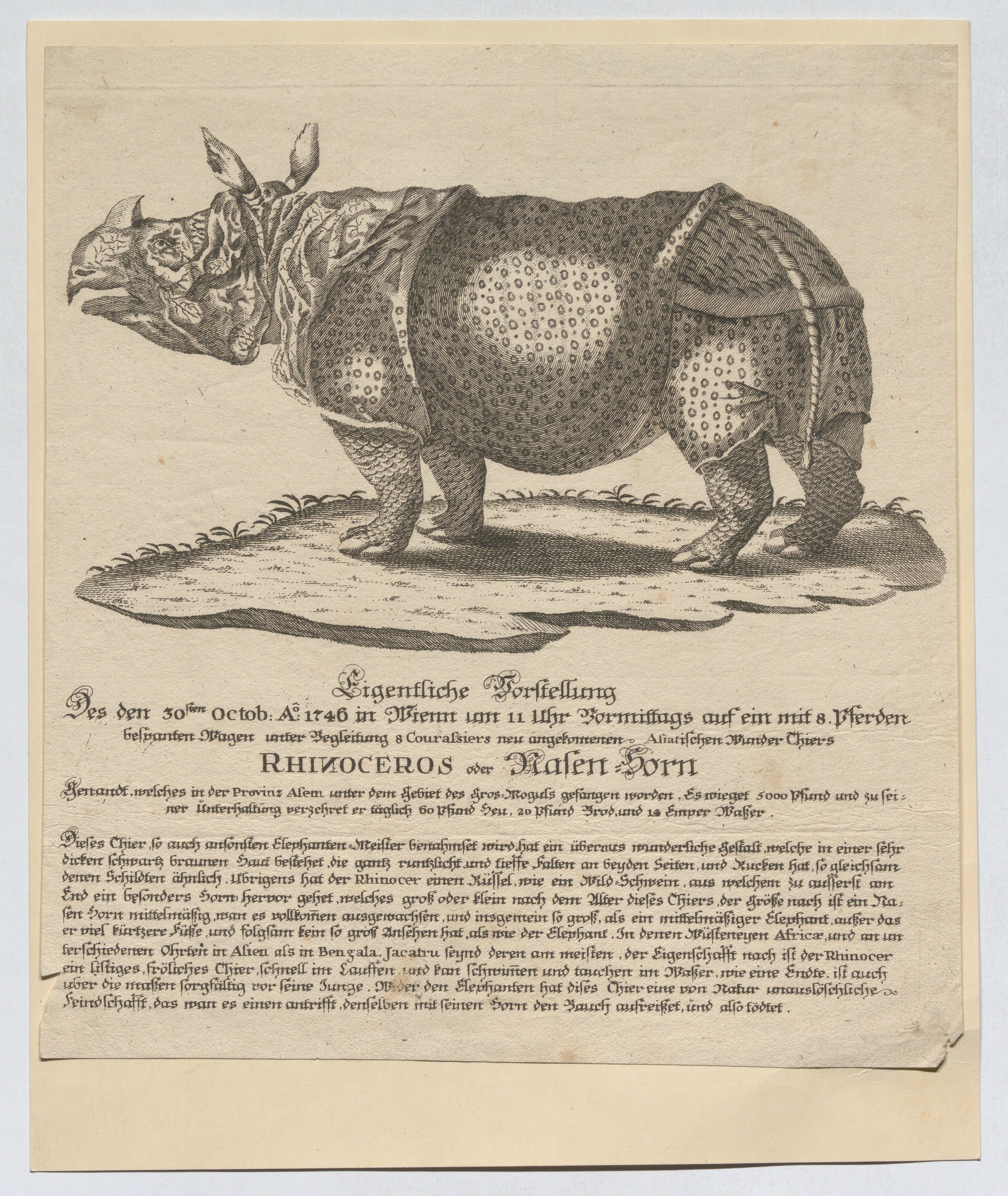 - Das am 30. Oktober 1746 in Wien angekommene Rhinozeros