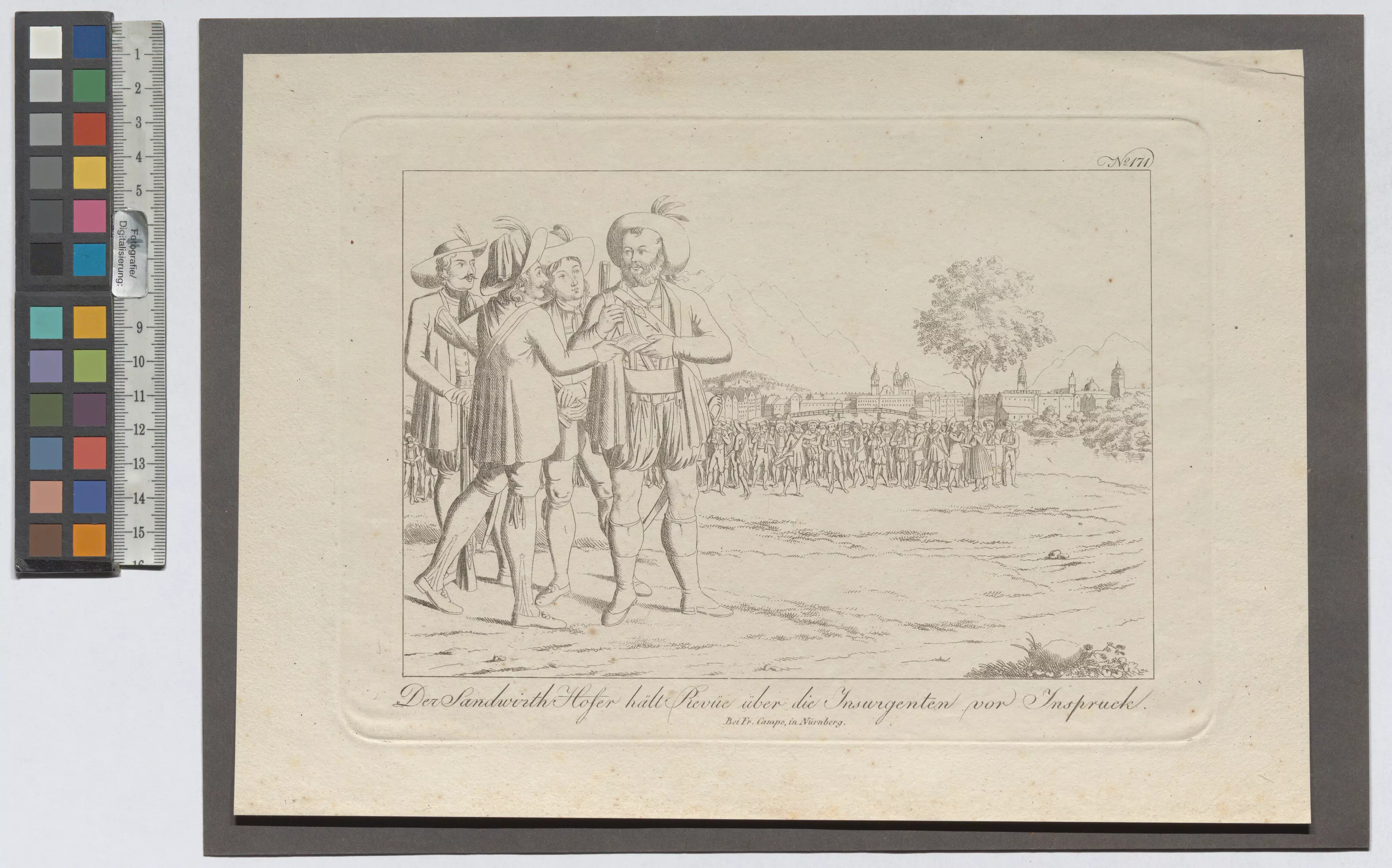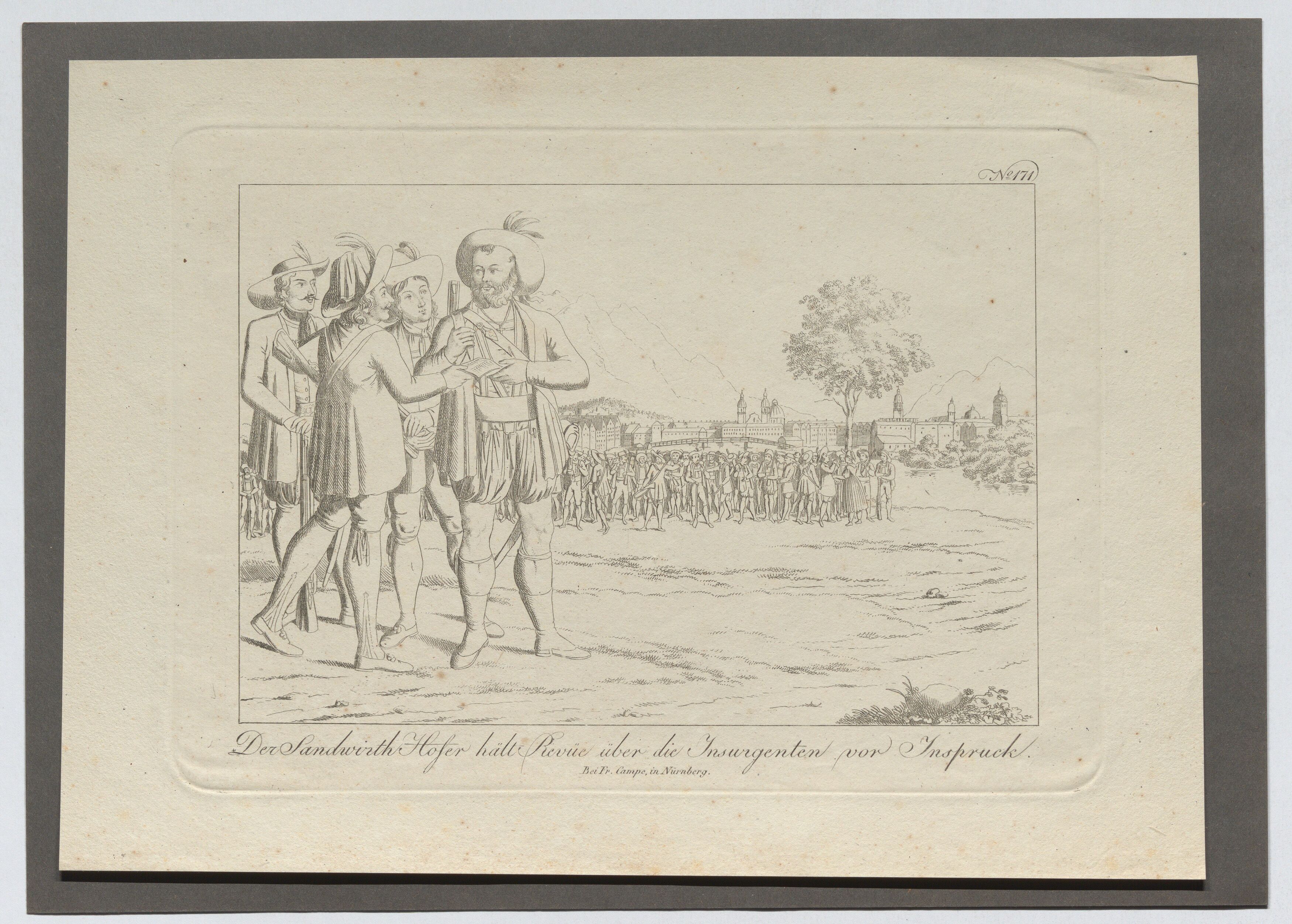 "Der Sandwirt Hofer hält Revüe über die Insurgenten" vor Innsbruck 1809