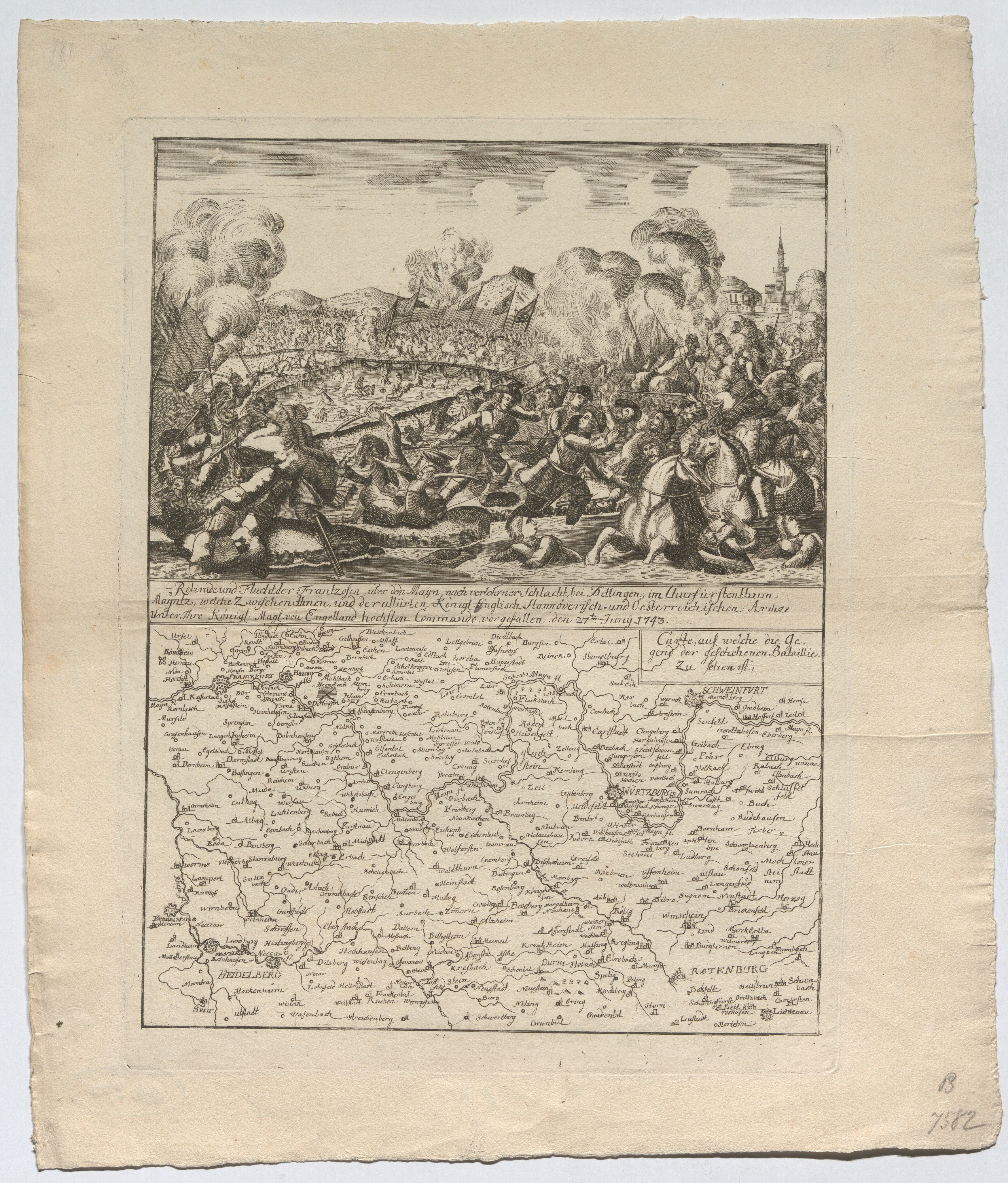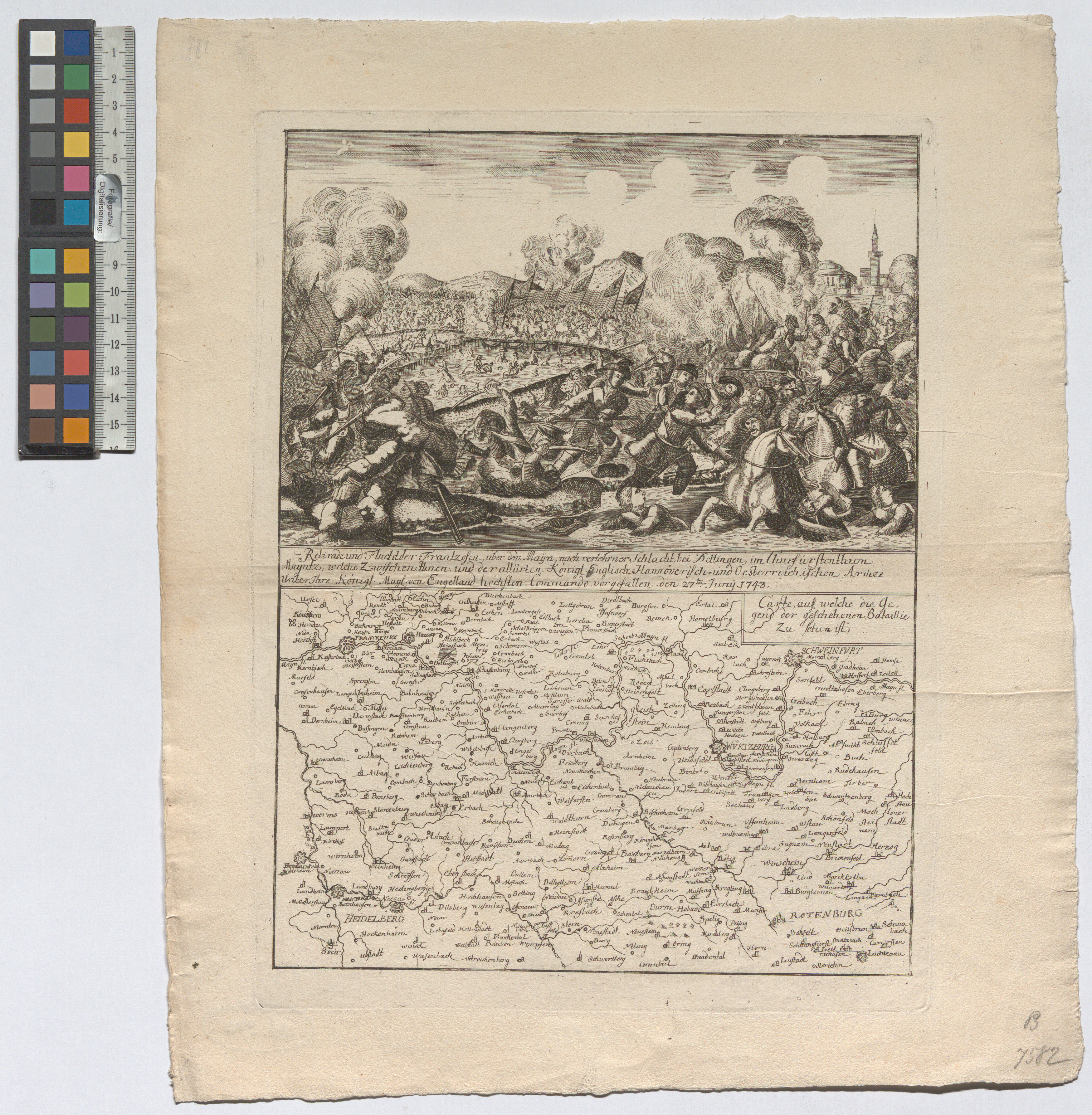 Rückzug und Flucht der Franzosen nach der Schlacht bei Dettingen am 27. Juni 1743 (Bild und Karte)