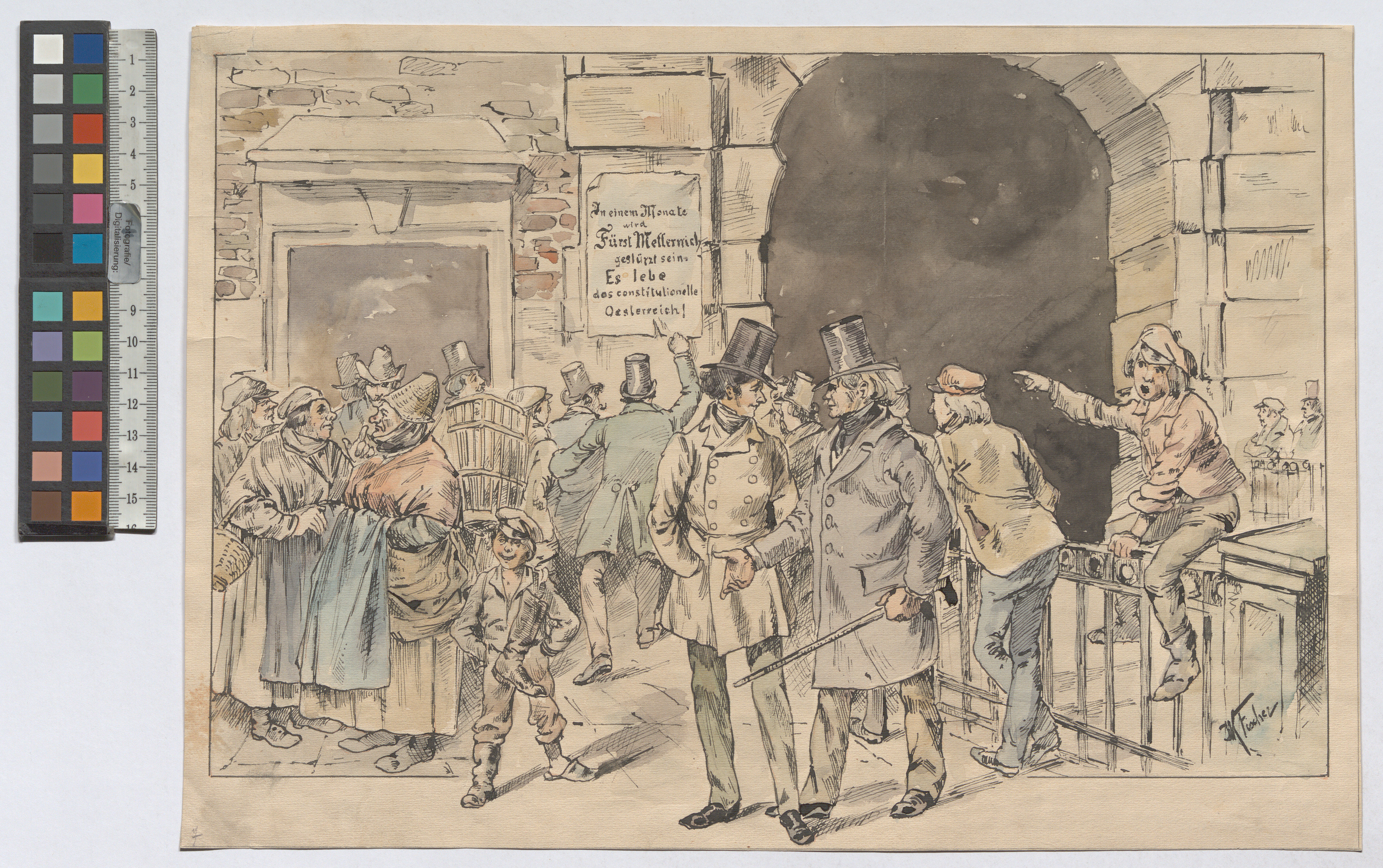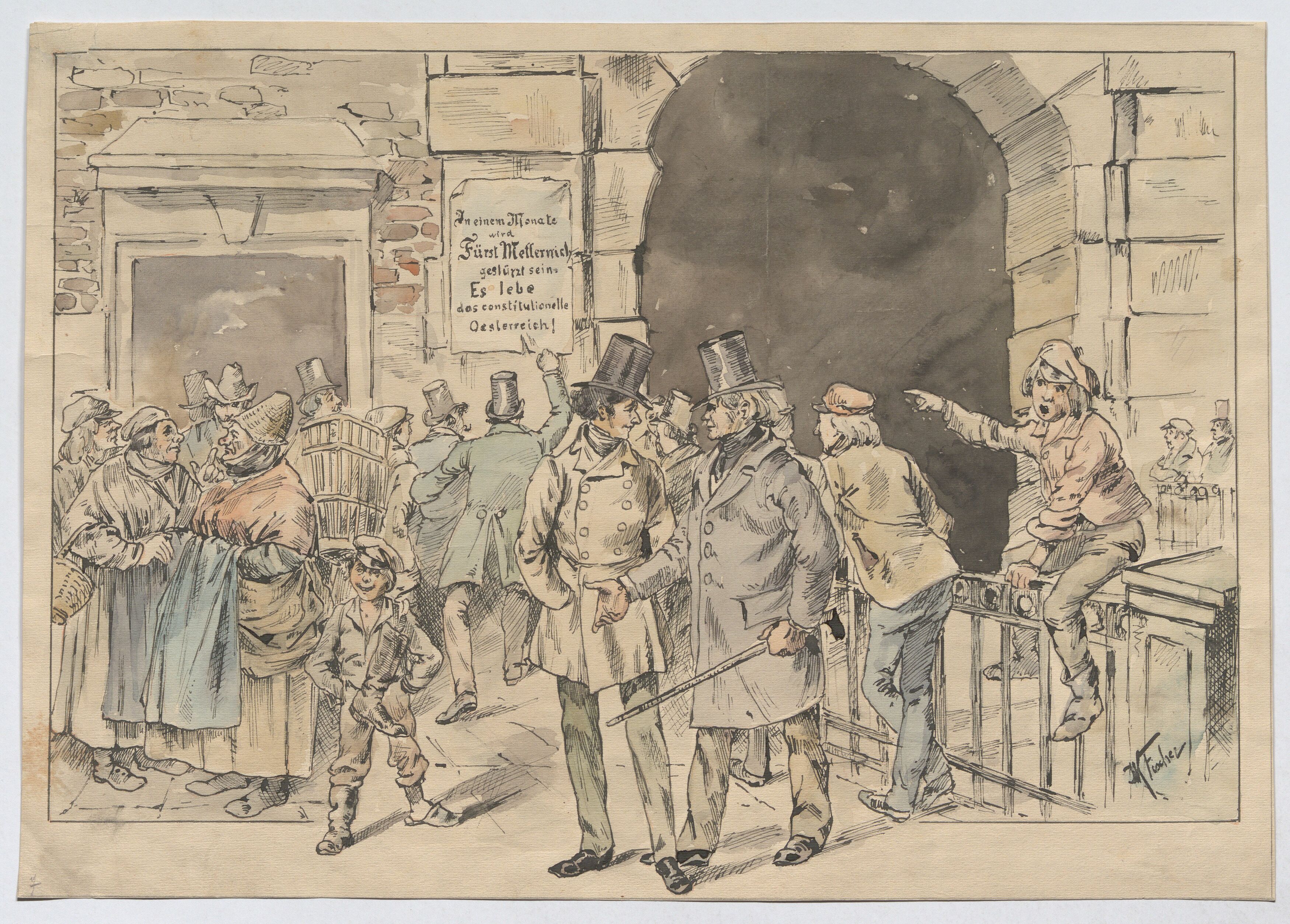 "In einem Monate / wird / Fürst Metternich / gestürzt sein / (...)" (Szene beim Kärntnertor vor einem Plakat im Februar 1848)