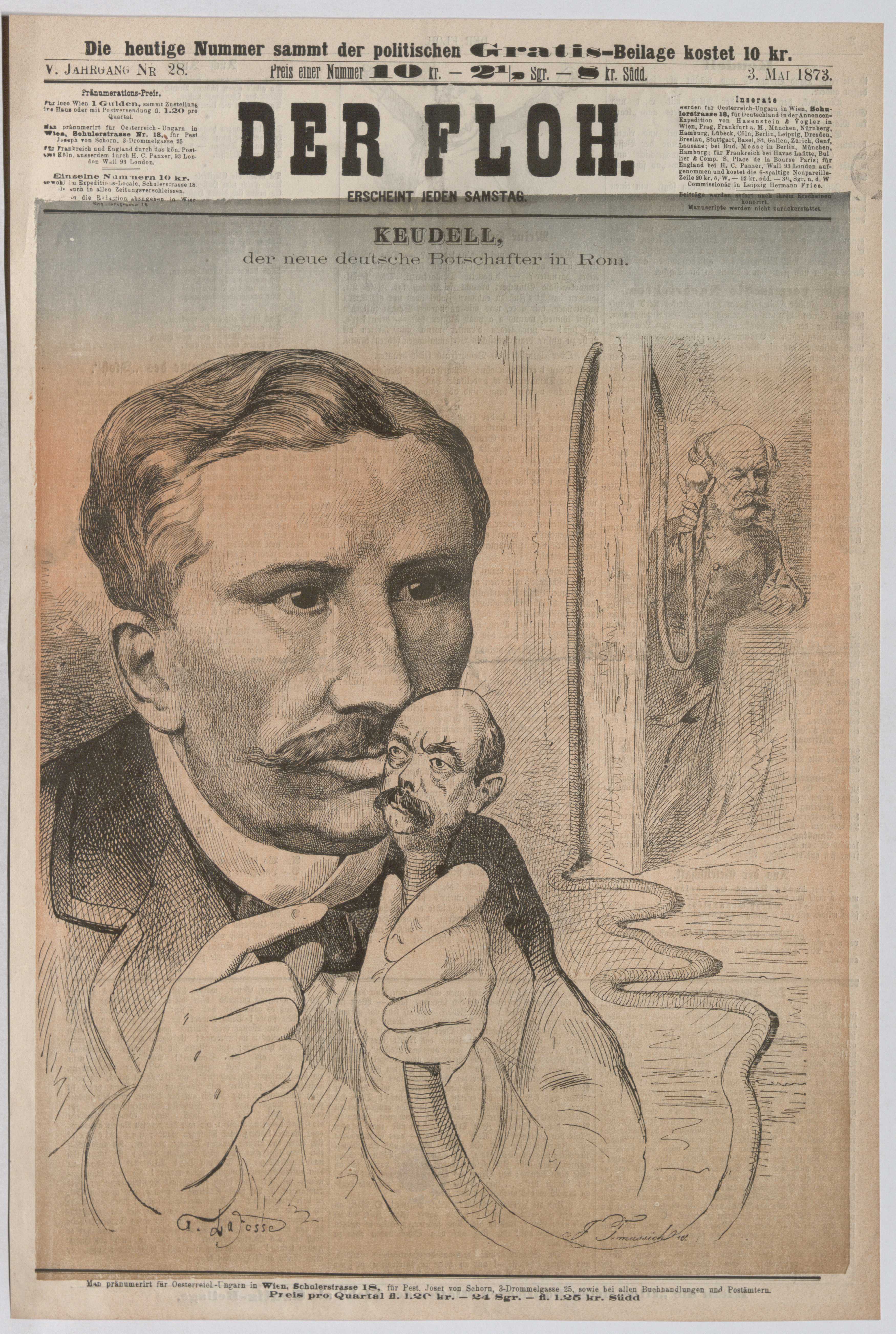 - Robert von Keudell, der neue deutsche Botschafter in Rom; Bismarck , Kaiser Wilhelm I. (Titelblatt von "Der Floh")