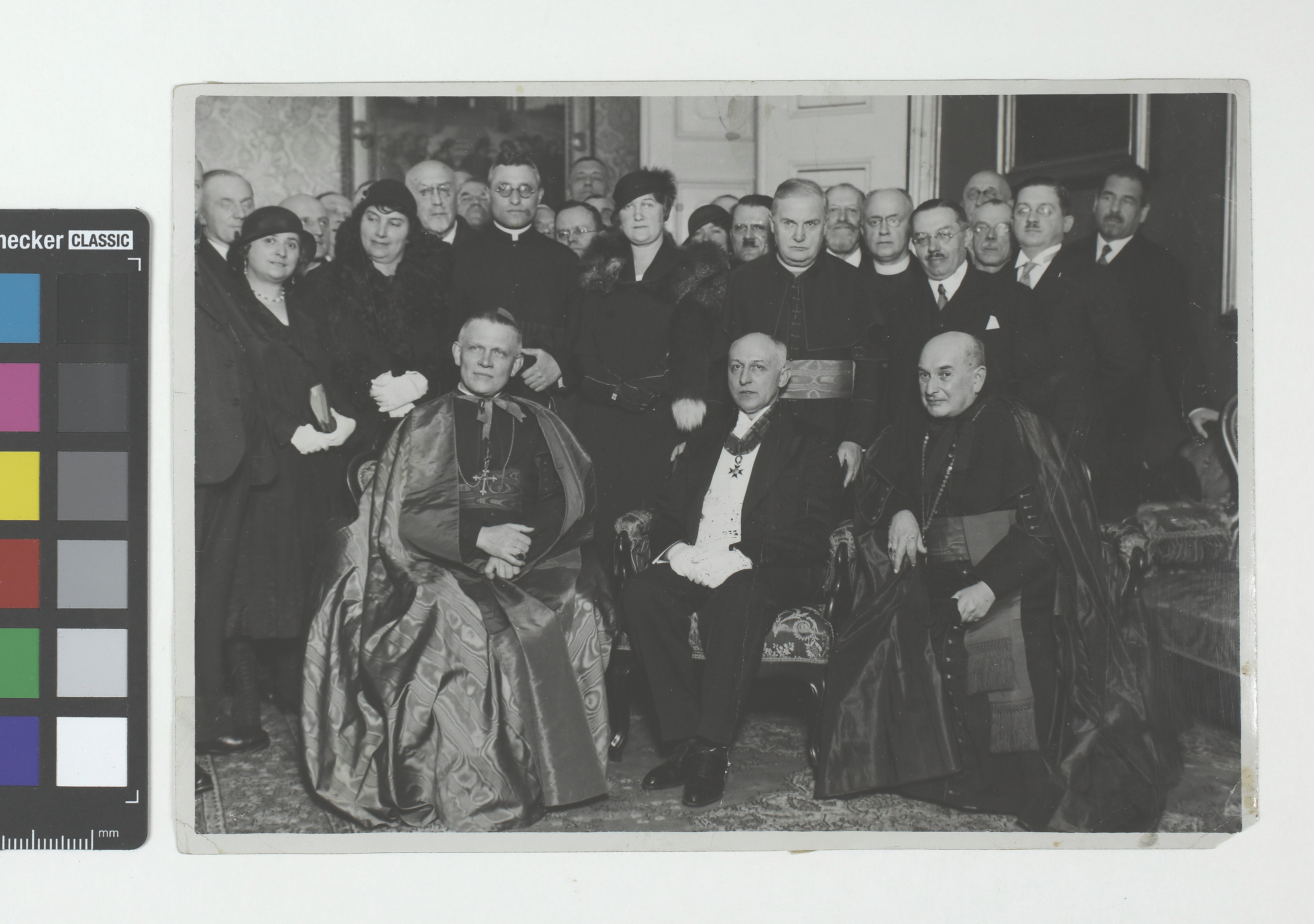 Überreichung des Komturkreuzes der Gregorius Ritter an Dr. Hugo Zörnlaib (vor MItte; links vorne: Kardinal Innitzer, rechts vorne: Kanonikus Scheiner)