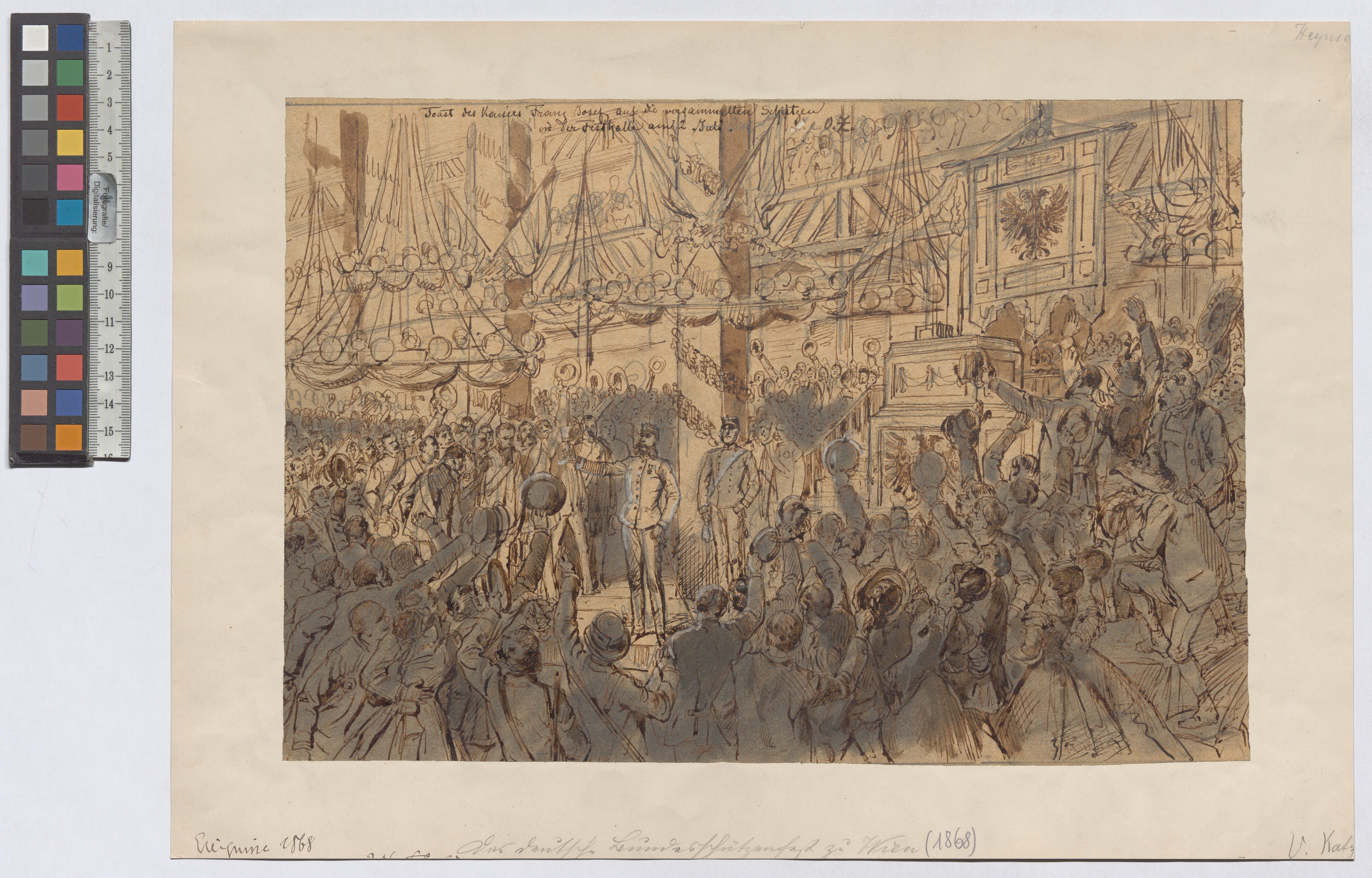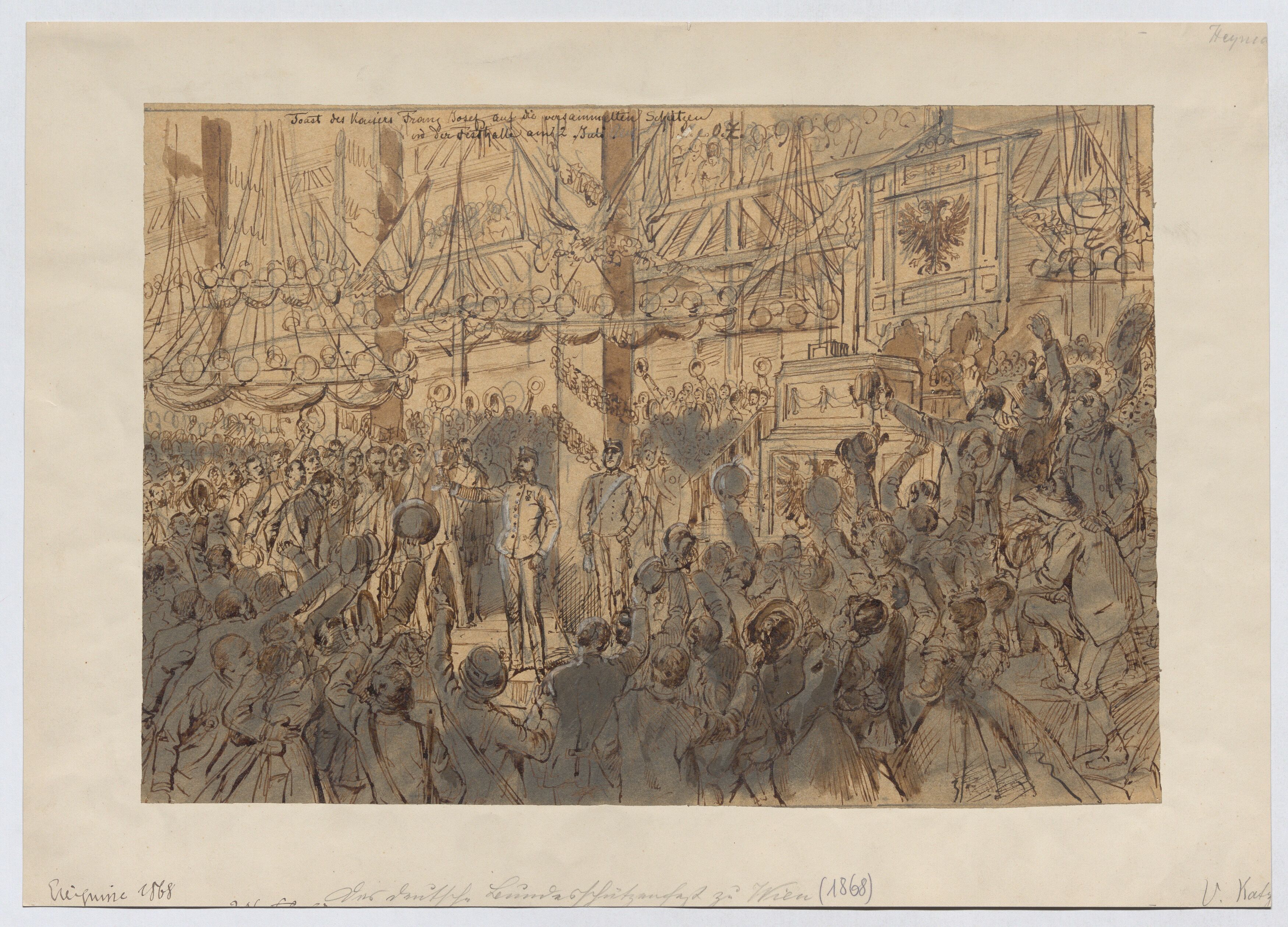 Drittes Deutsches Bundesschießen in Wien 1868: Toast Kaiser Franz Josephs auf die versammelten Schützen in der Festhalle am 2. Juli