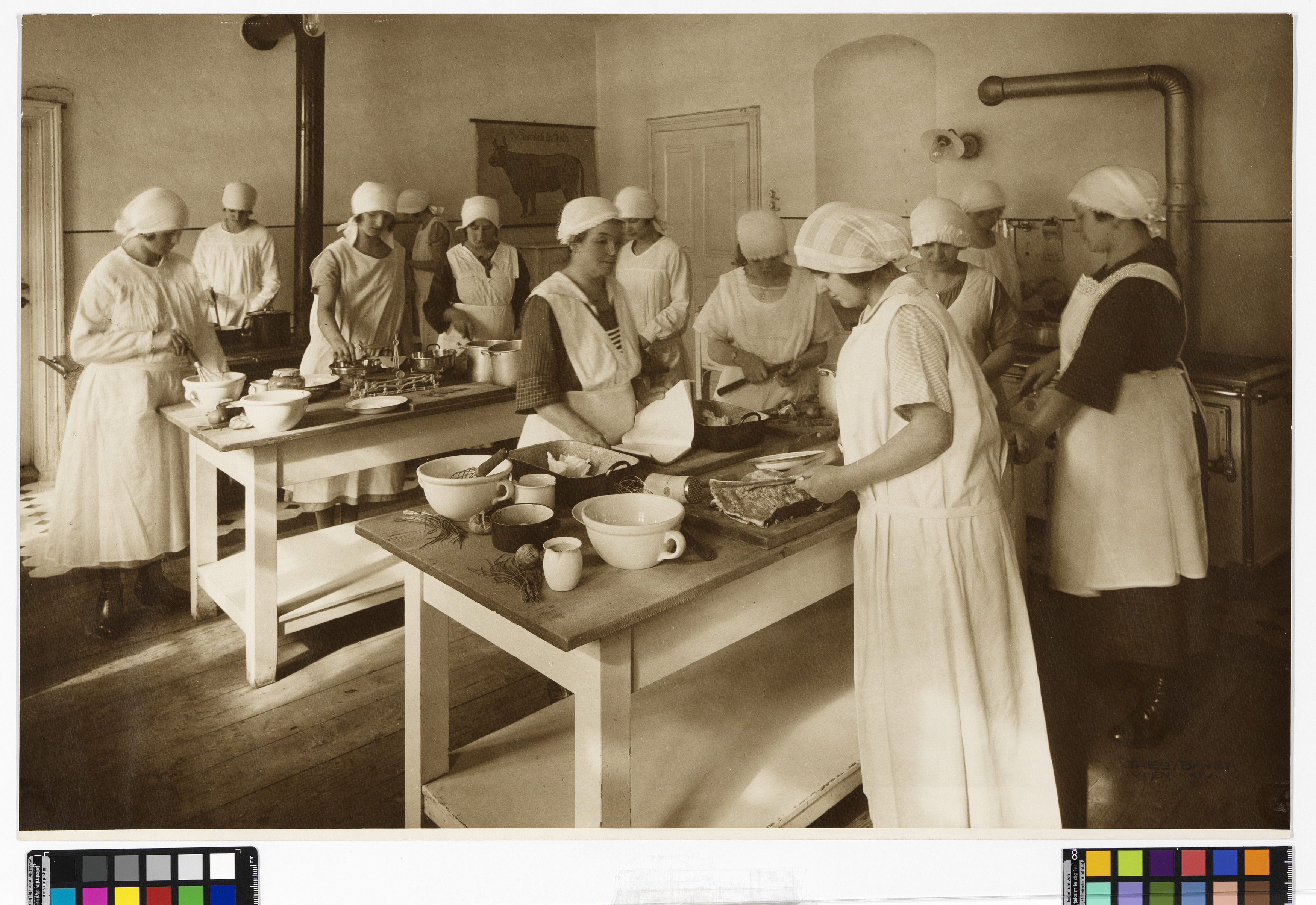 6., Brückengasse 3 - Koch- und Haushaltungsschule - Innenansicht - Kochunterricht