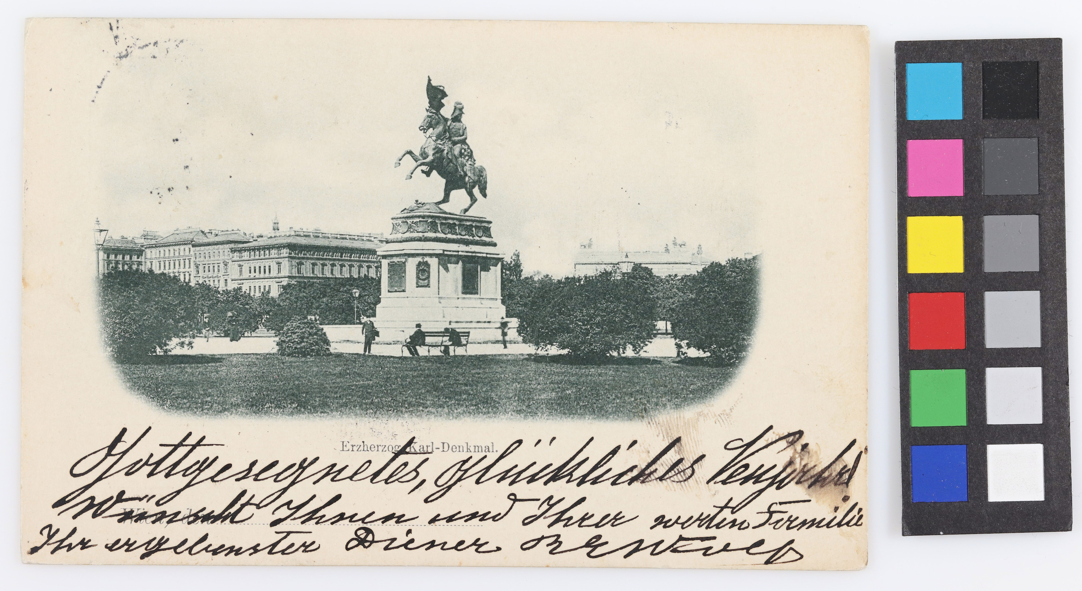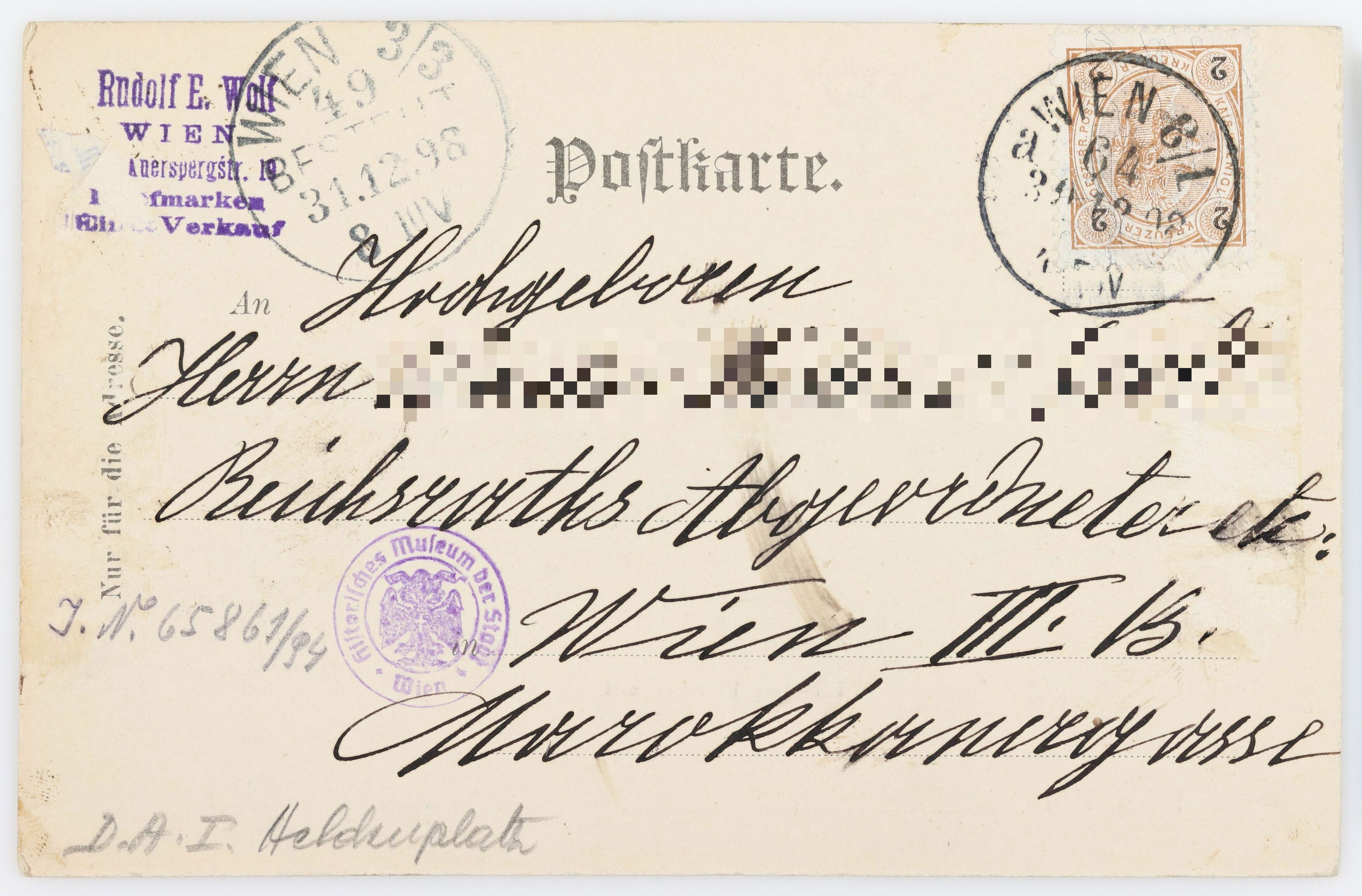 Gottgesegnetes, glückliches Neujahr Wünscht Ihnen und Ihrer werten Familie Ihr ergebenster Diener B…Transkription / Übersetzung durch Ehrenamtliche im Rahmen der Crowdsourcing Aktion 2021/2022 (nicht überprüft durch das Wien Museum)