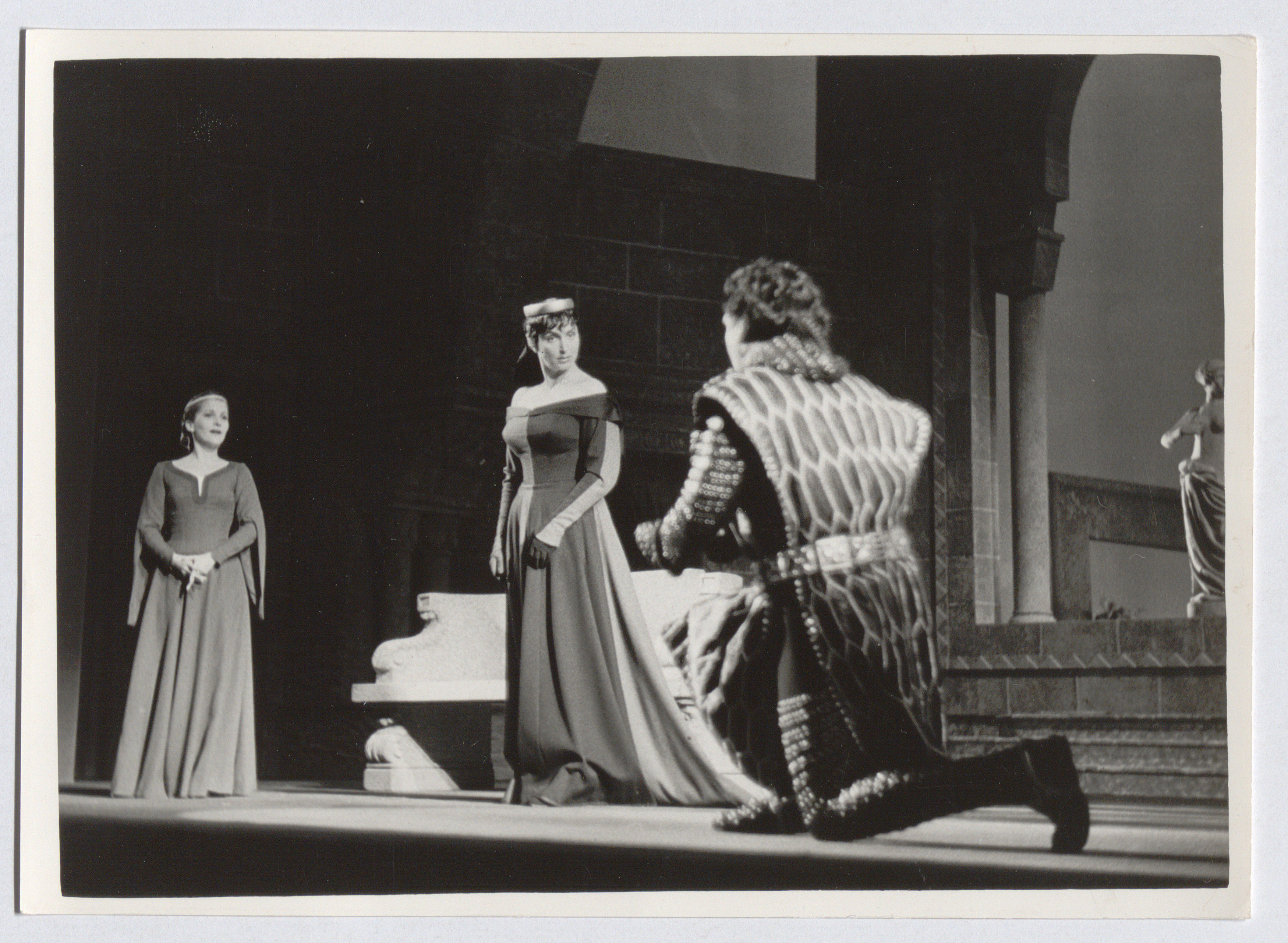 1., Universitätsring (ehem. Dr.-Karl-Lueger-Ring) 2 - Burgtheater; Wiedereröffnung am 15.10.1955 mit Grillparzers "König Ottokars Glück und Ende" - Rollenbild: Erika Berghöfer, Judith Holzmeister Albin Skoda