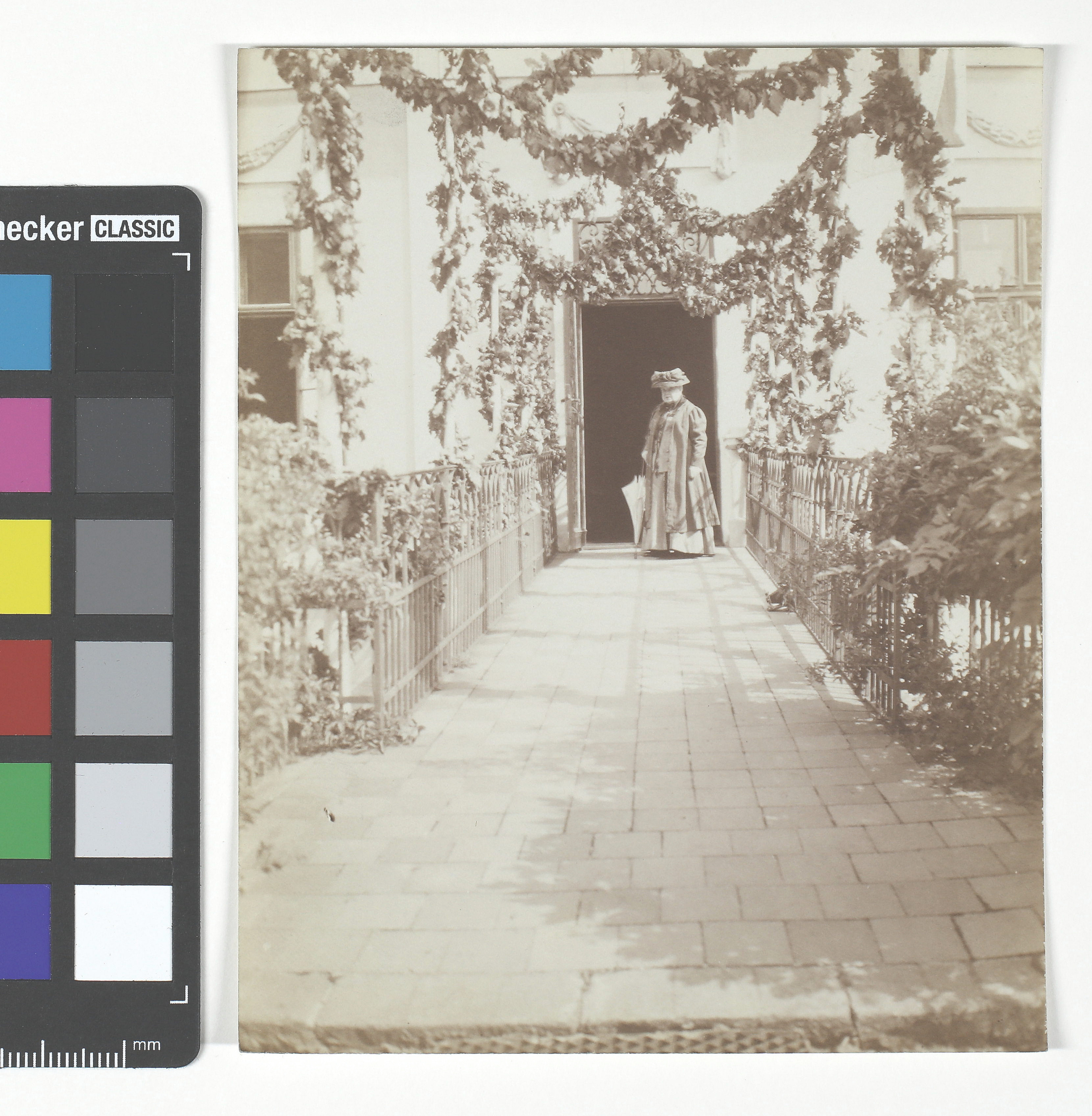 Marie von Ebner-Eschenbach (1830-1916), Schriftstellerin vor Schloss Zdislawitz/Zdislawice