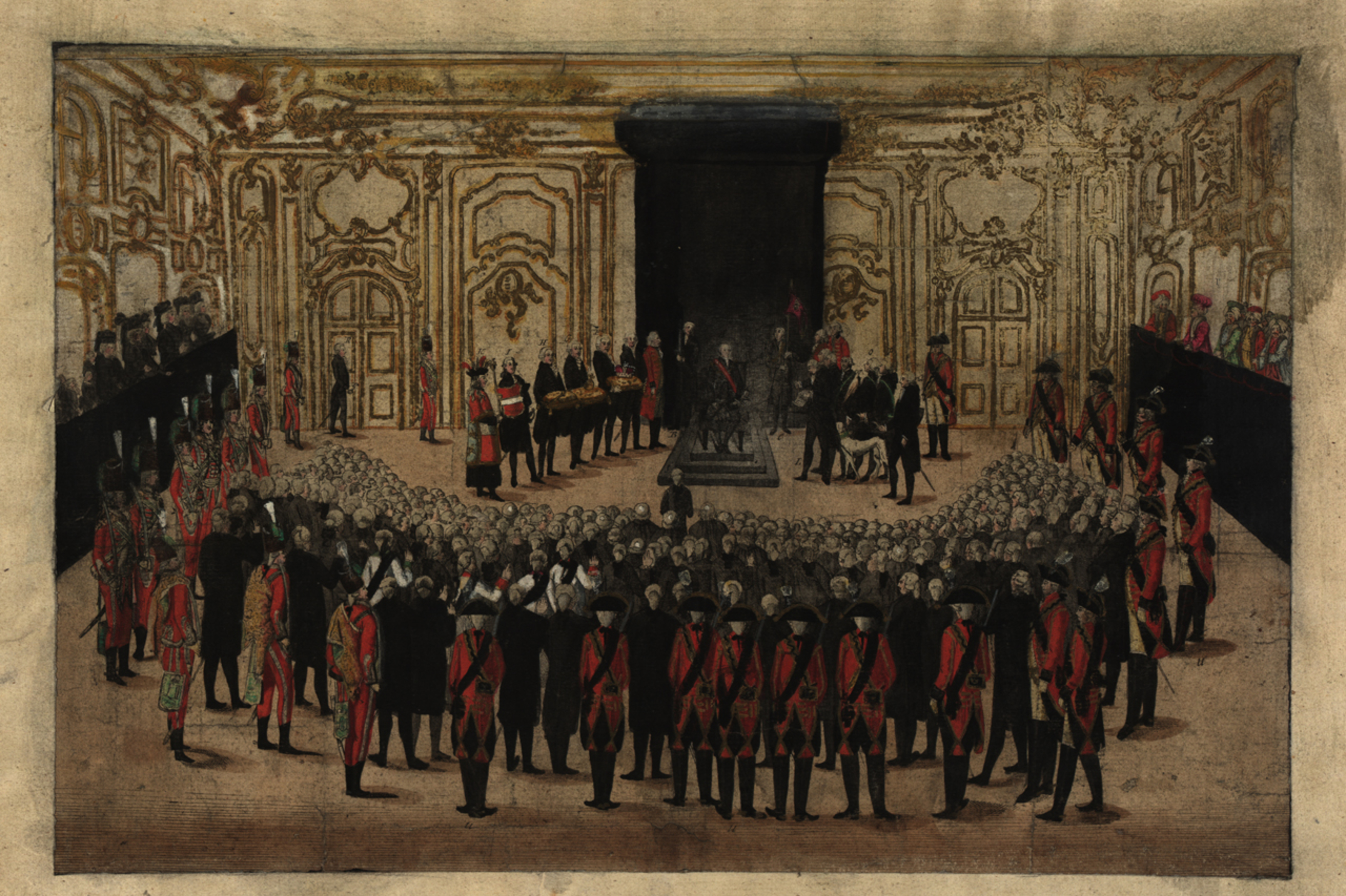 bez.: "Der Nie: Oest: Landstände Huldigung in der Ritterstube dem König Leopold II. am 6ten Apl: 1790"