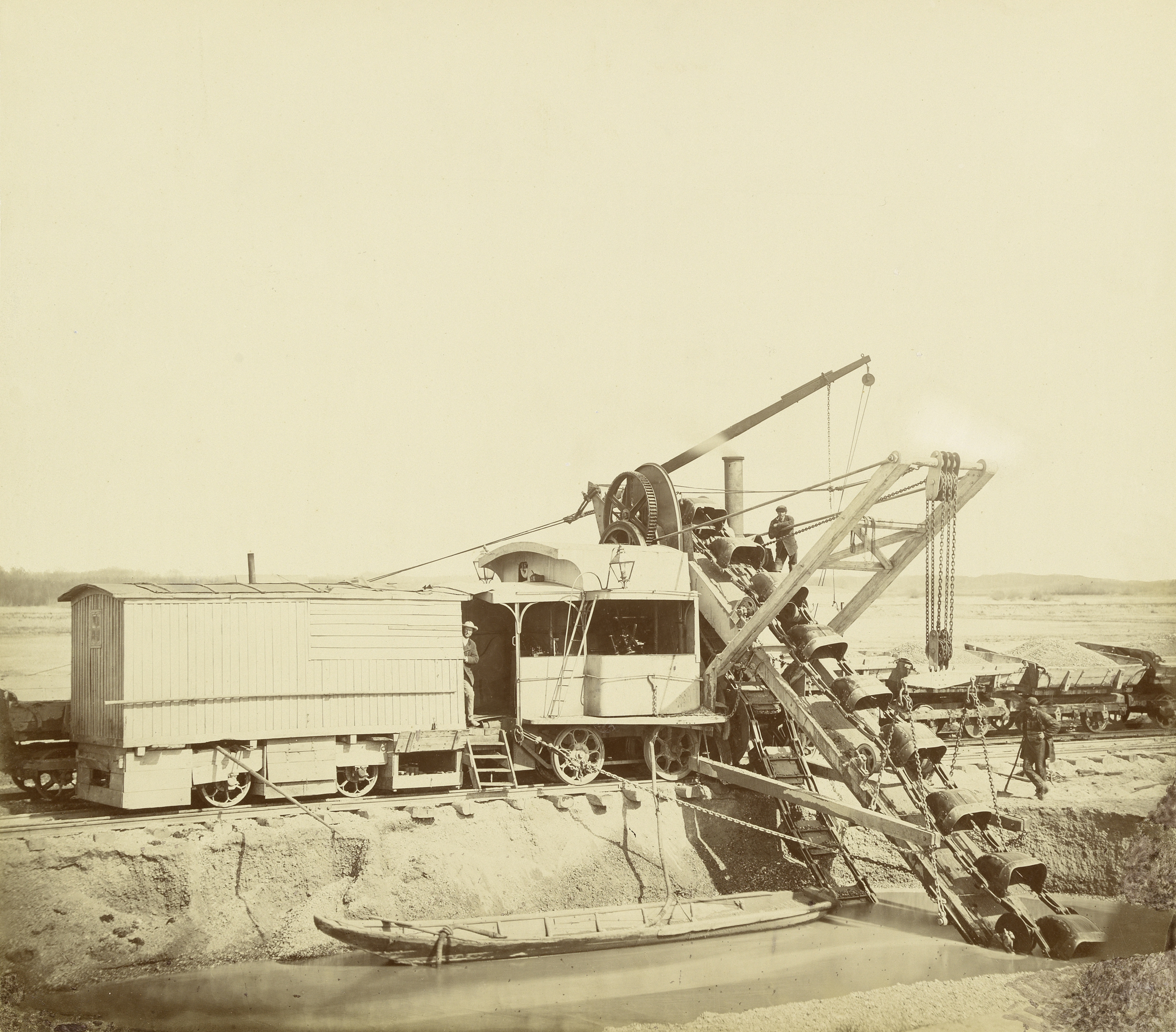 Baggermaschine (Excavateur) bei der Donauregulierung